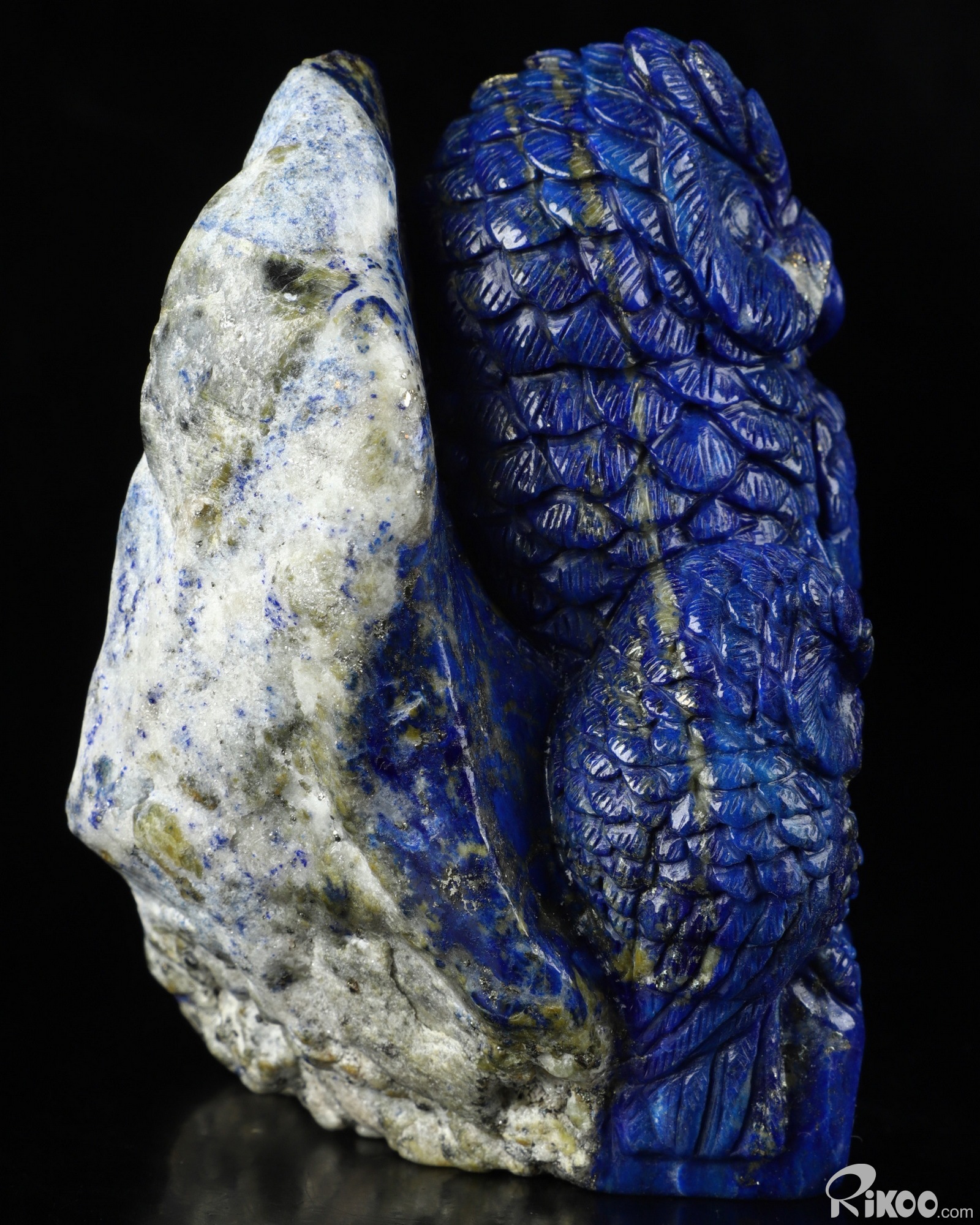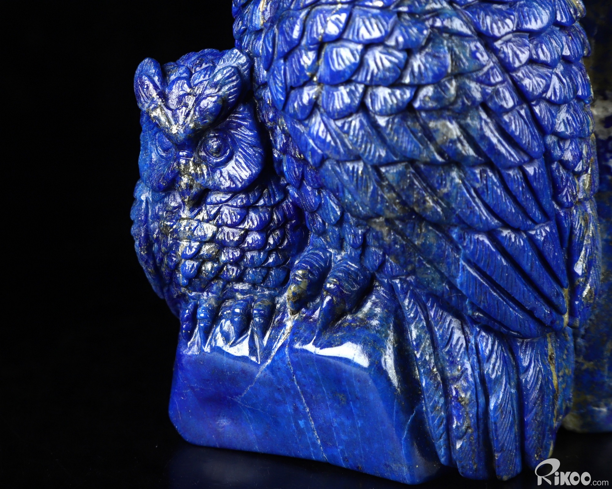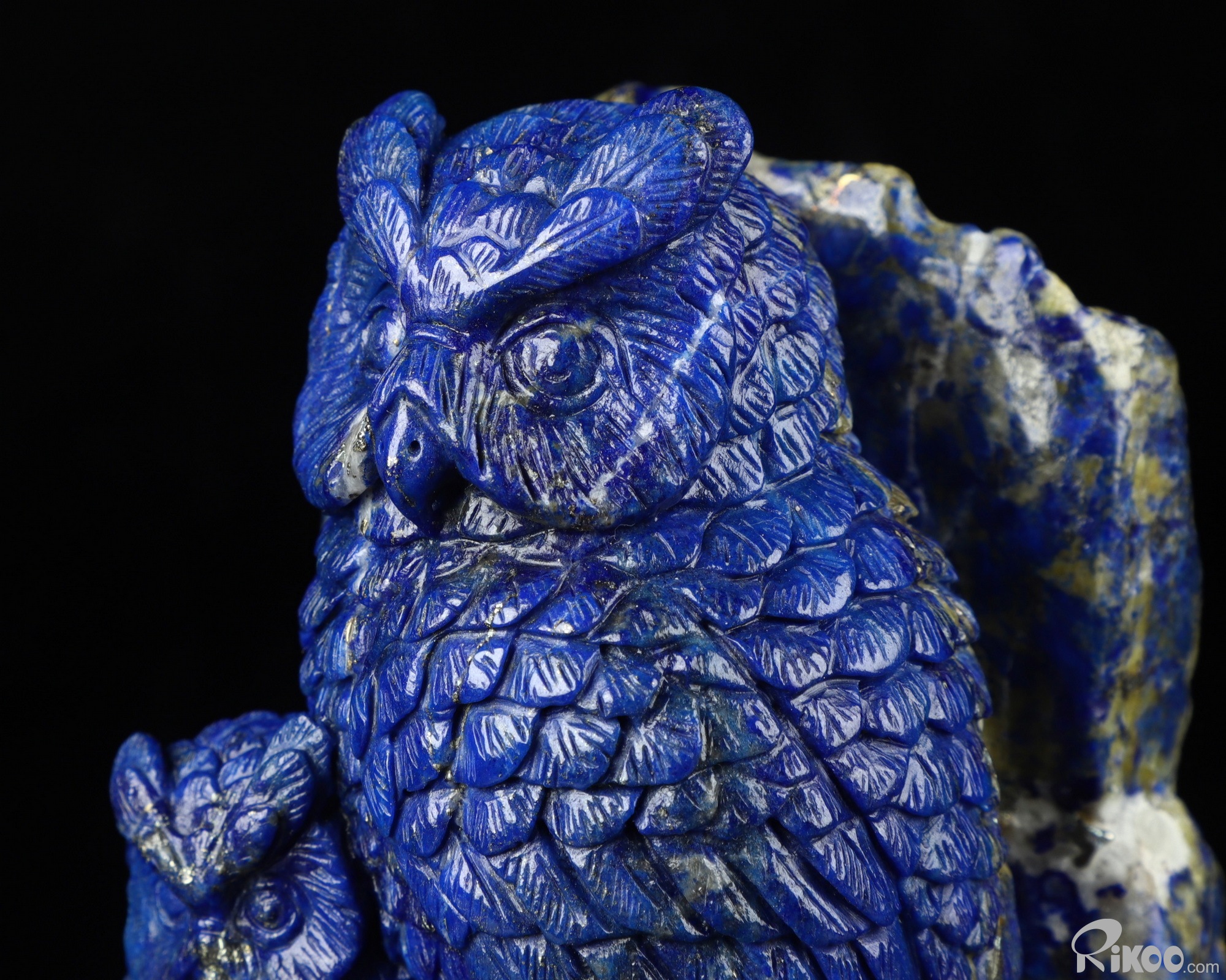 4.3" Lapis Lazuli Carved Crystal Owl Sculpture Mother and Son, Realistic, Crystal Healing