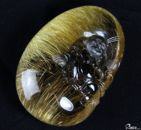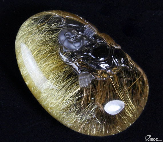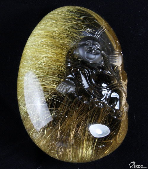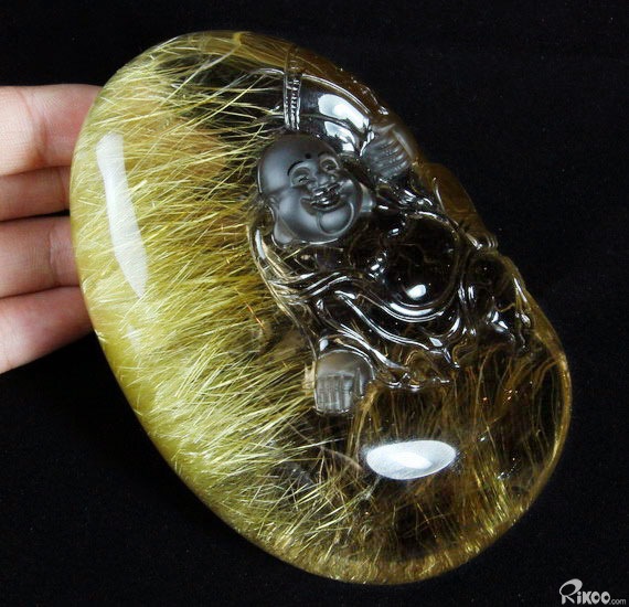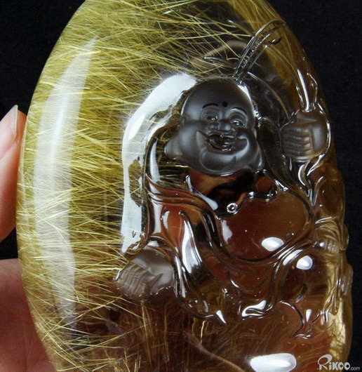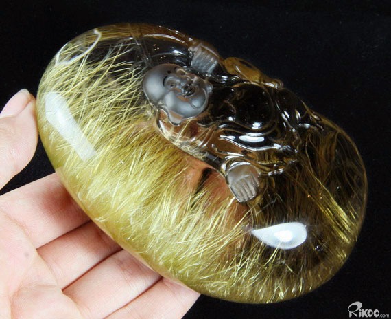 4.3" Rutilated Quartz Rock Crystal Carved Laughing Buddha