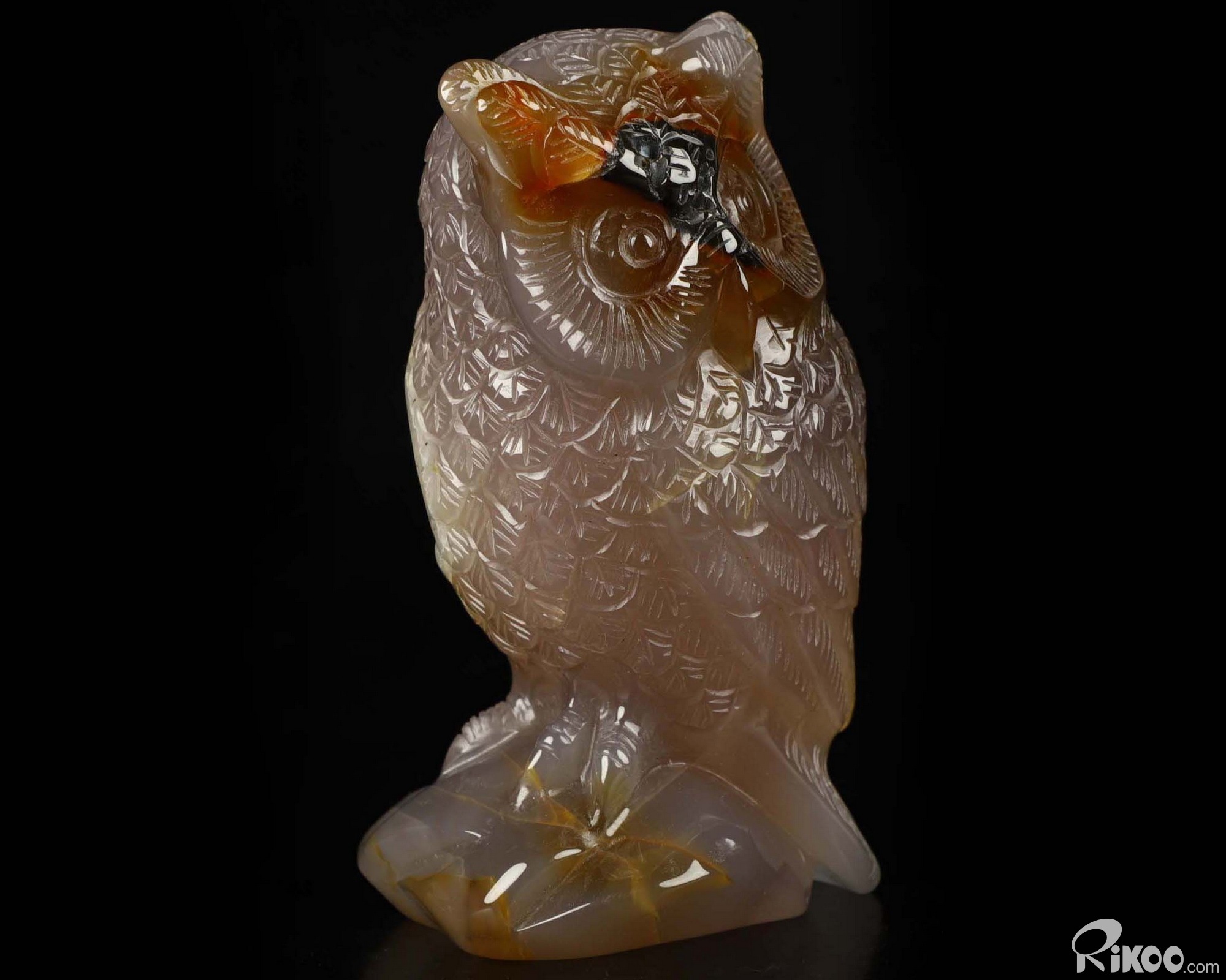 4.4" Agate Carved Crystal Owl, Realistic, Crystal Healing