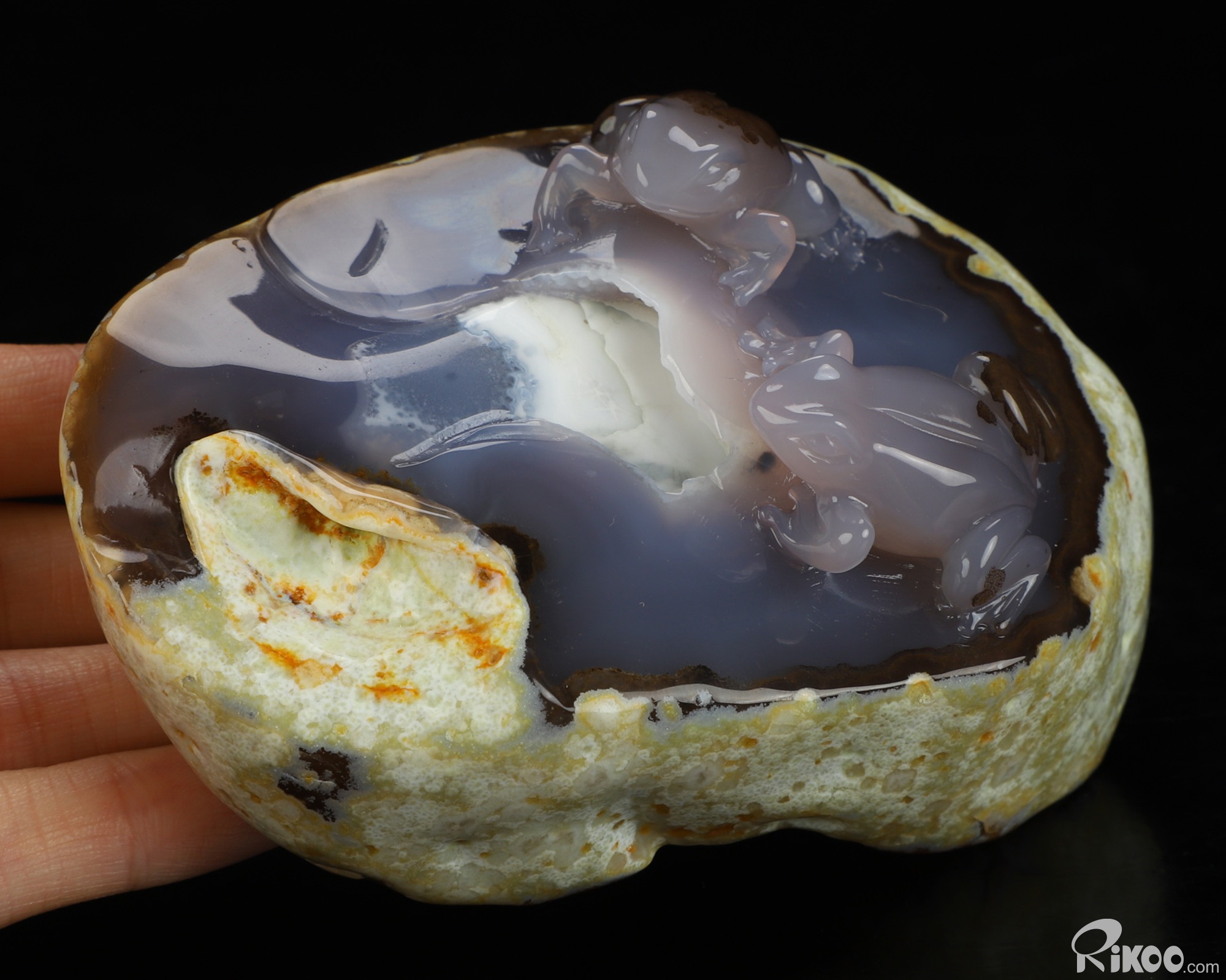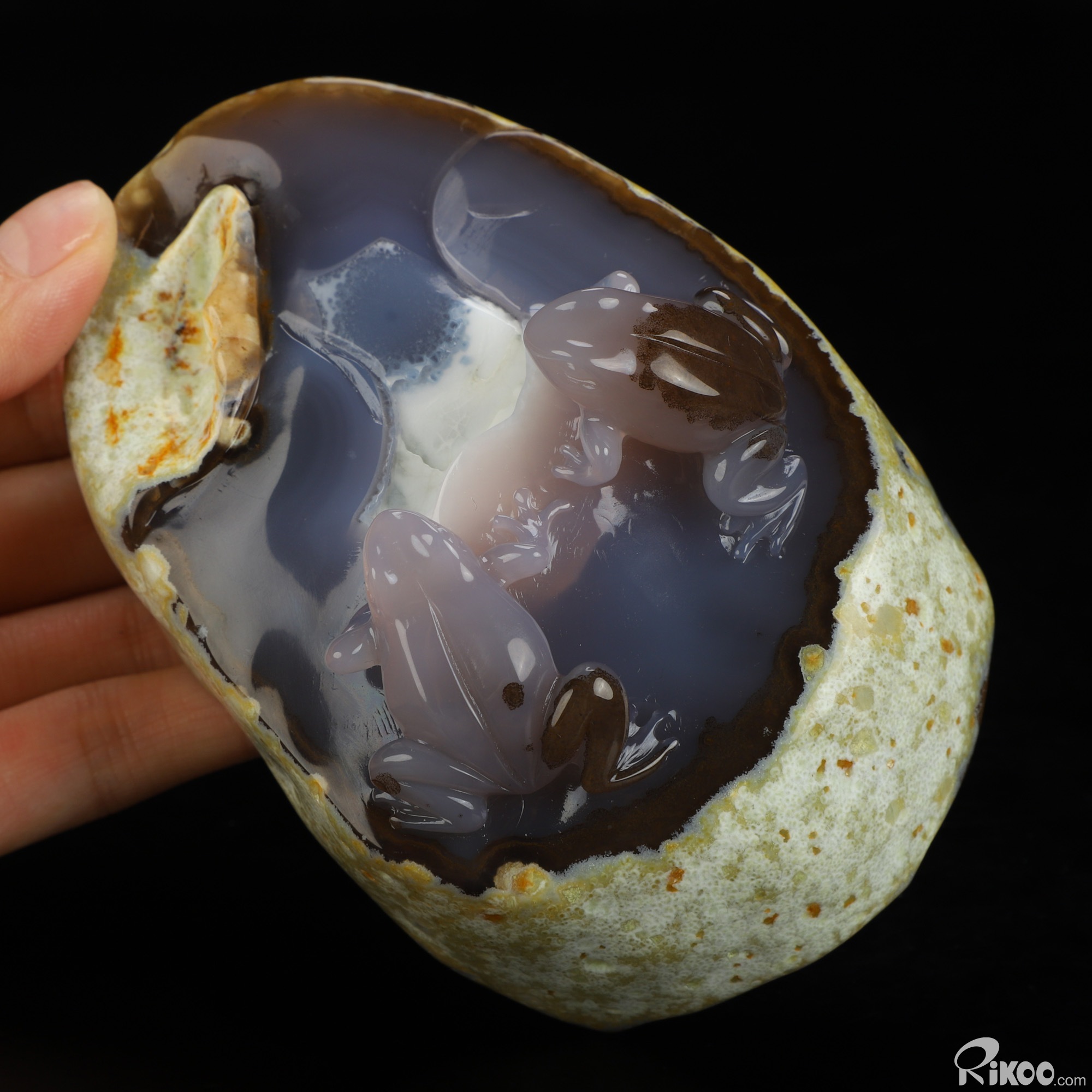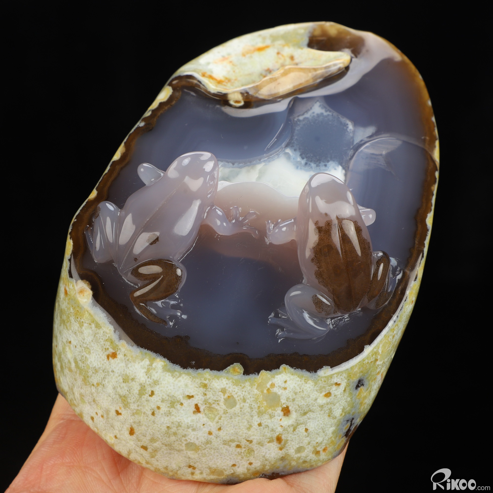 4.4" Agate Hand Carved Crystal Frog Sculpture, Crystal Healing