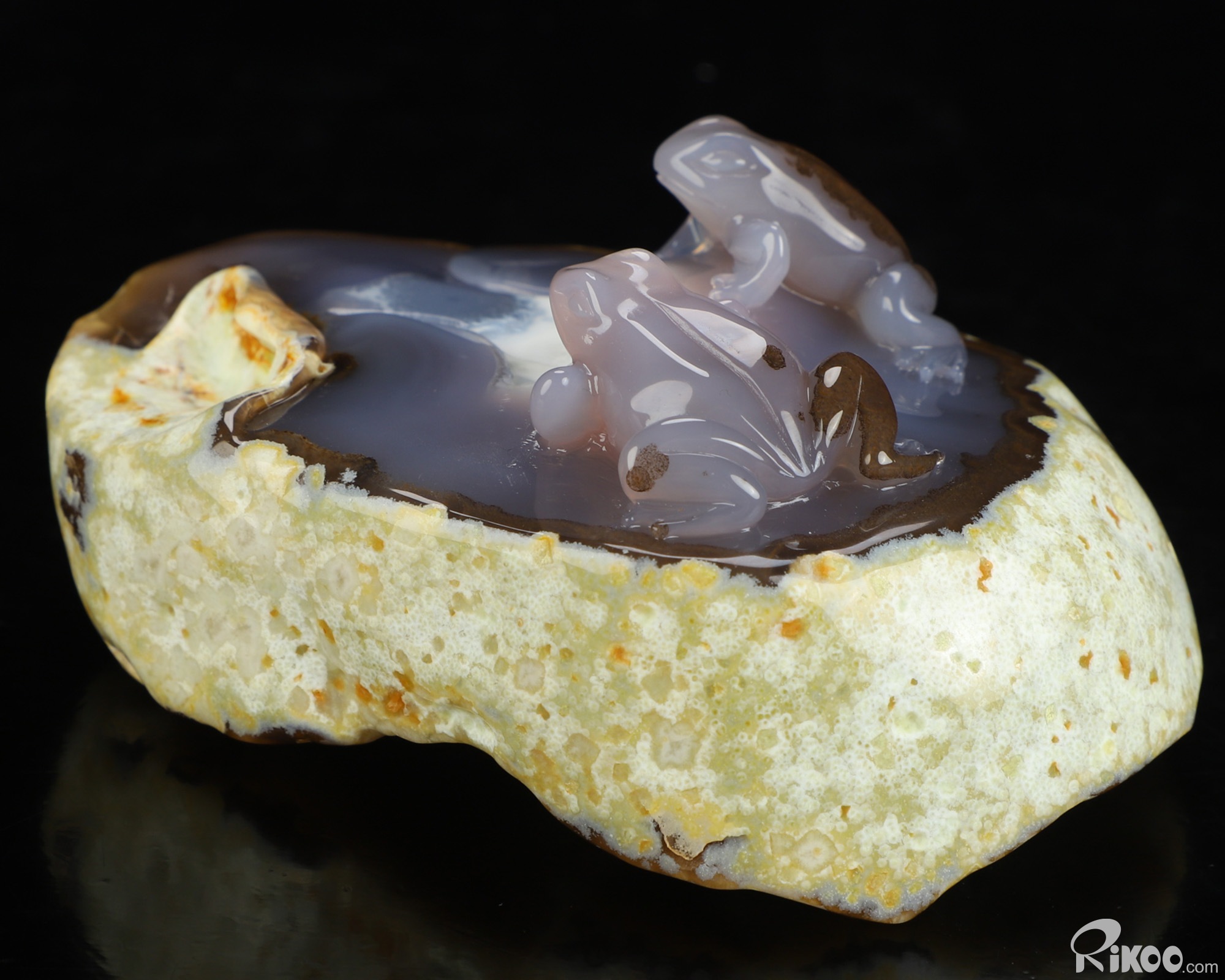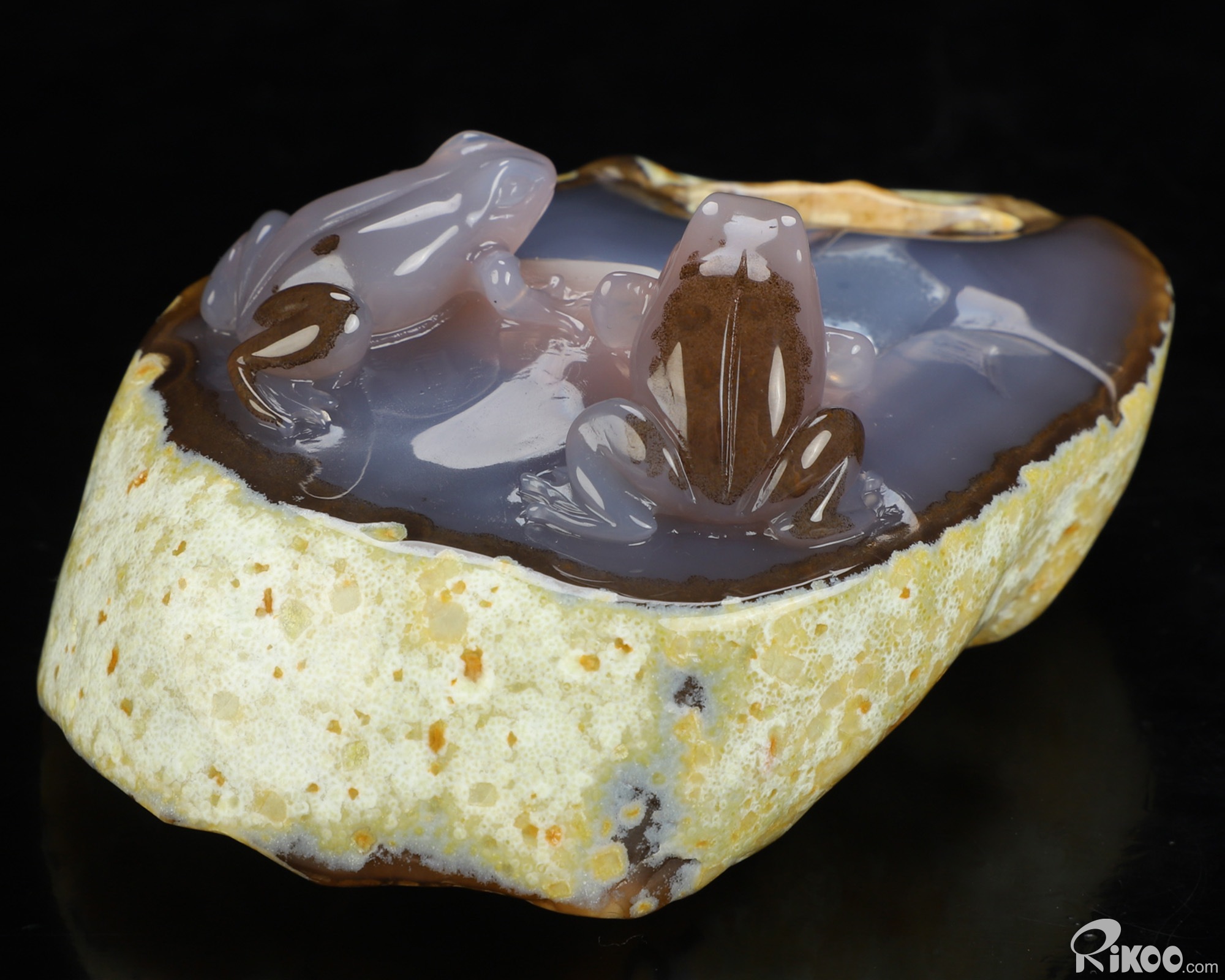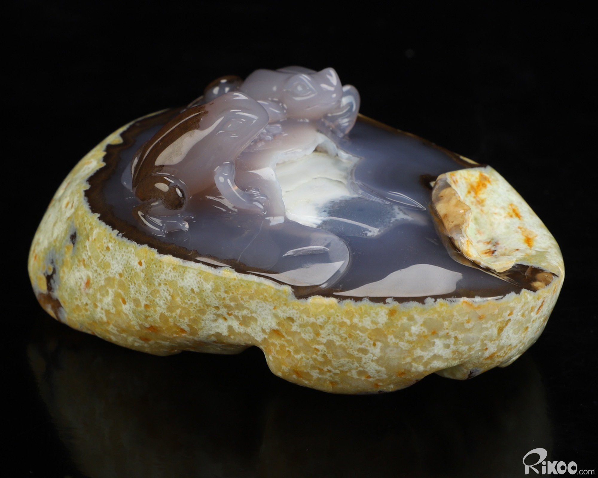 4.4" Agate Hand Carved Crystal Frog Sculpture, Crystal Healing