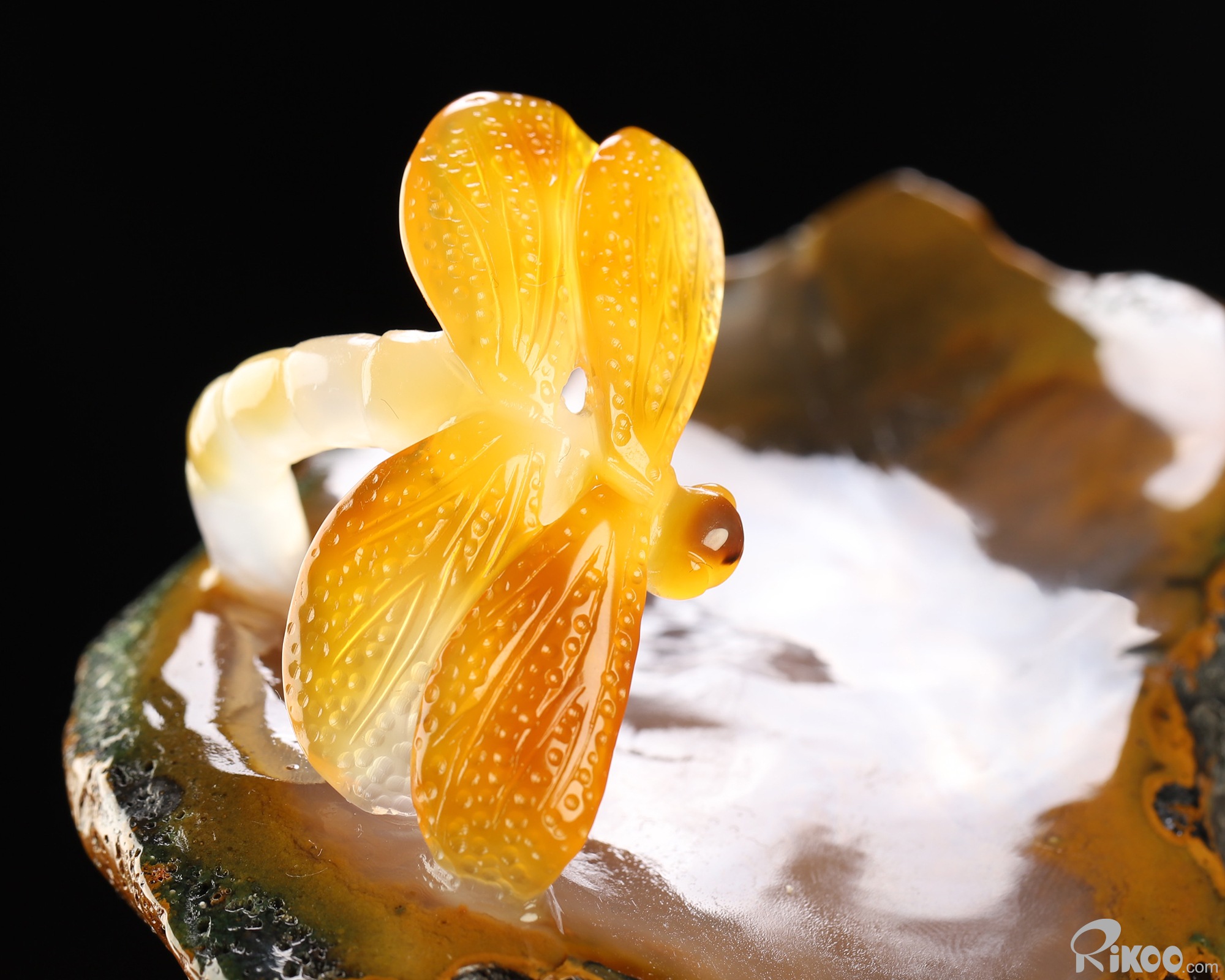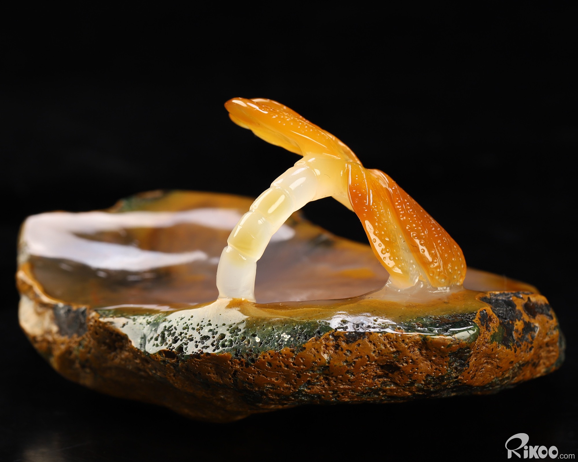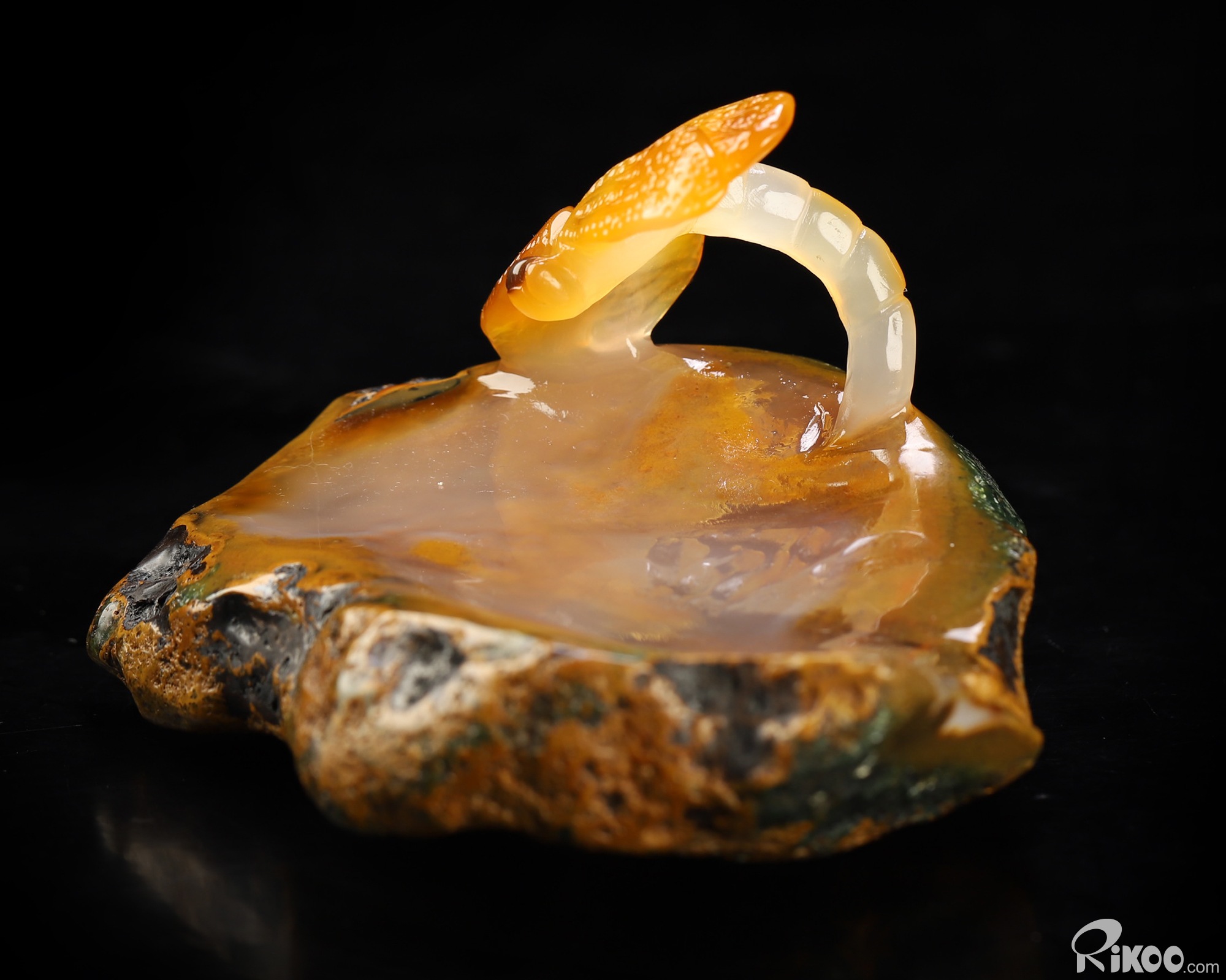 You are looking at a Carnelian sculpture. The sculpture is 4.4 inches long.