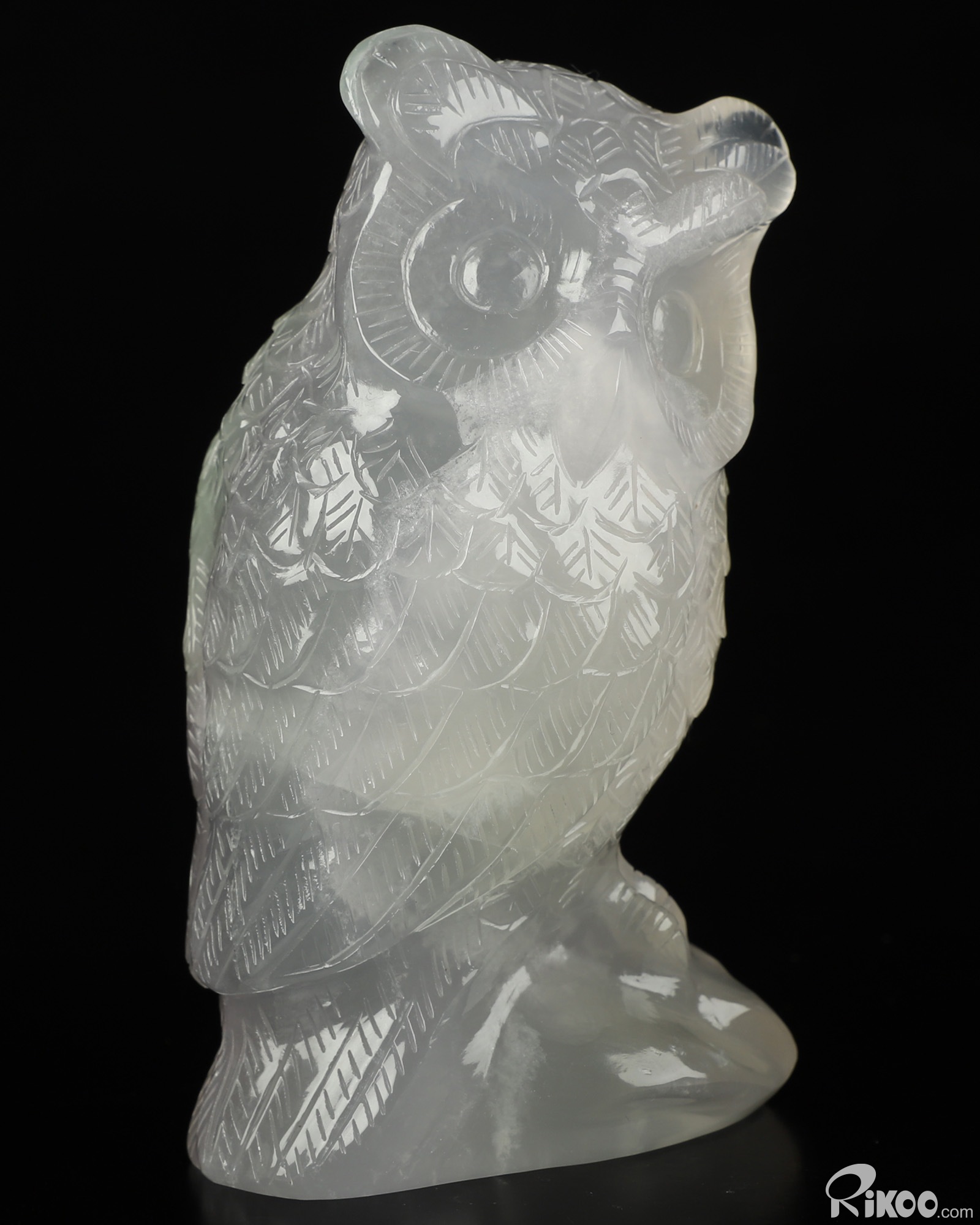 4.4" Fluorite Carved Crystal Owl, Realistic, Crystal Healing