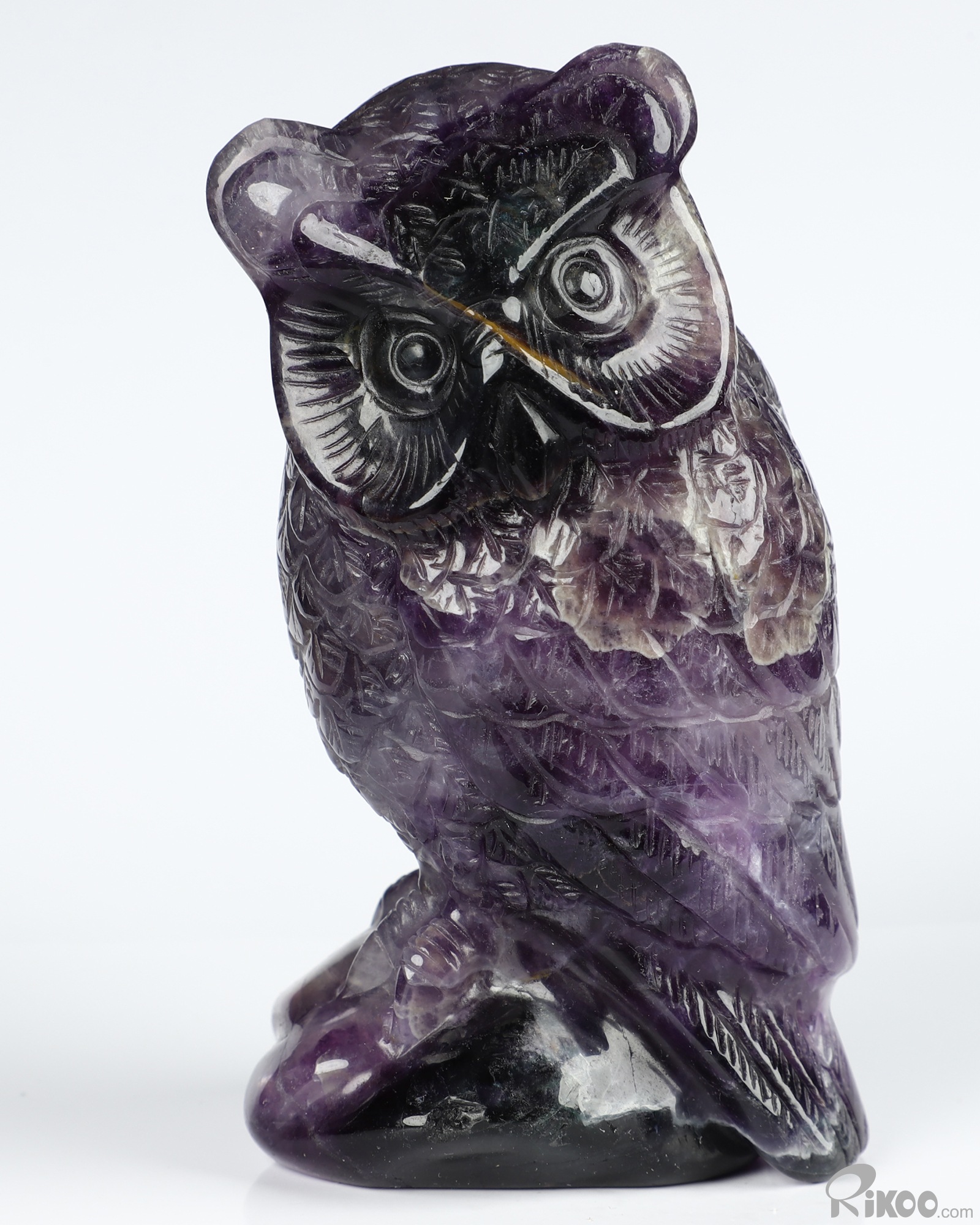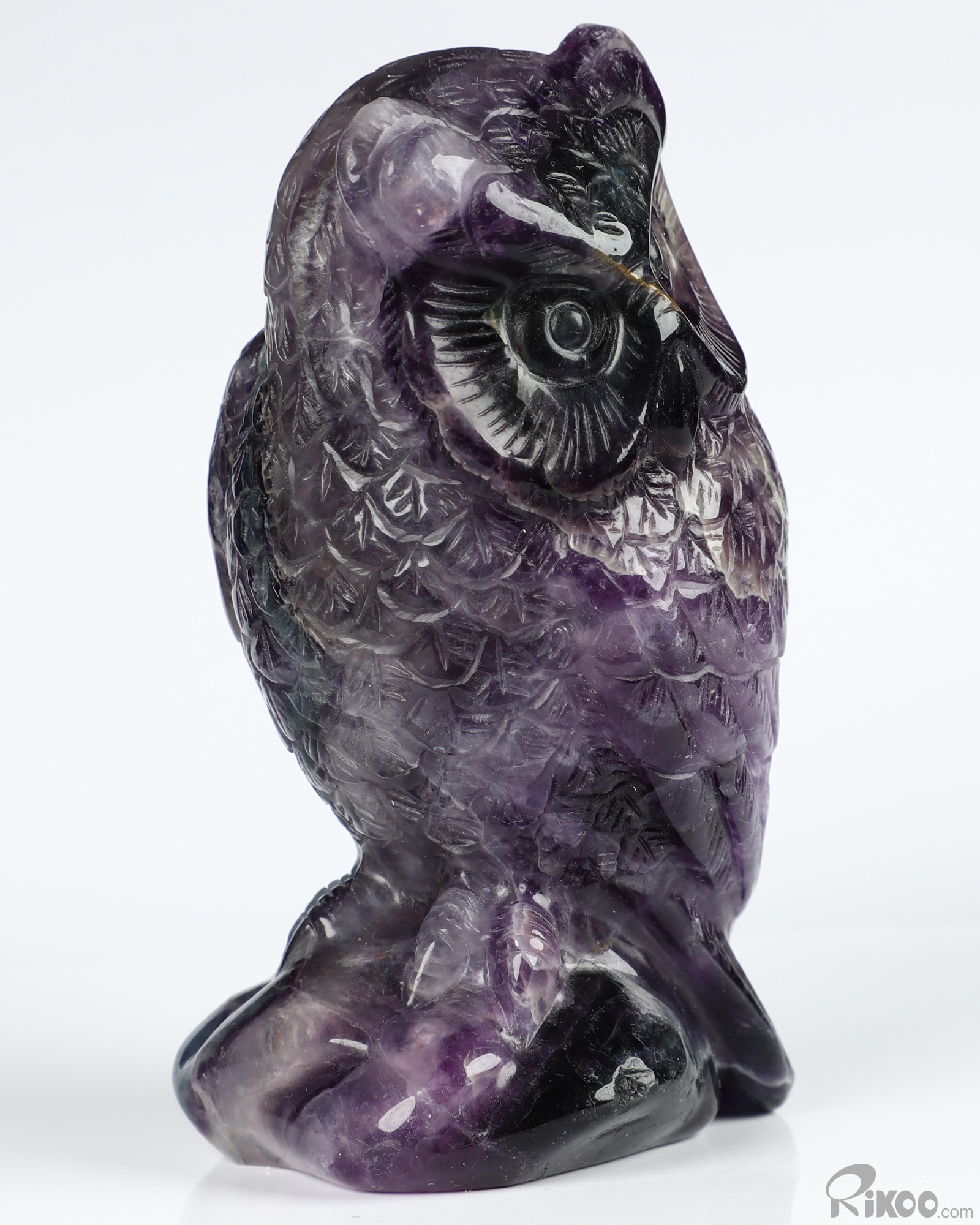 4.4" Fluorite Carved Crystal Owl, Realistic, Crystal Healing