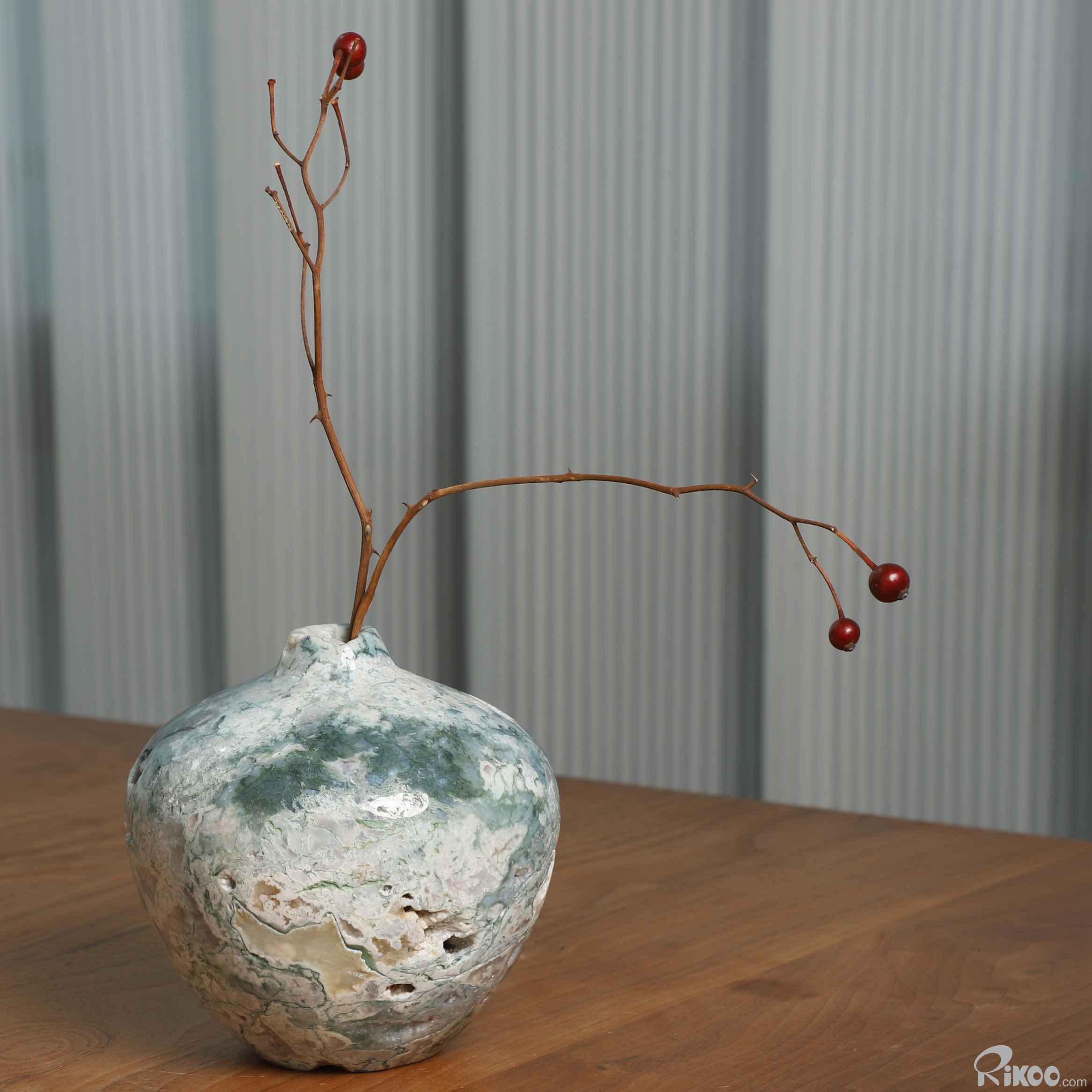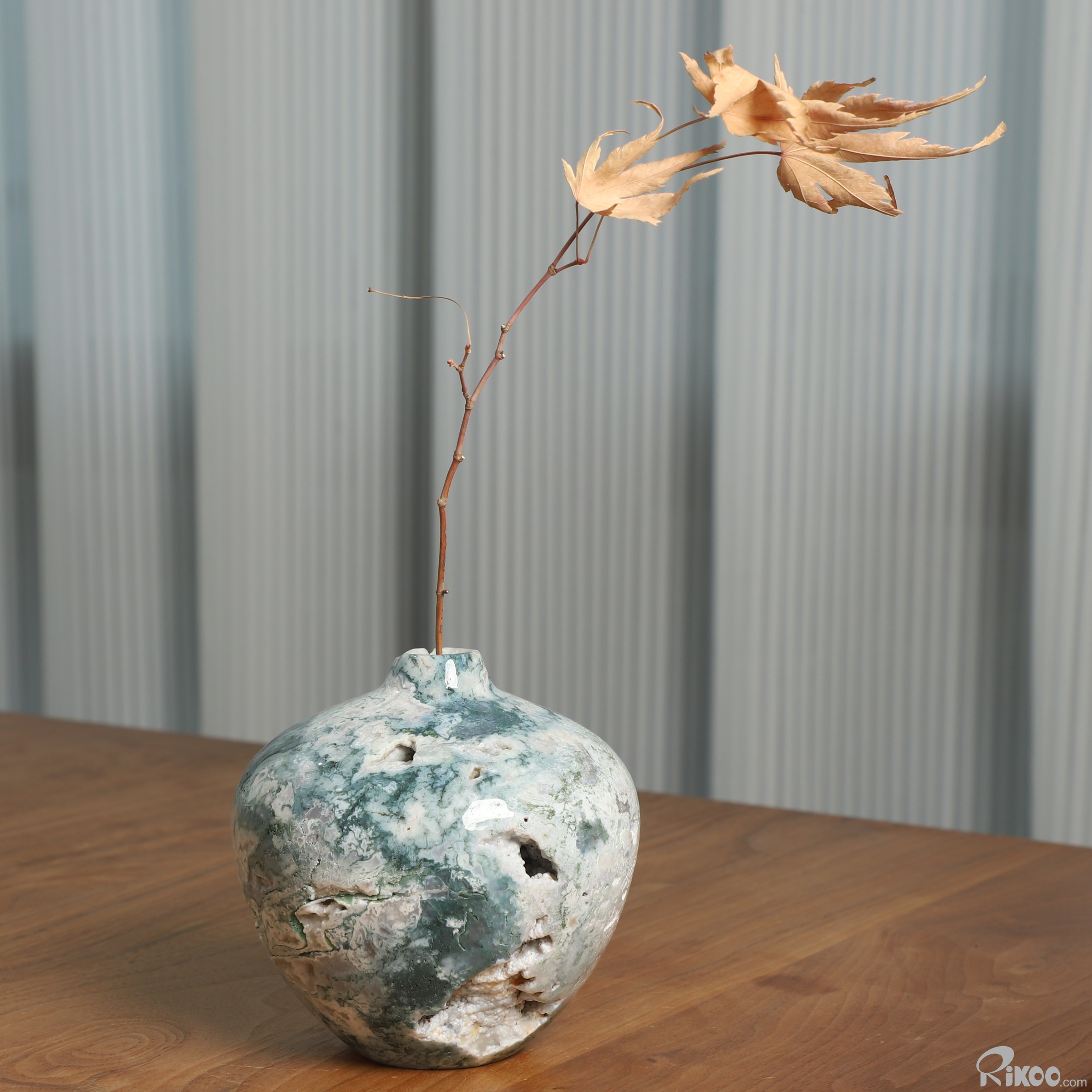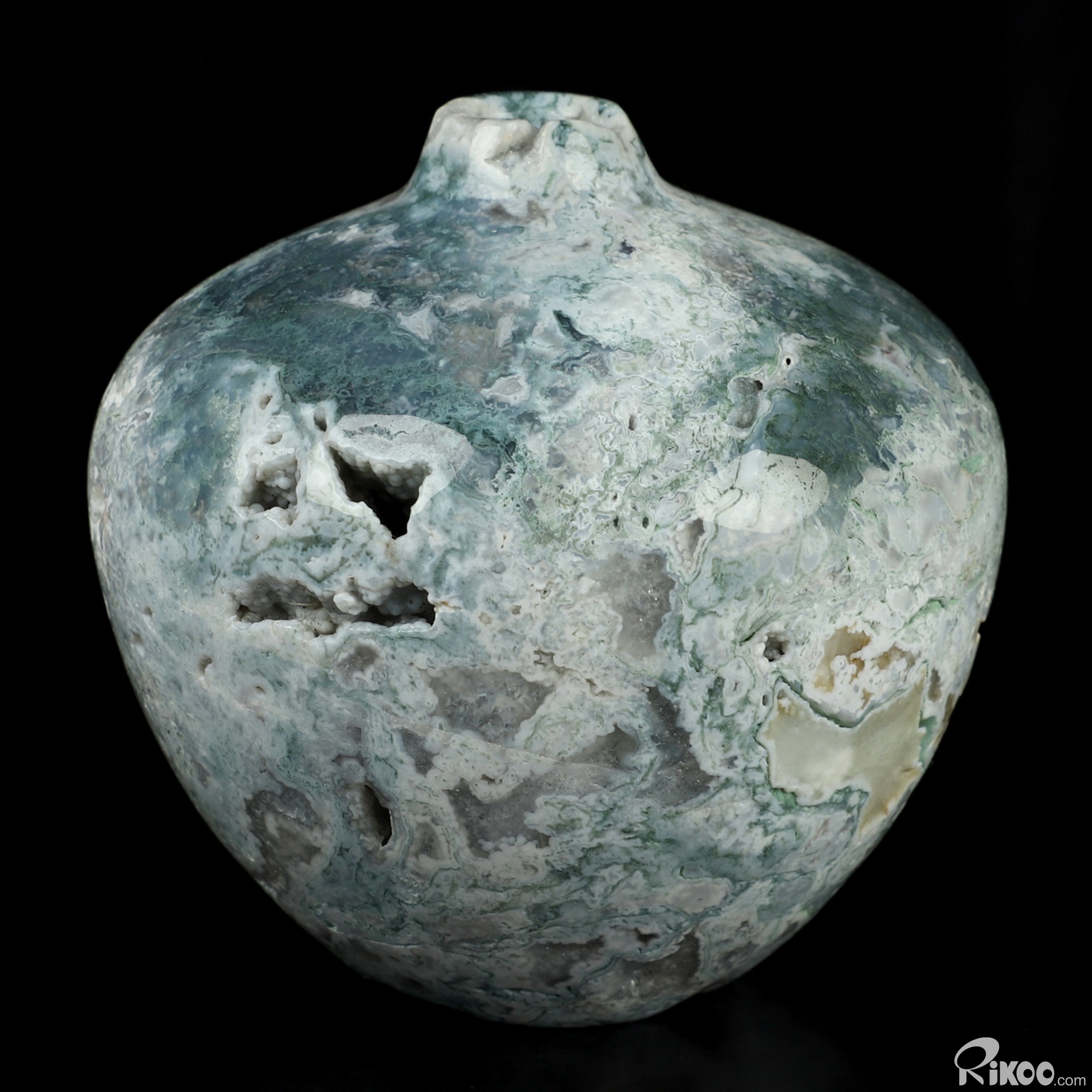 This vase with limited functionality is mainly for display.Connects one to Nature. Translucent, transparent agate containing inclusions of minerals that look like moss or foliage. Improves ego and self-esteem, emotional balance and strengthens positive personality traits. Allows one to see all the beauty one's eyes touch.