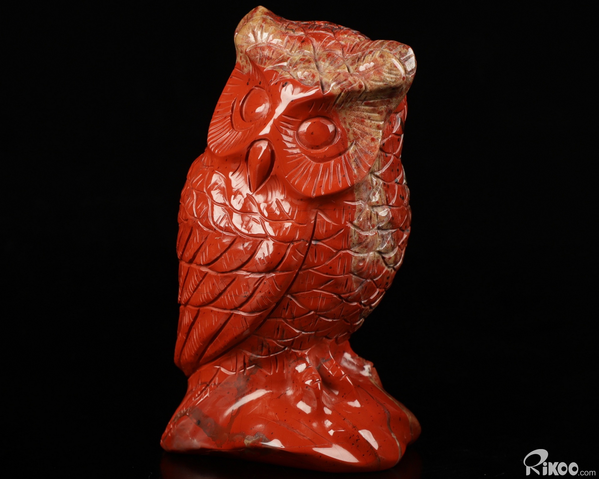 4.4" Red Jasper Carved Crystal Owl, Realistic, Crystal Healing