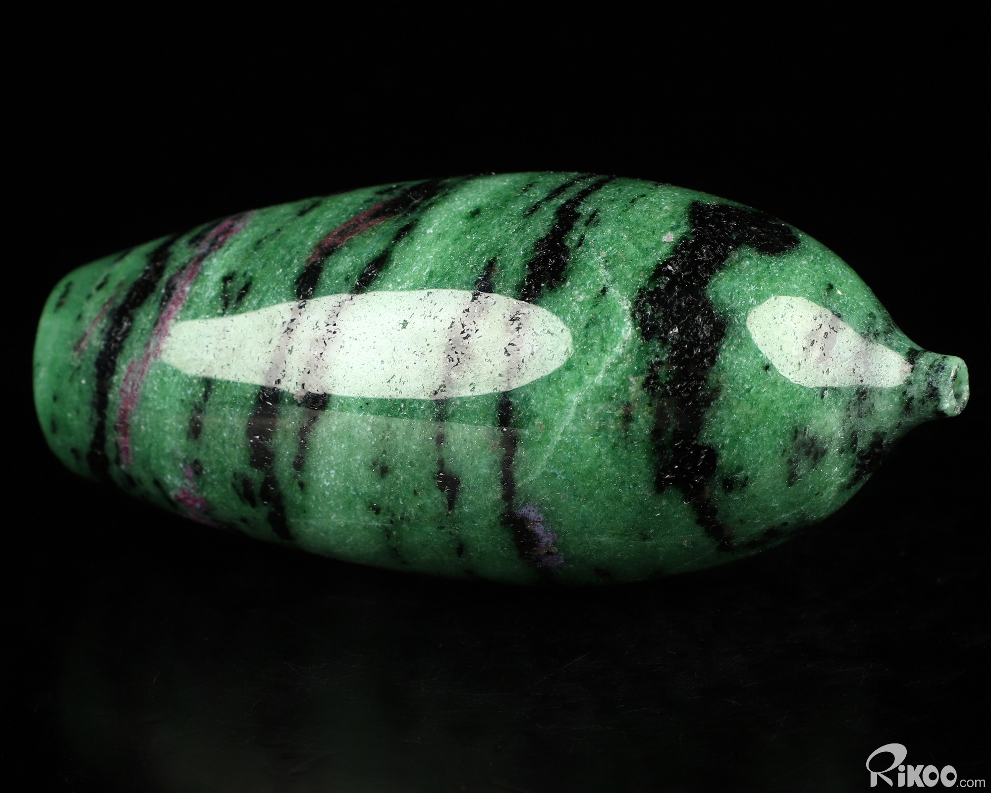 You are looking at a Ruby Zoisite vase. The sculpture is 4.4 inches long.
