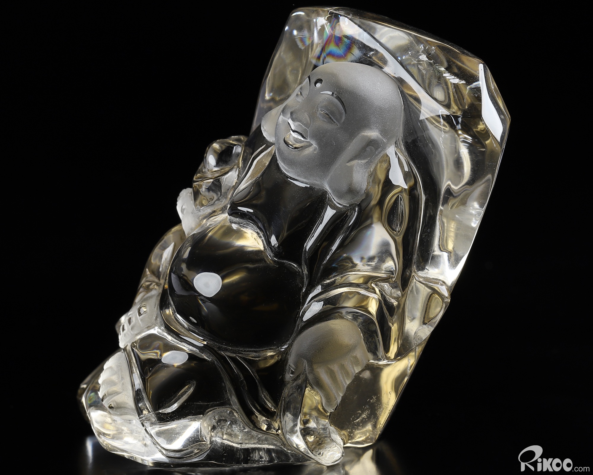 You are looking at a Smoky Quartz Rock Crystal buddha. The buddha is 4.4 inches long from front to back.