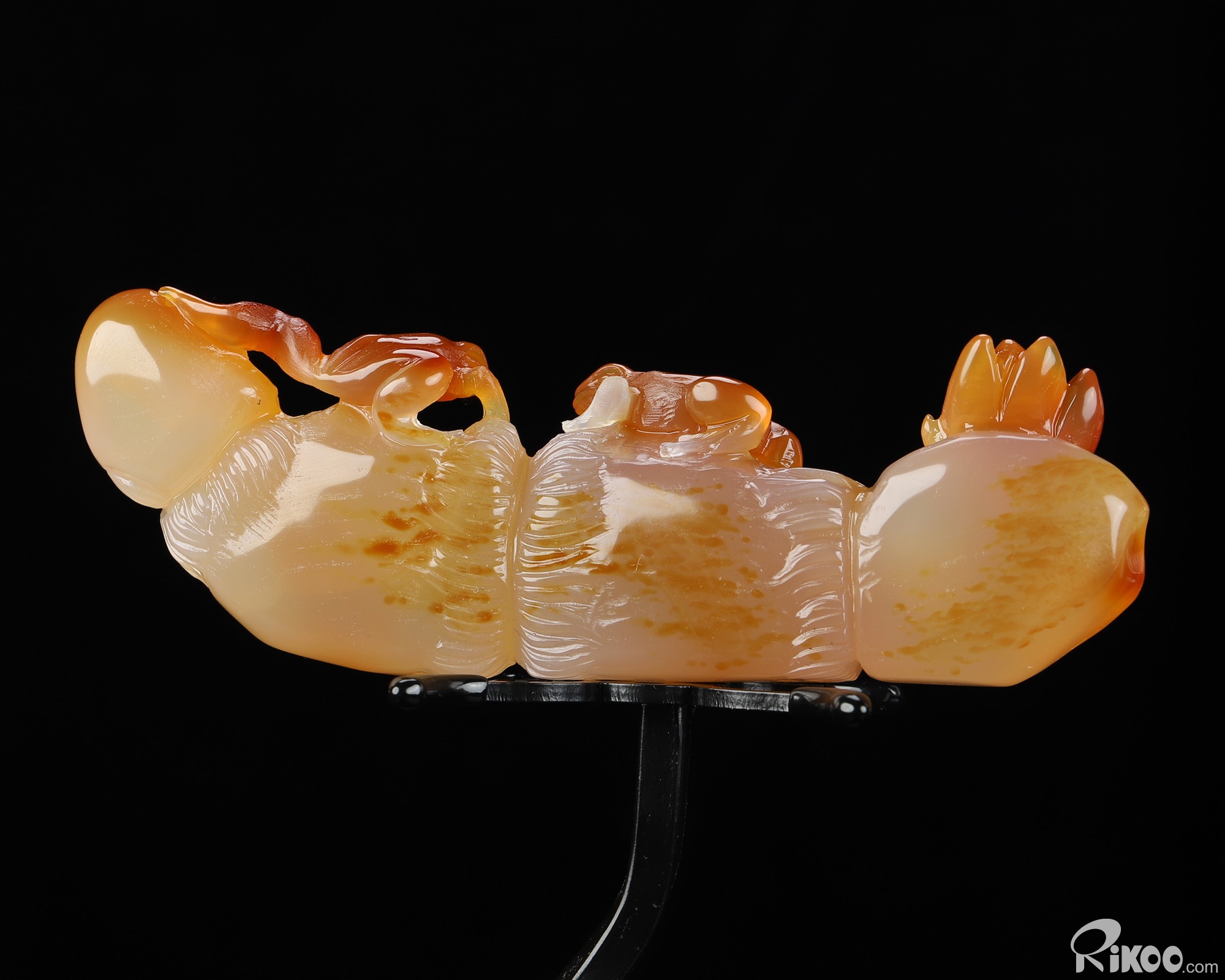 You are looking at a Carnelian sculpture. The sculpture is 4.5 inches long.