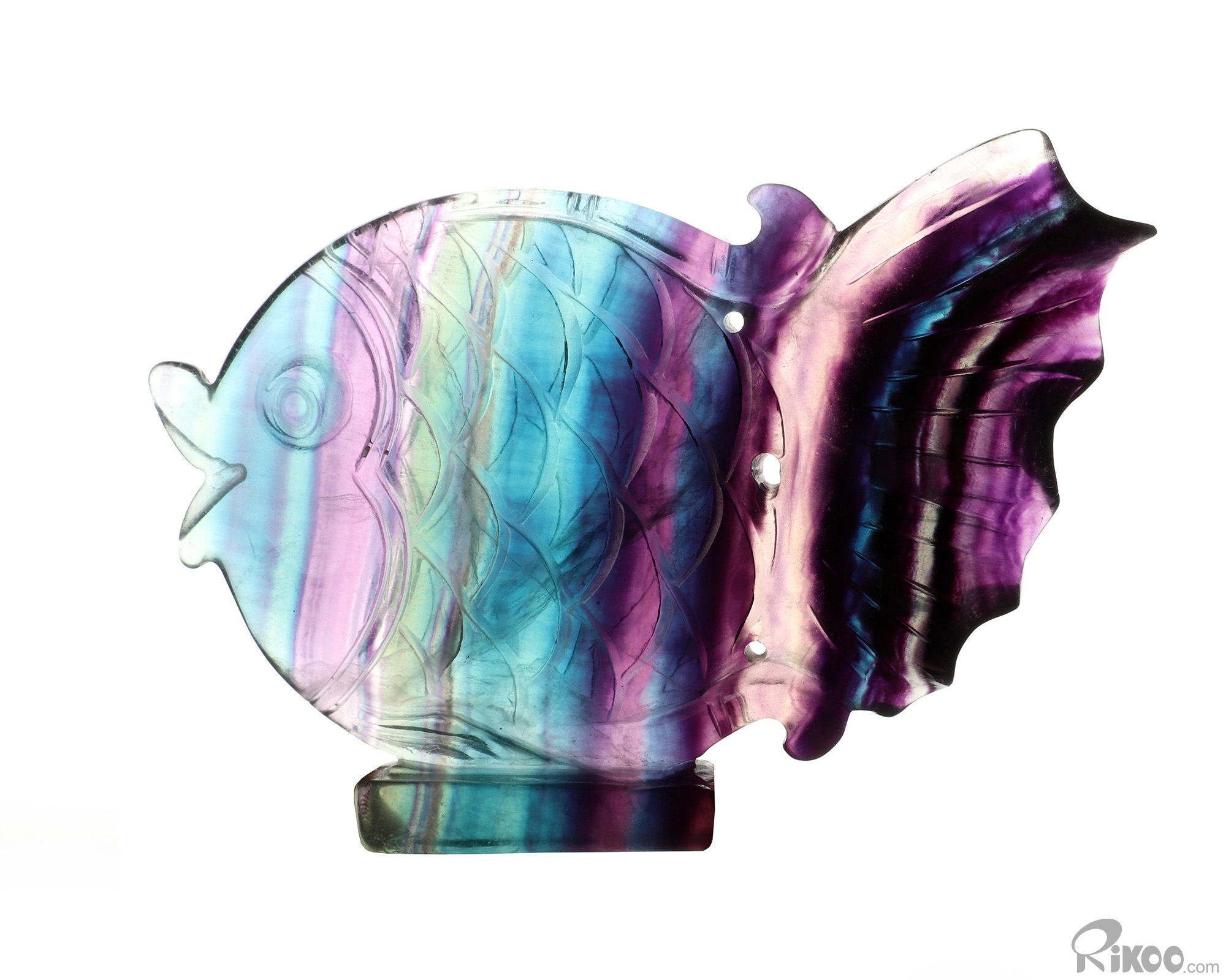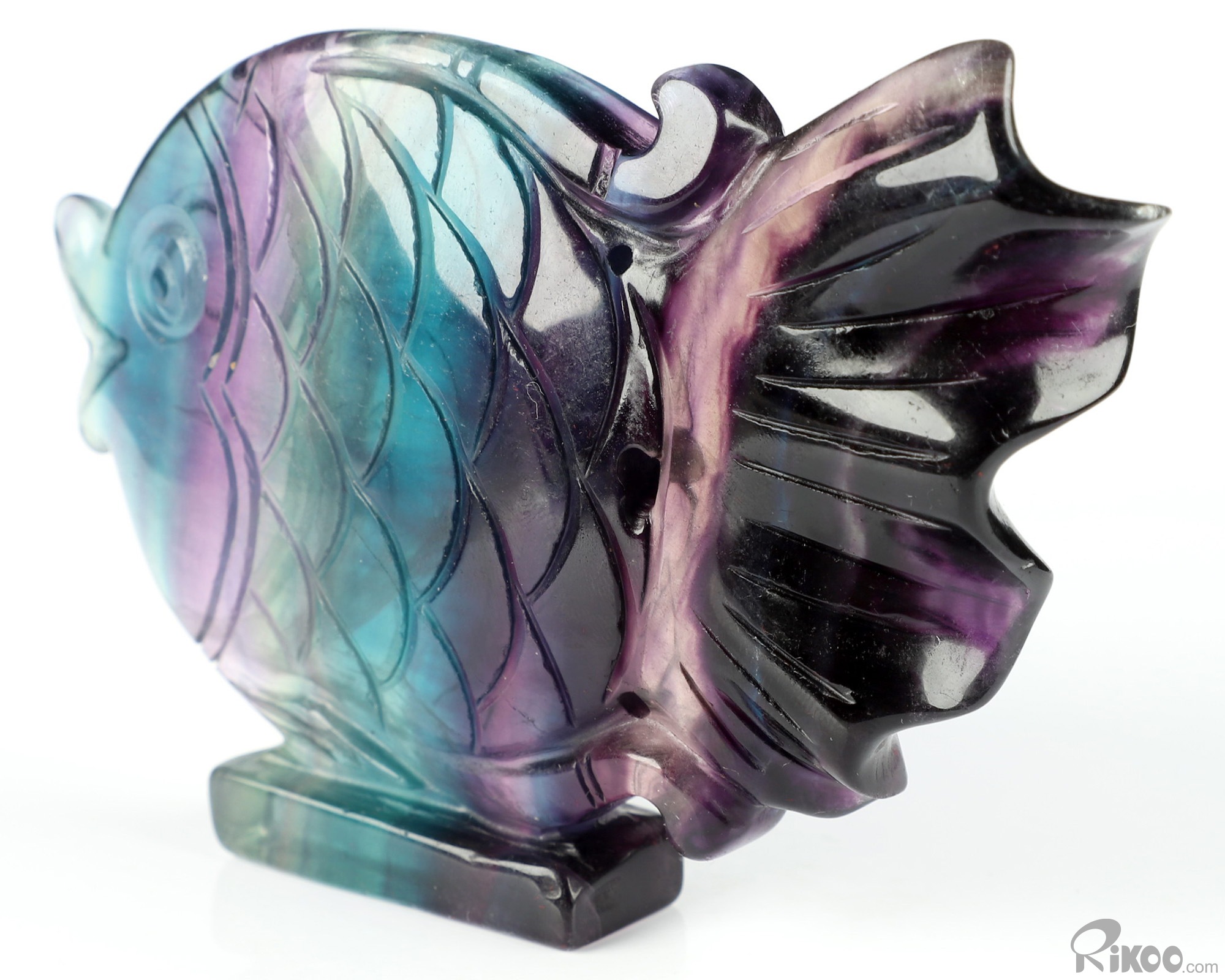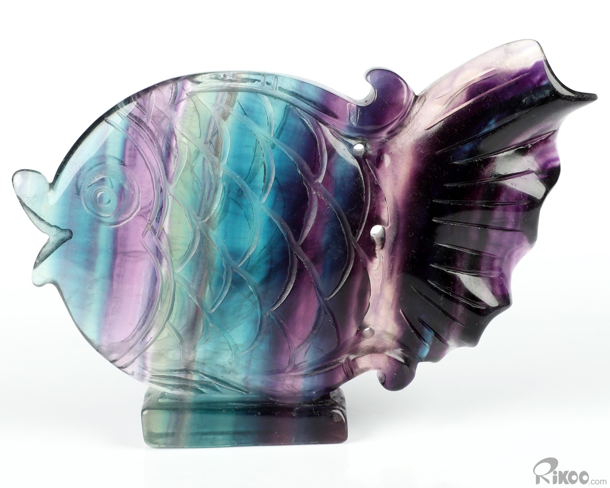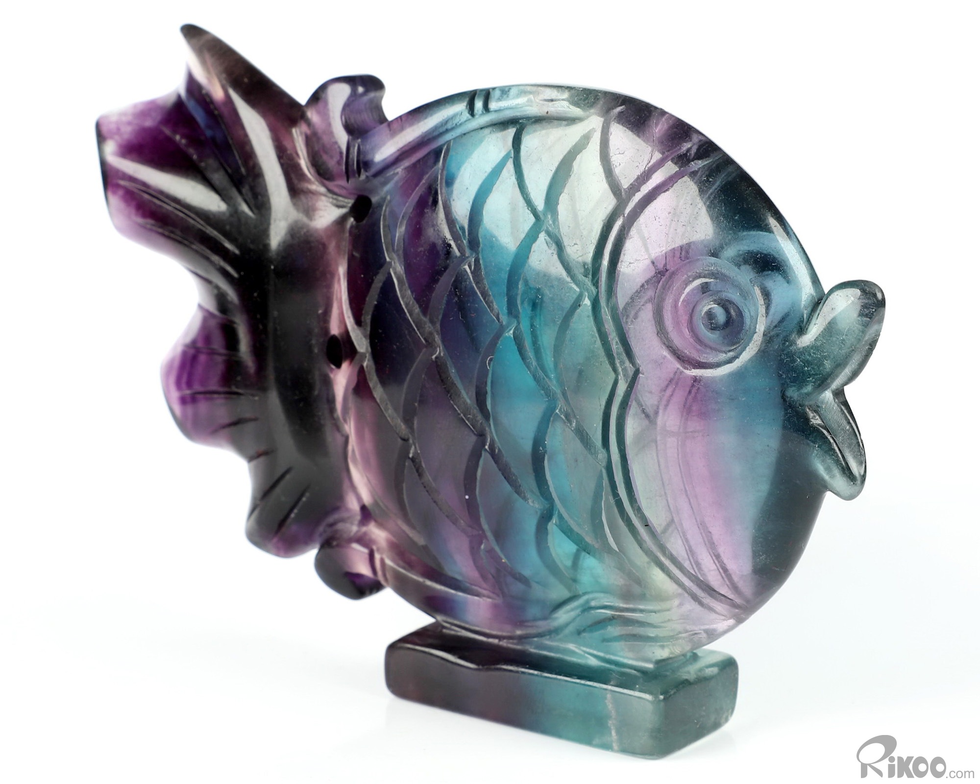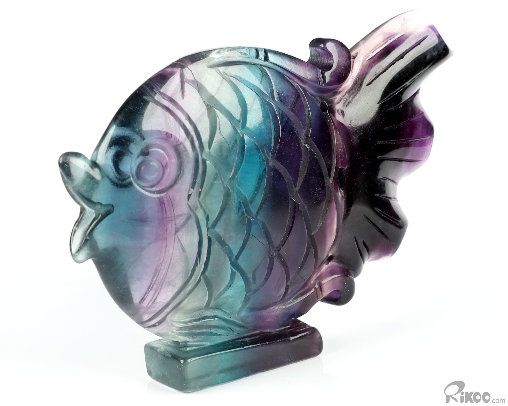 4.5" Fluorite Hand Carved Crystal Fish Sculpture, Crystal Healing