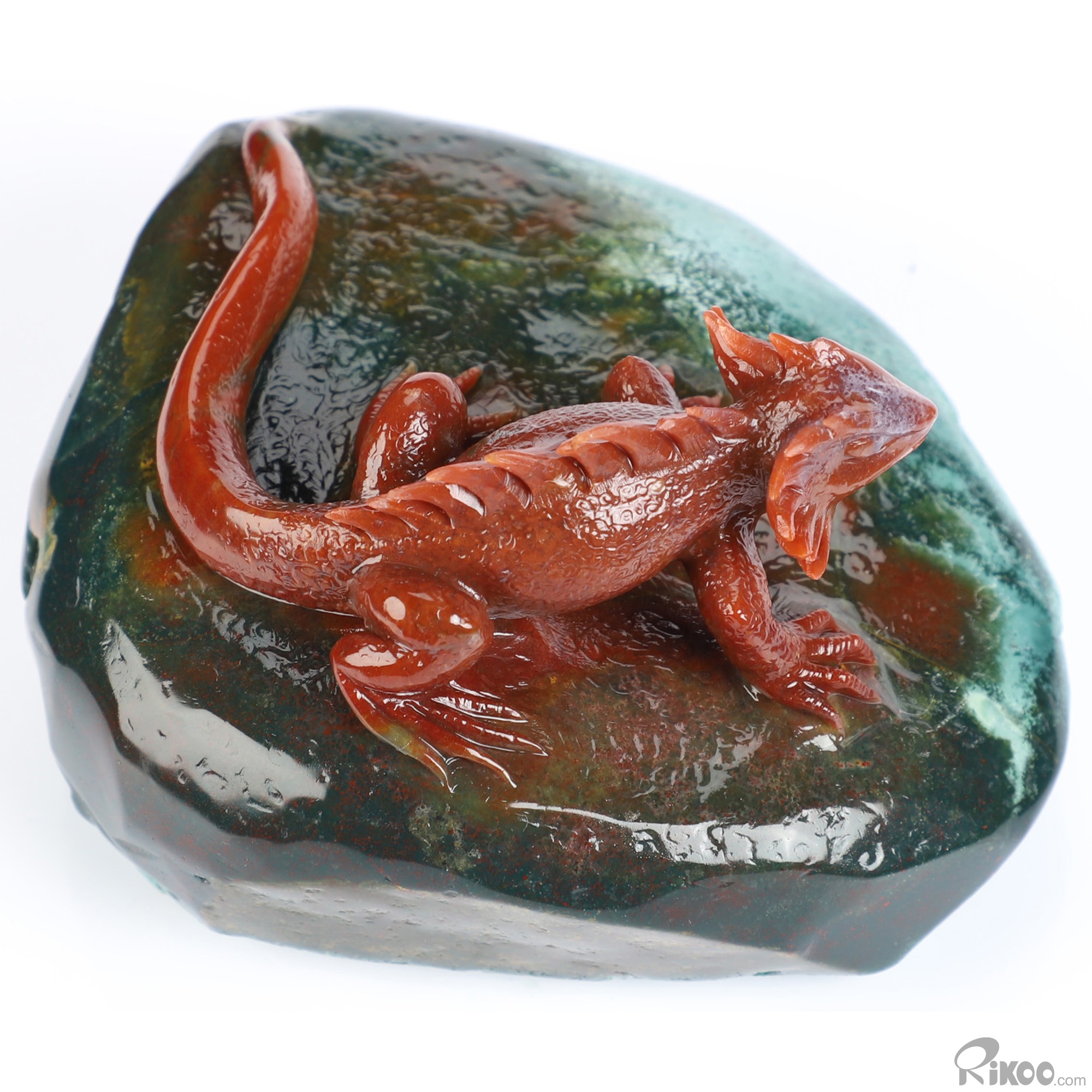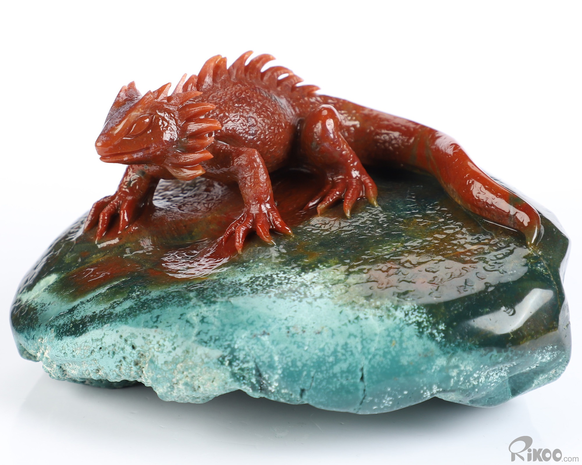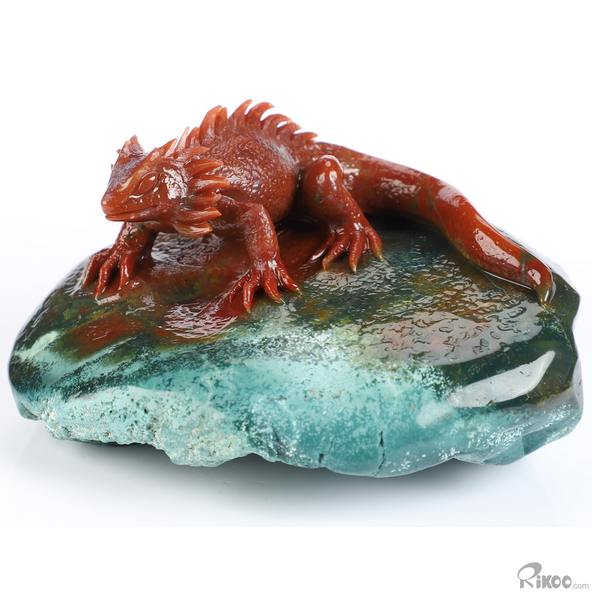 4.5" Indian Agate Hand Carved Crystal Lizard Sculpture, Crystal Healing