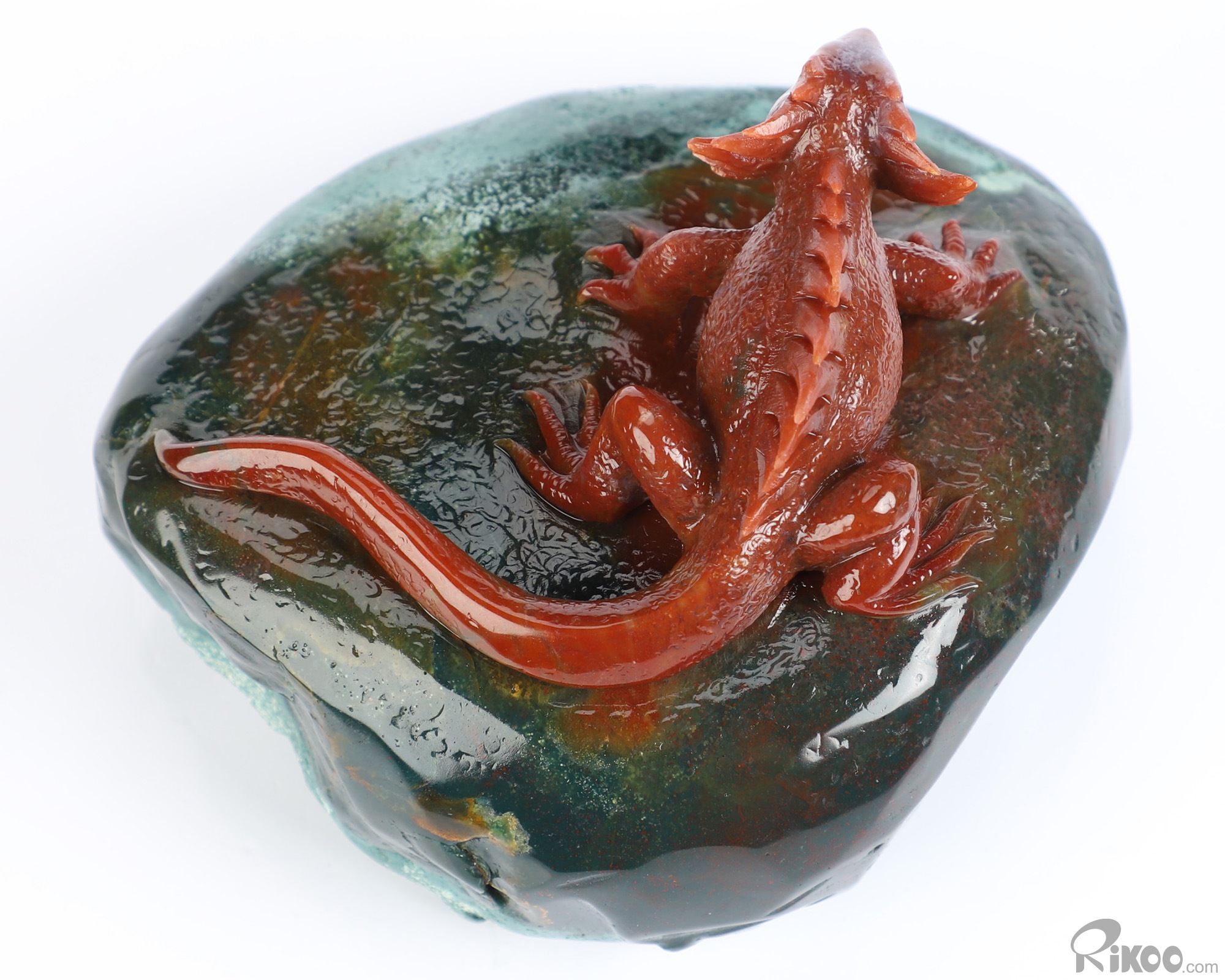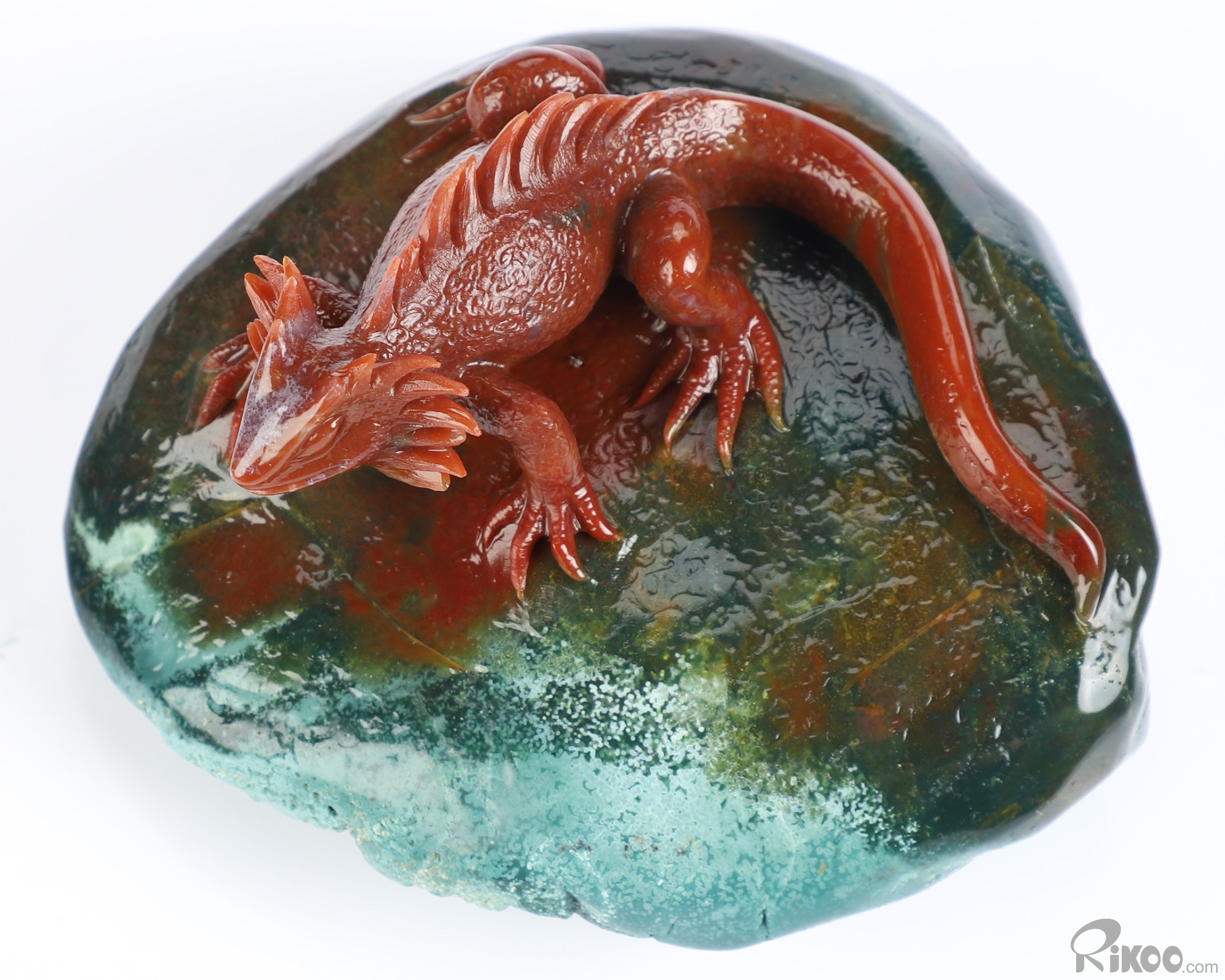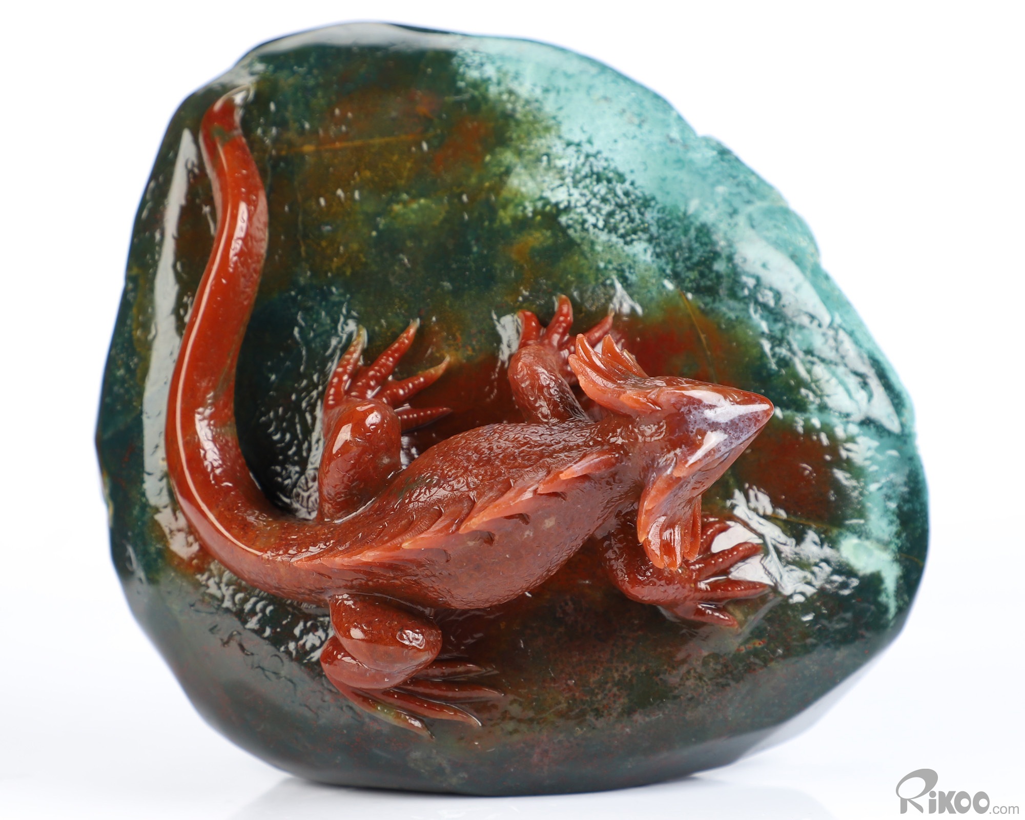 4.5" Indian Agate Hand Carved Crystal Lizard Sculpture, Crystal Healing