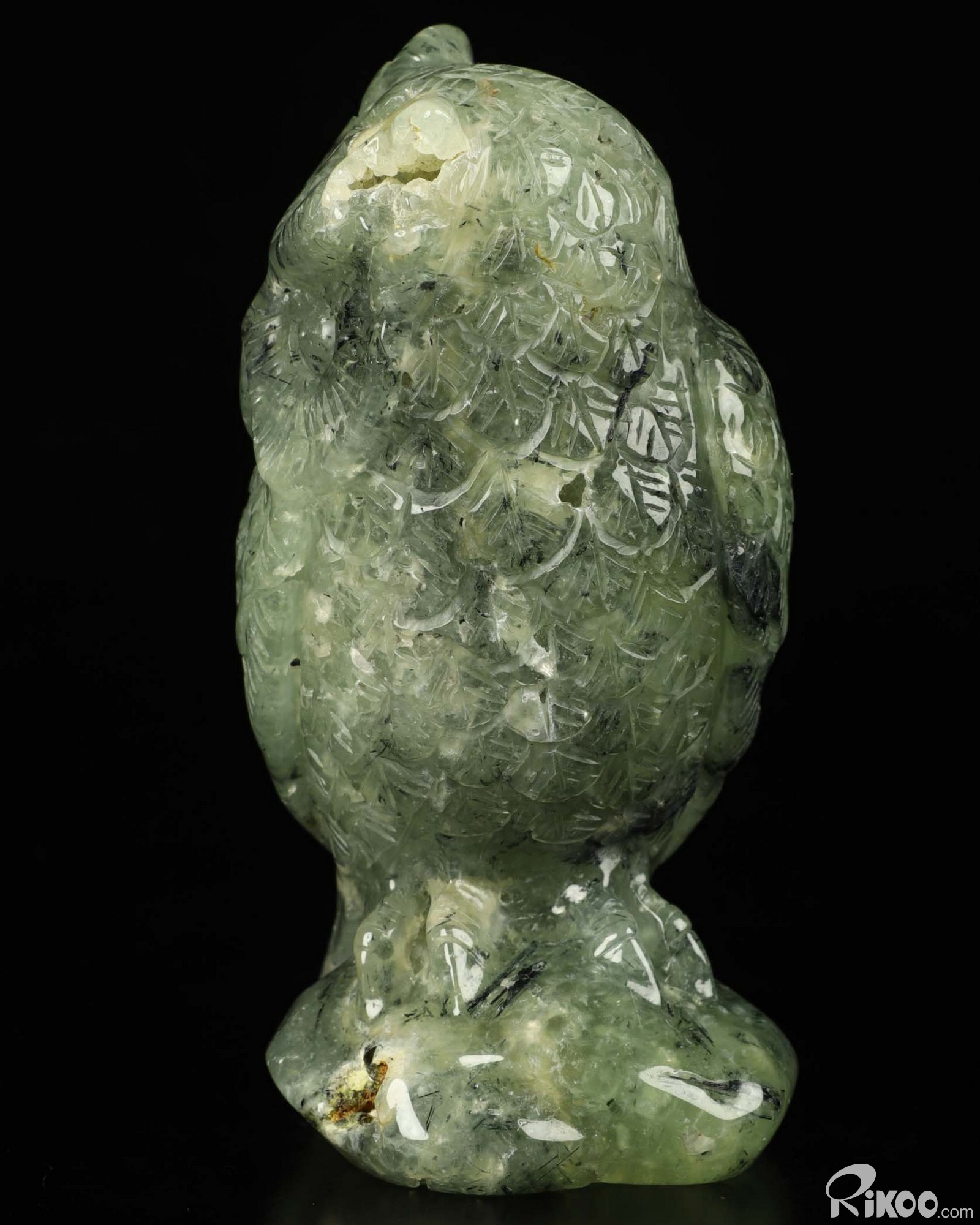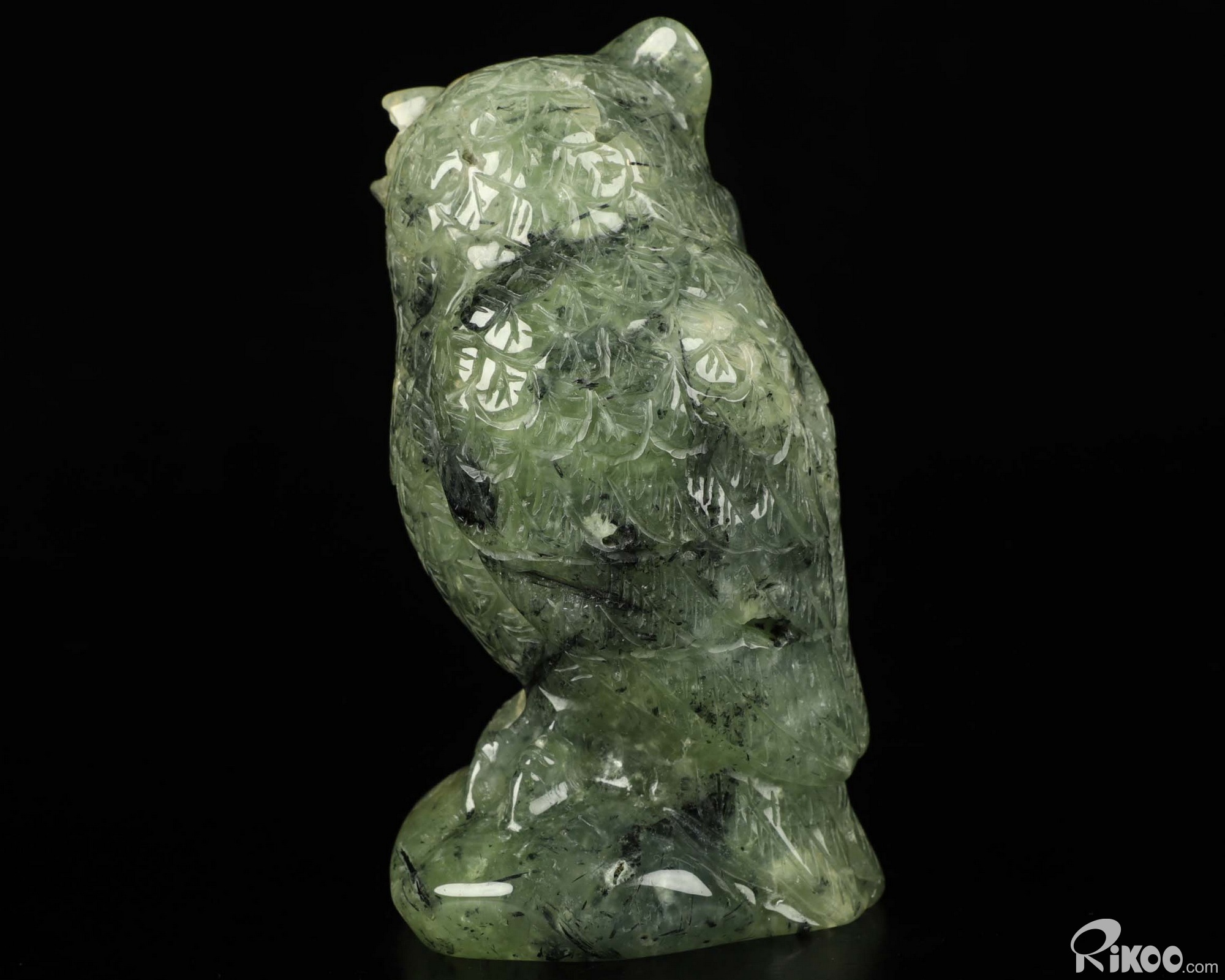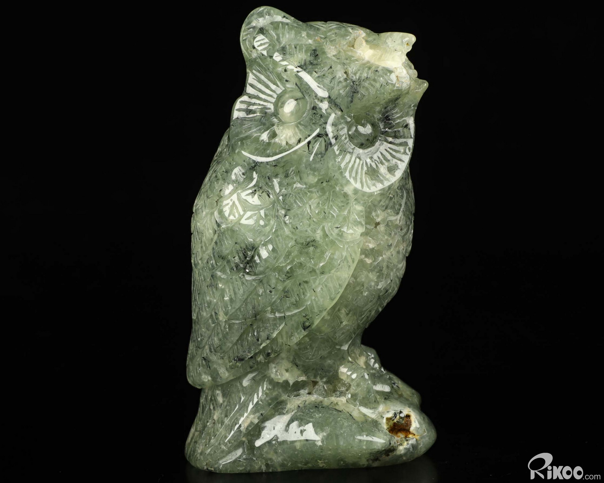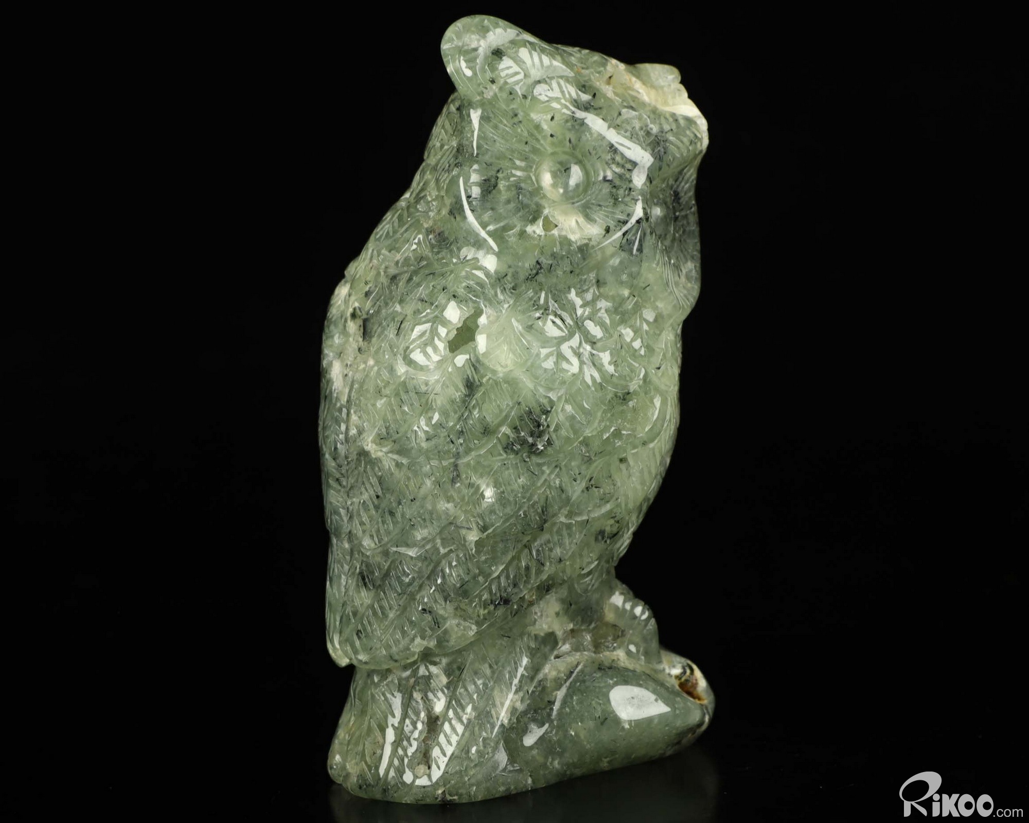 4.5" Prehnite Carved Crystal Owl, Realistic, Crystal Healing