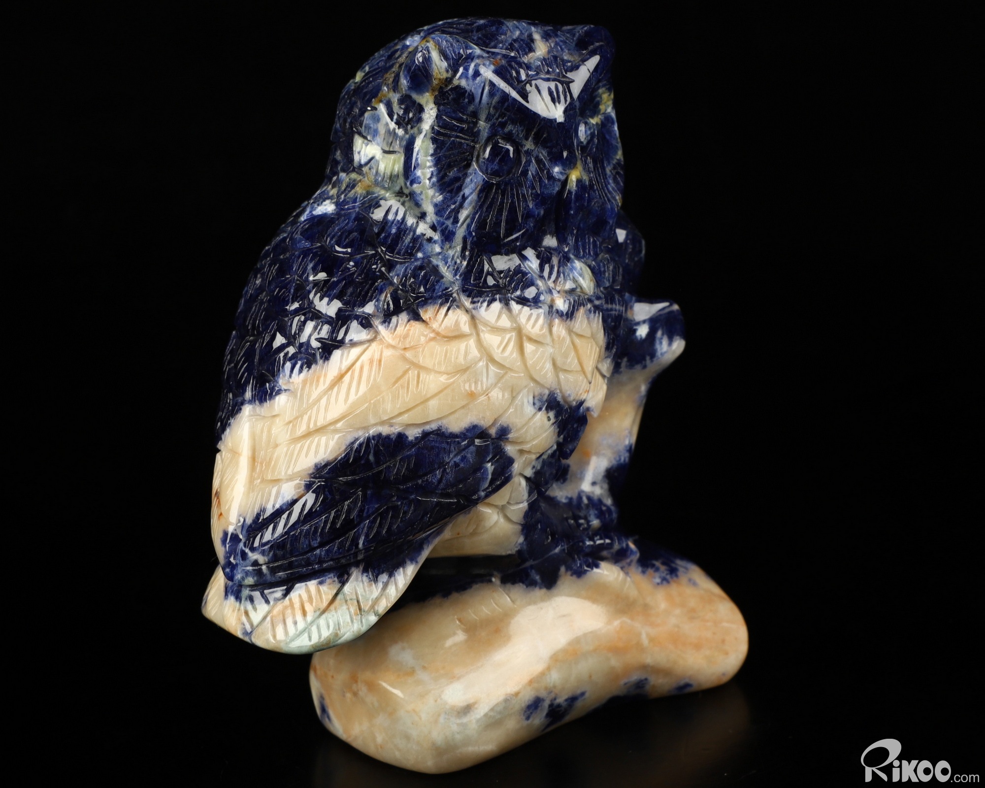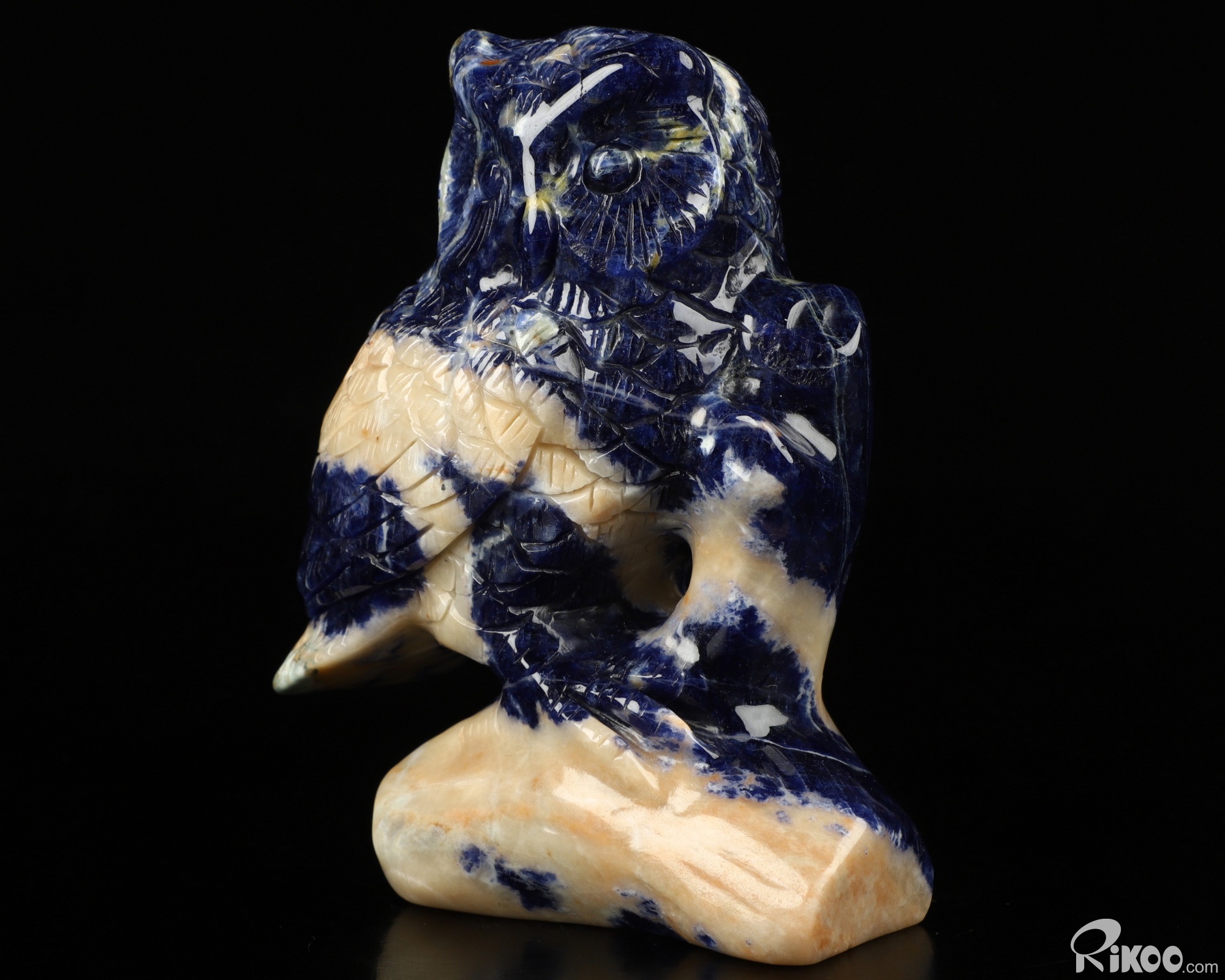 4.5" Sodalite Carved Crystal Owl Sculpture, Realistic, Crystal Healing