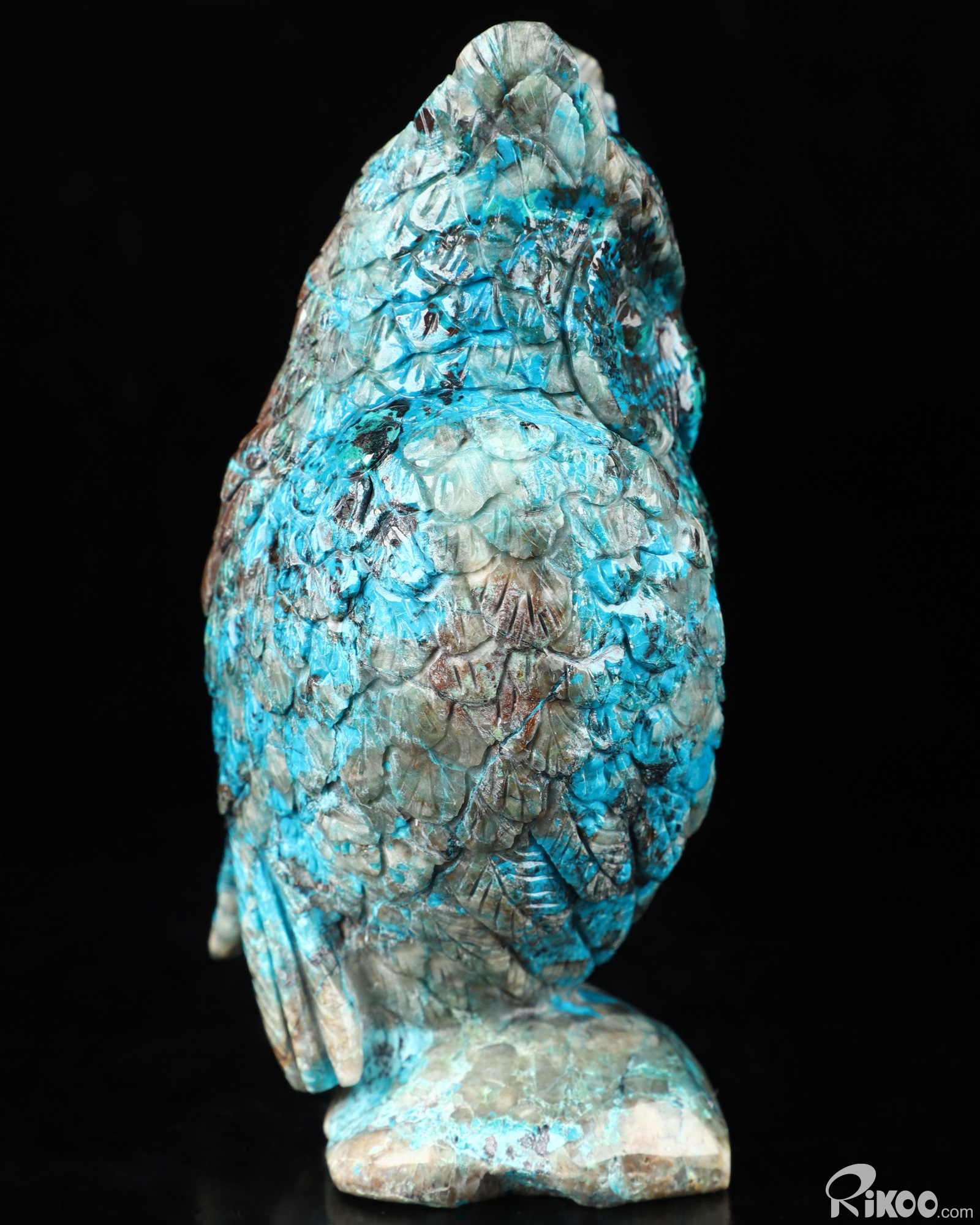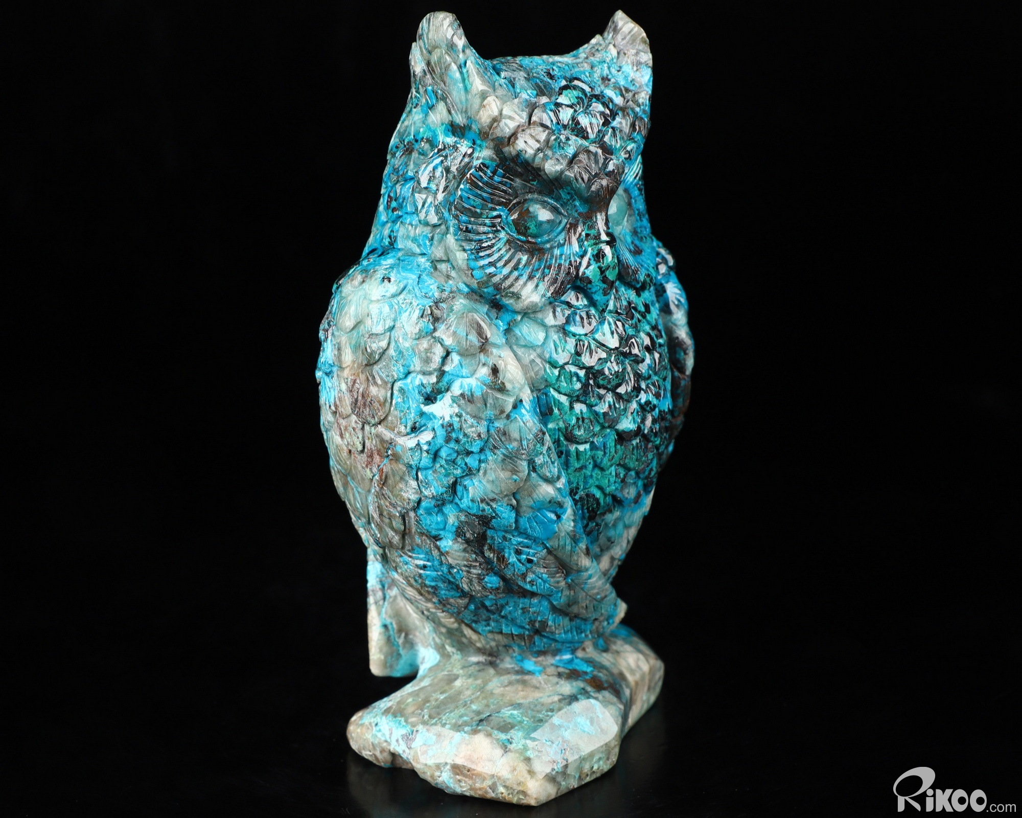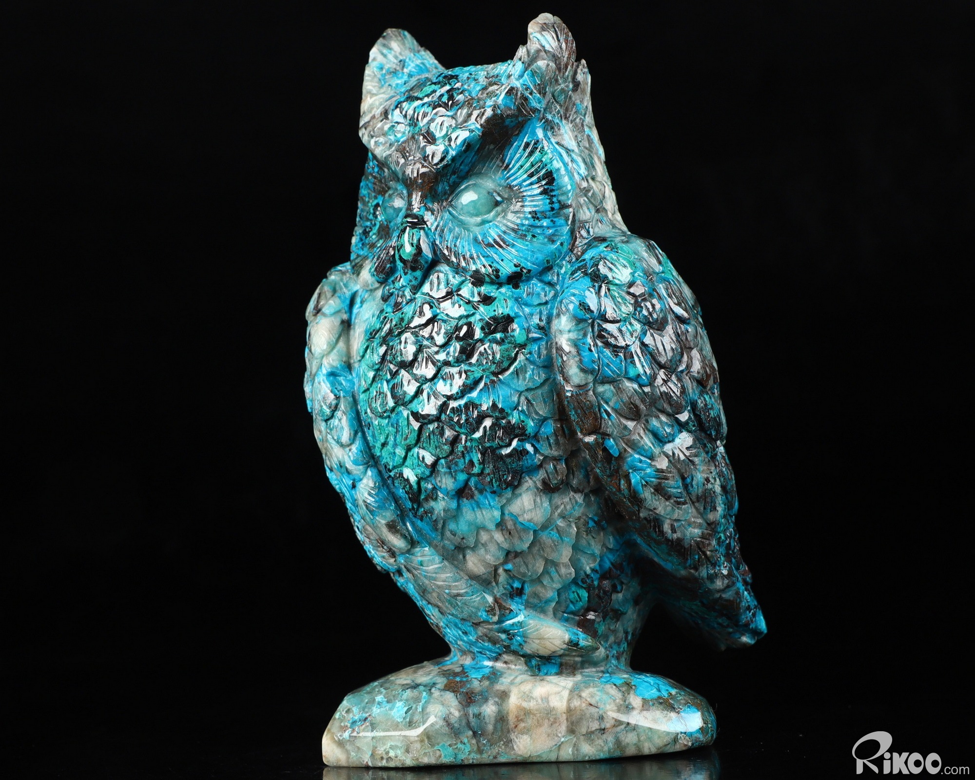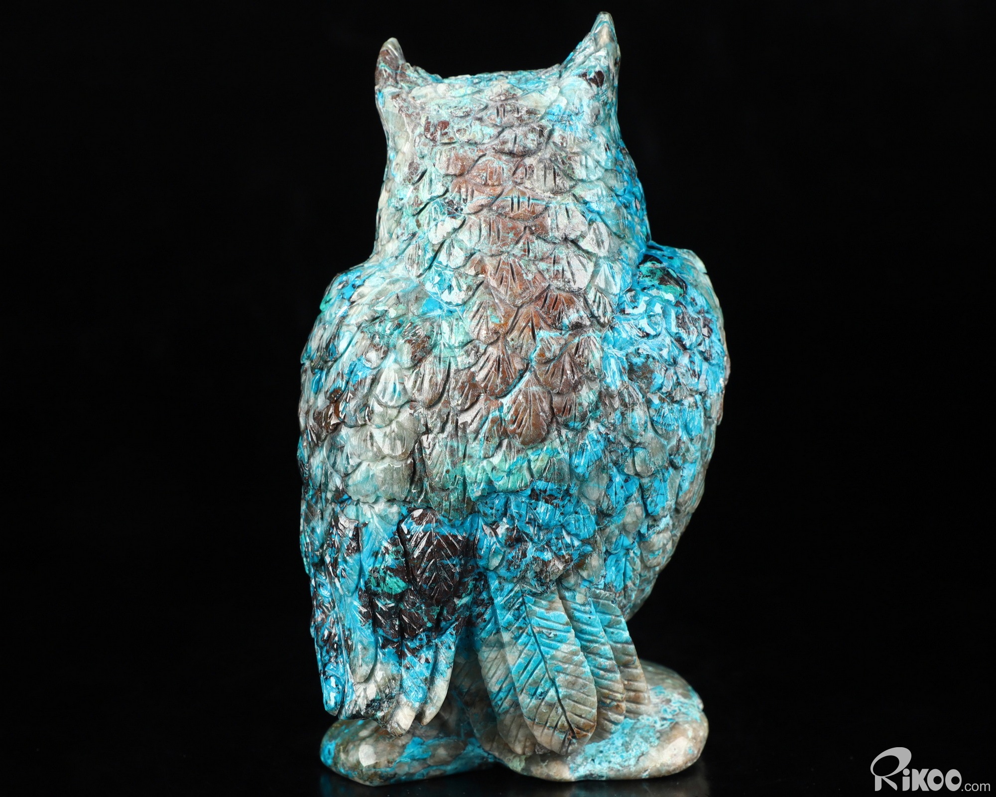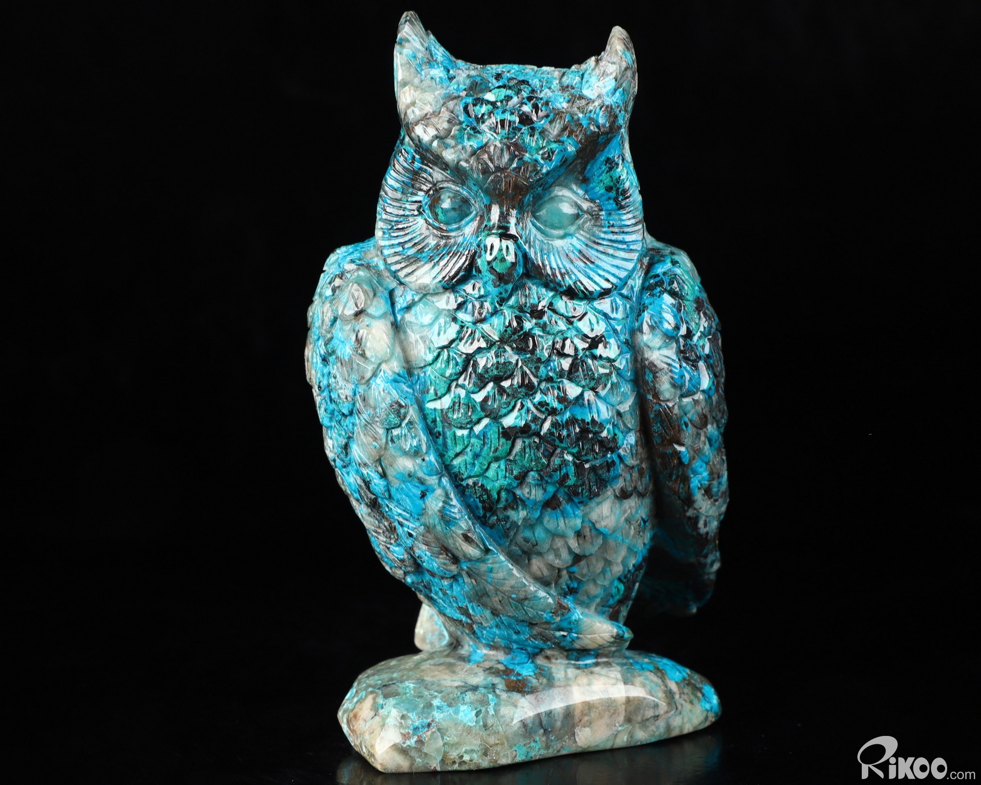 4.6" American Chrysocolla Carved Crystal Owl Sculpture, Realistic, Crystal Healing