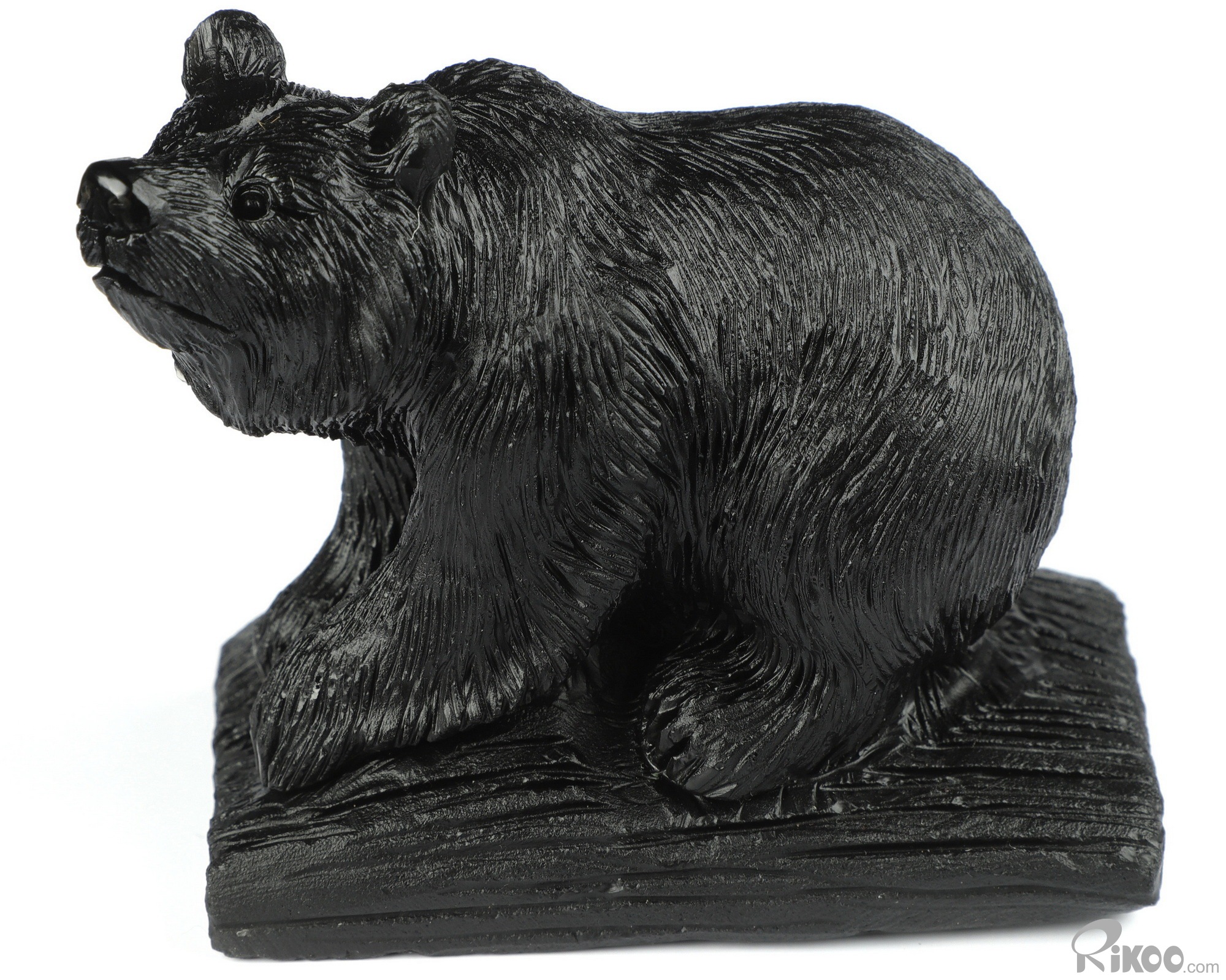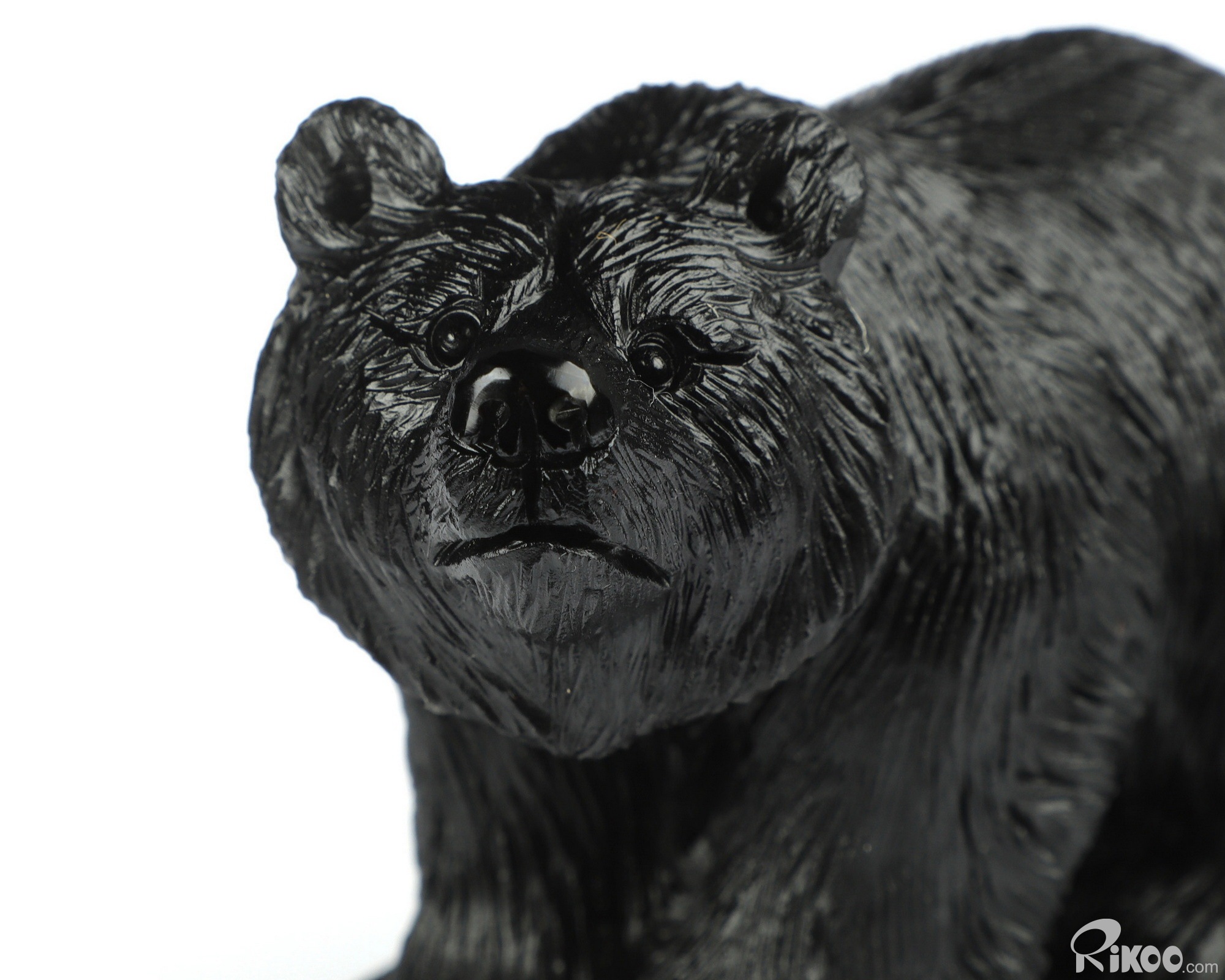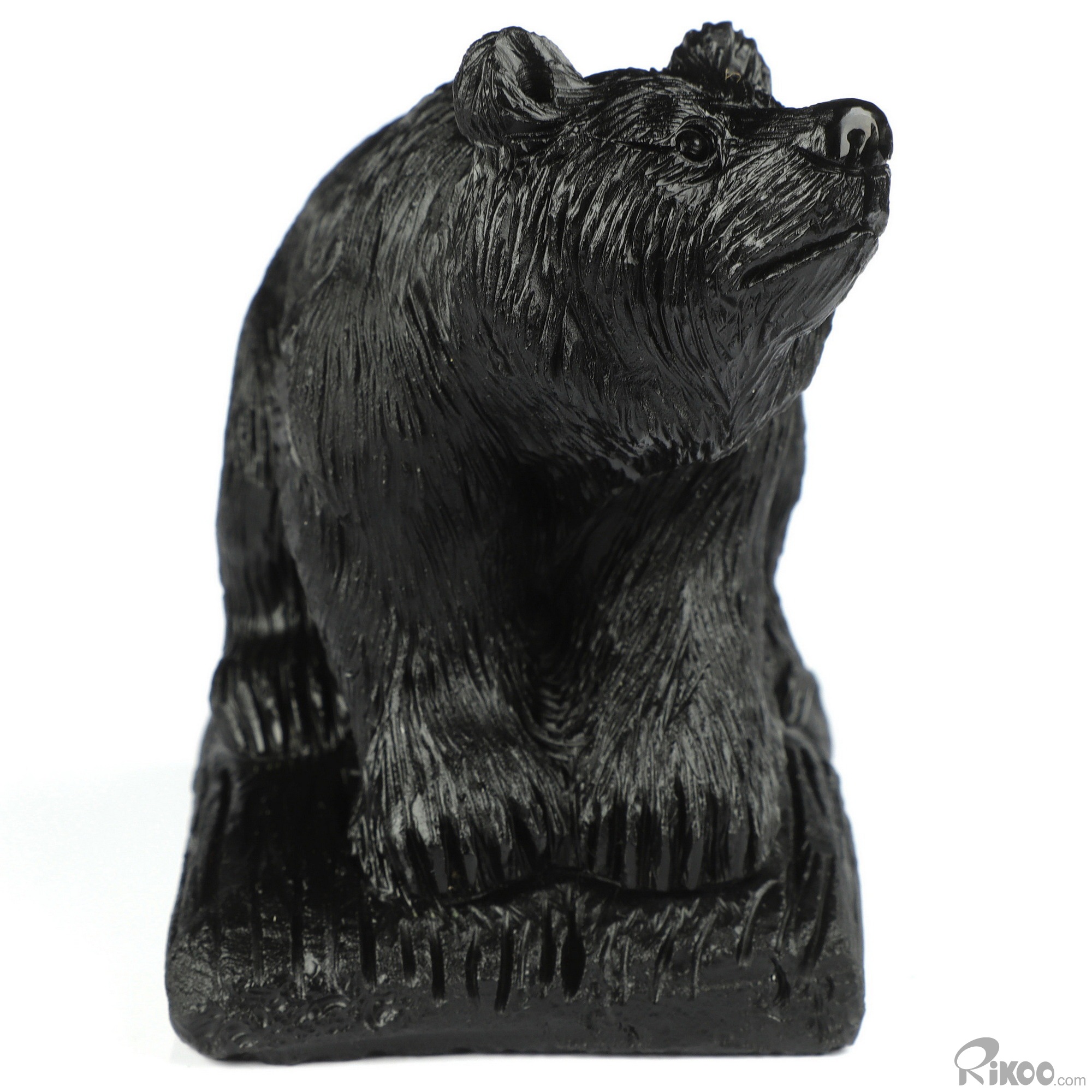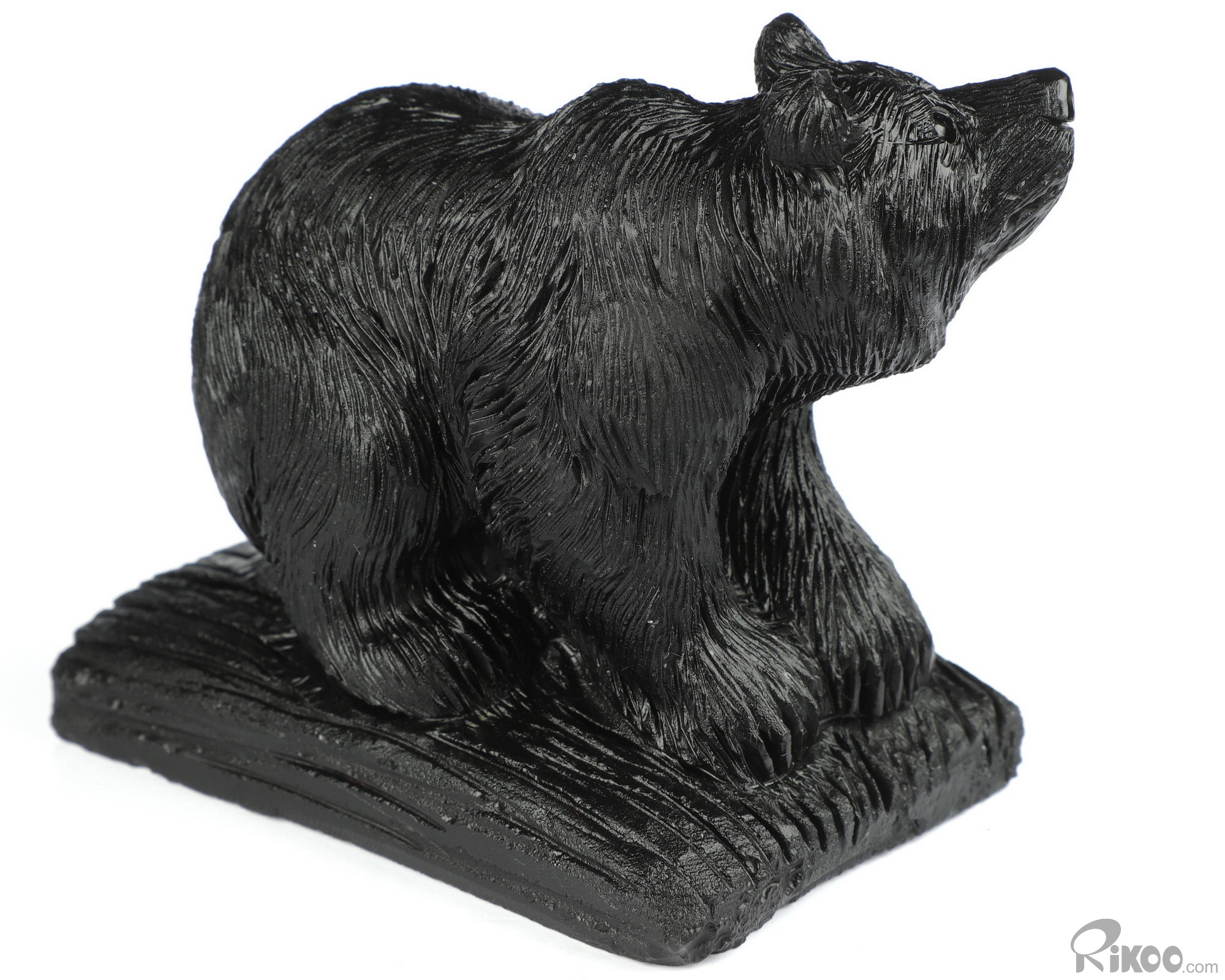 4.6" Black Obsidian Hand Carved Crystal Bear Sculpture, Crystal Healing