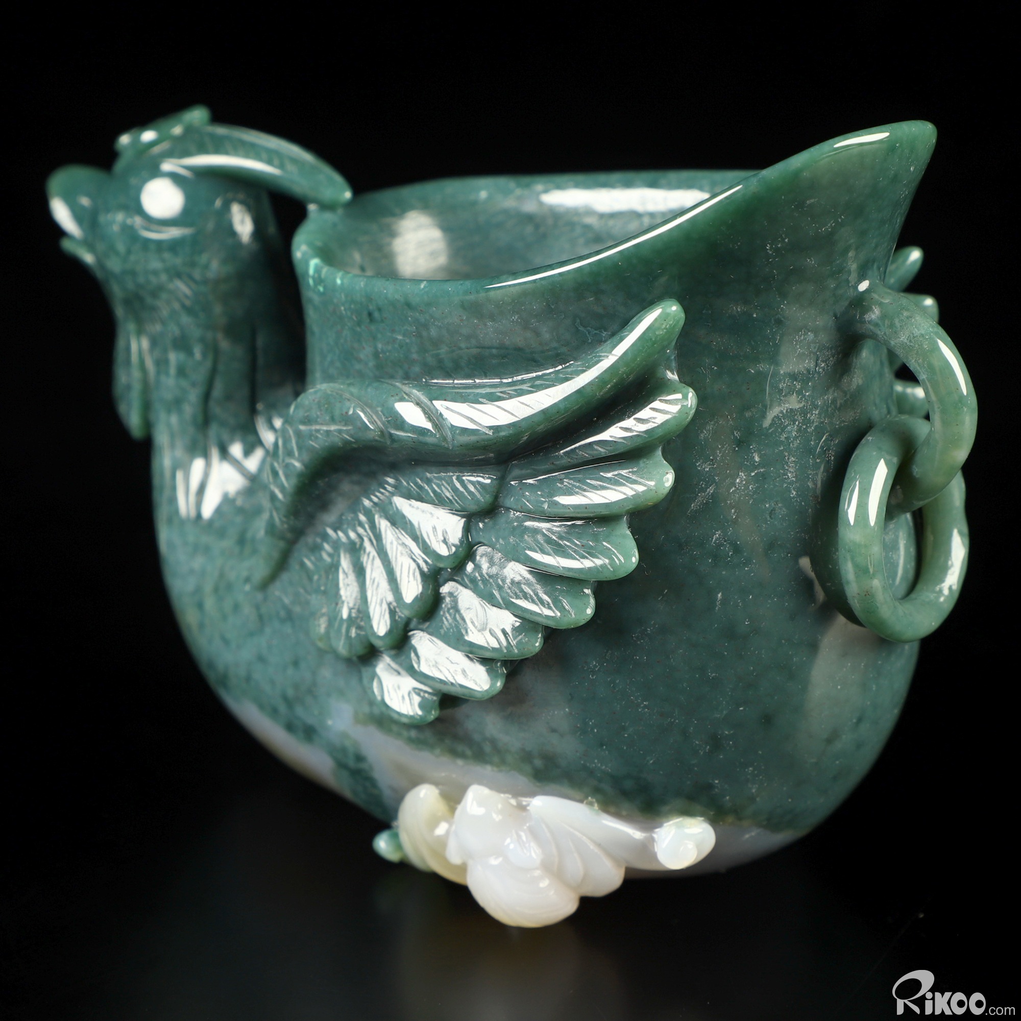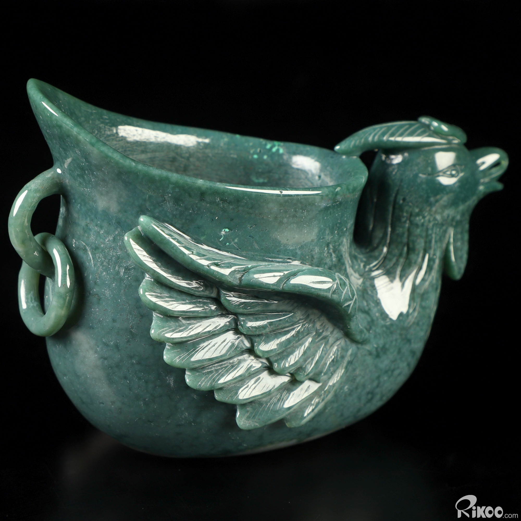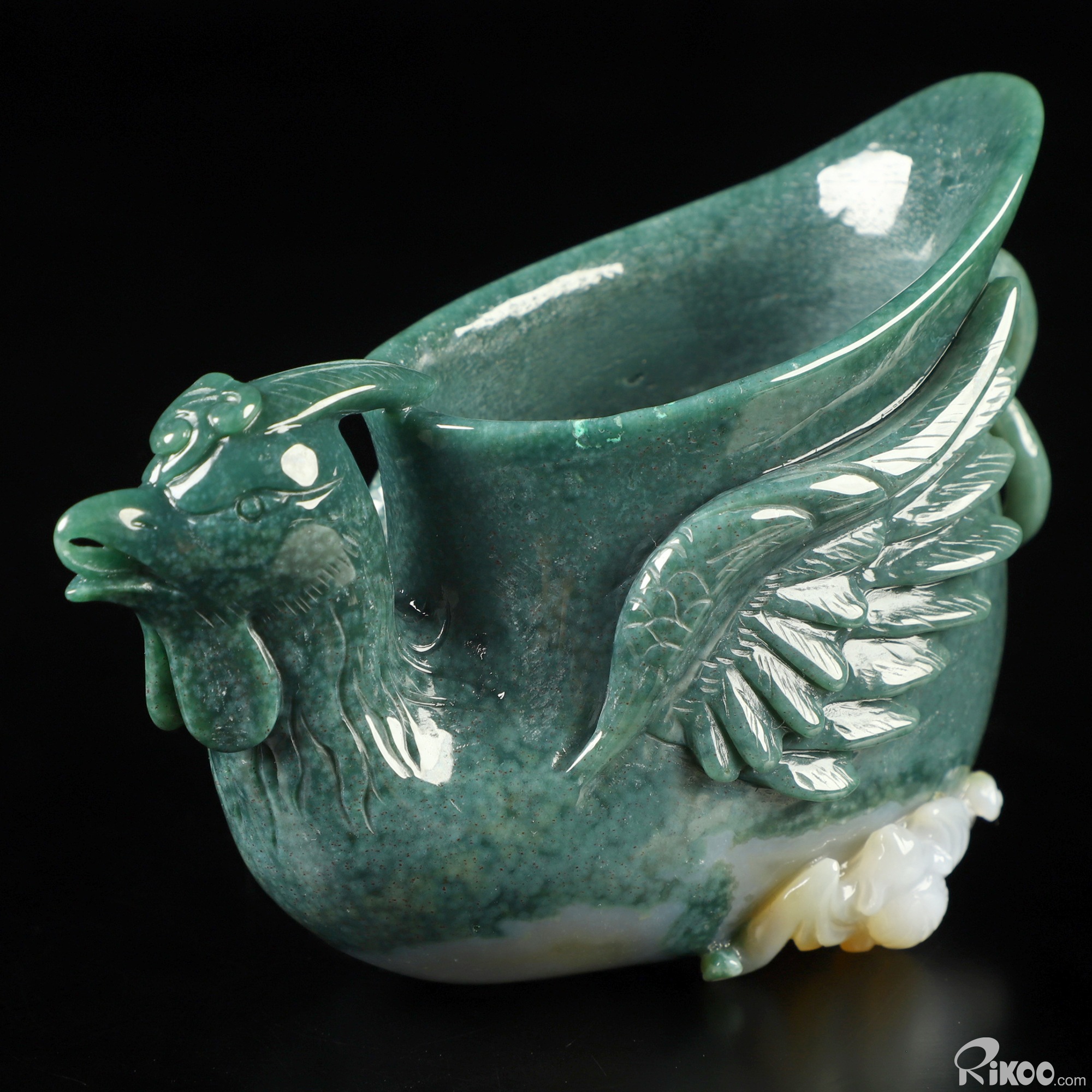 4.6" Indian Agate Hand Carved Crystal Phoenix Cup, Crystal Healing
