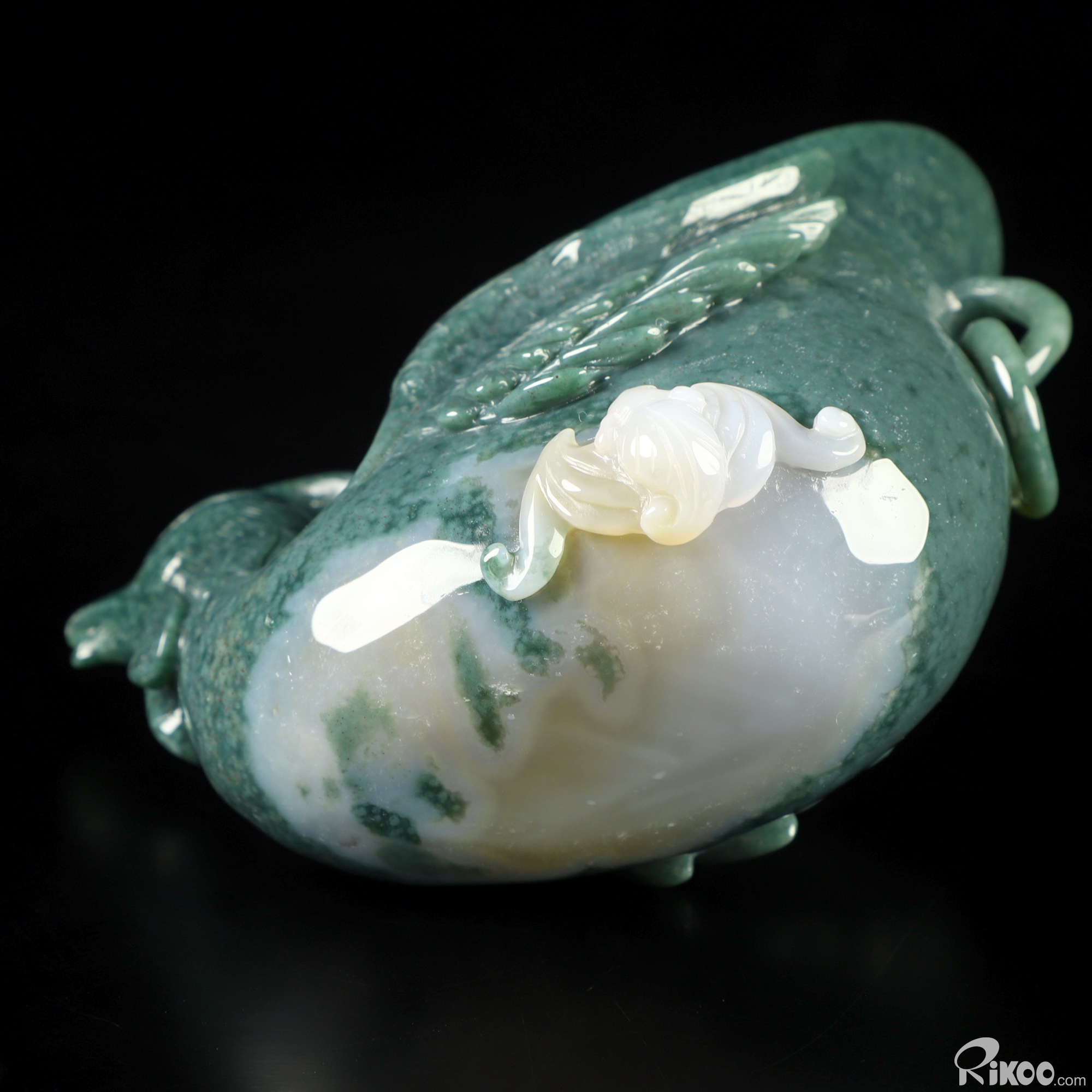 You are looking at an Indian Agate sculpture. The sculpture is 4.6 inches long.