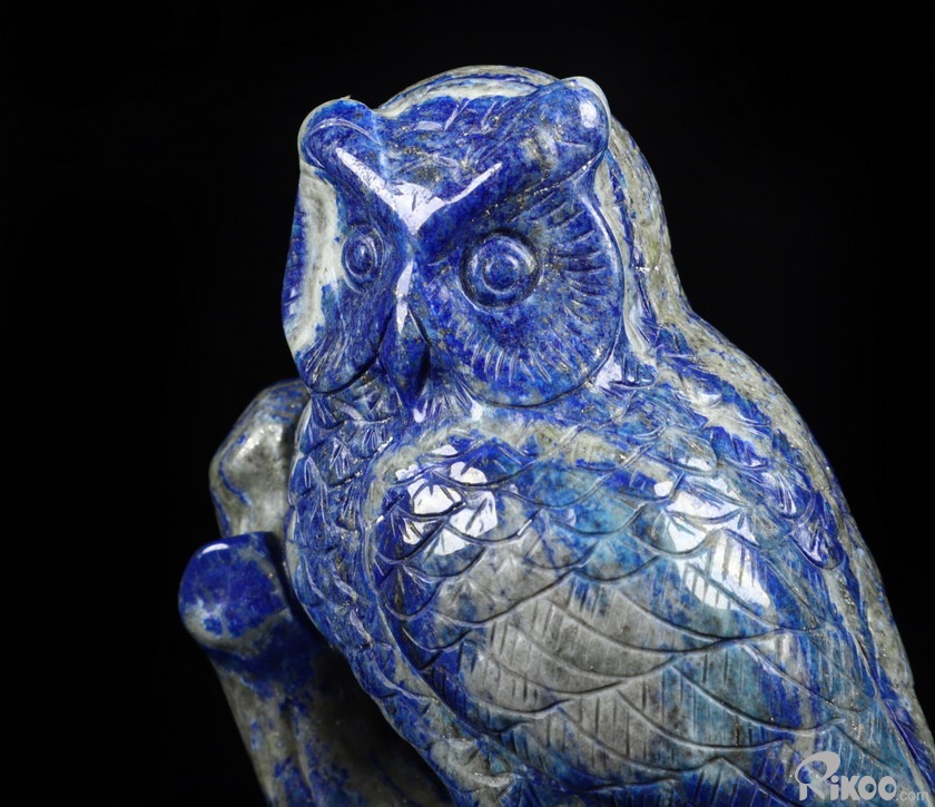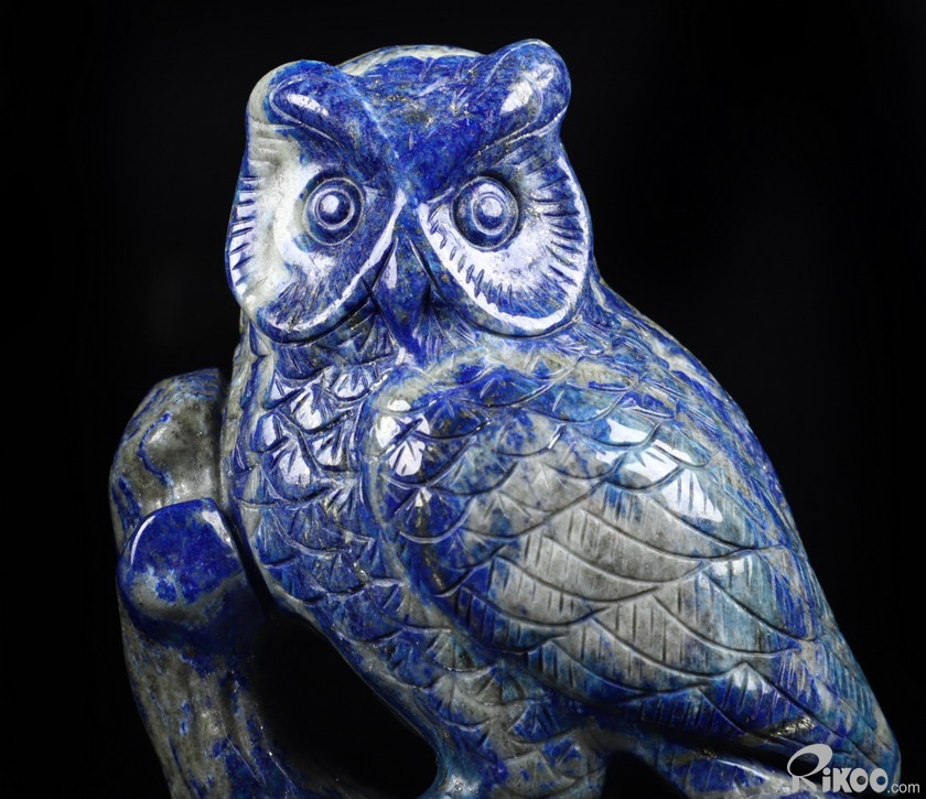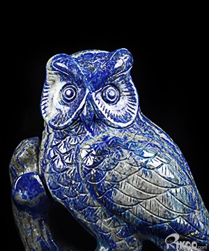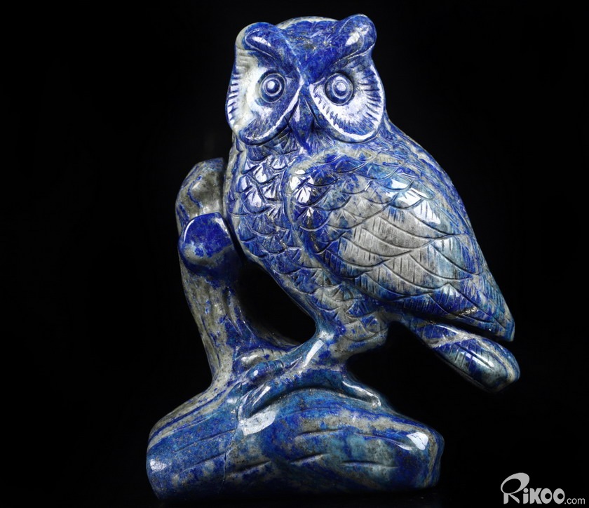 4.6" Lapis Lazuli Carved Crystal Owl Sculpture, Realistic, Crystal Healing