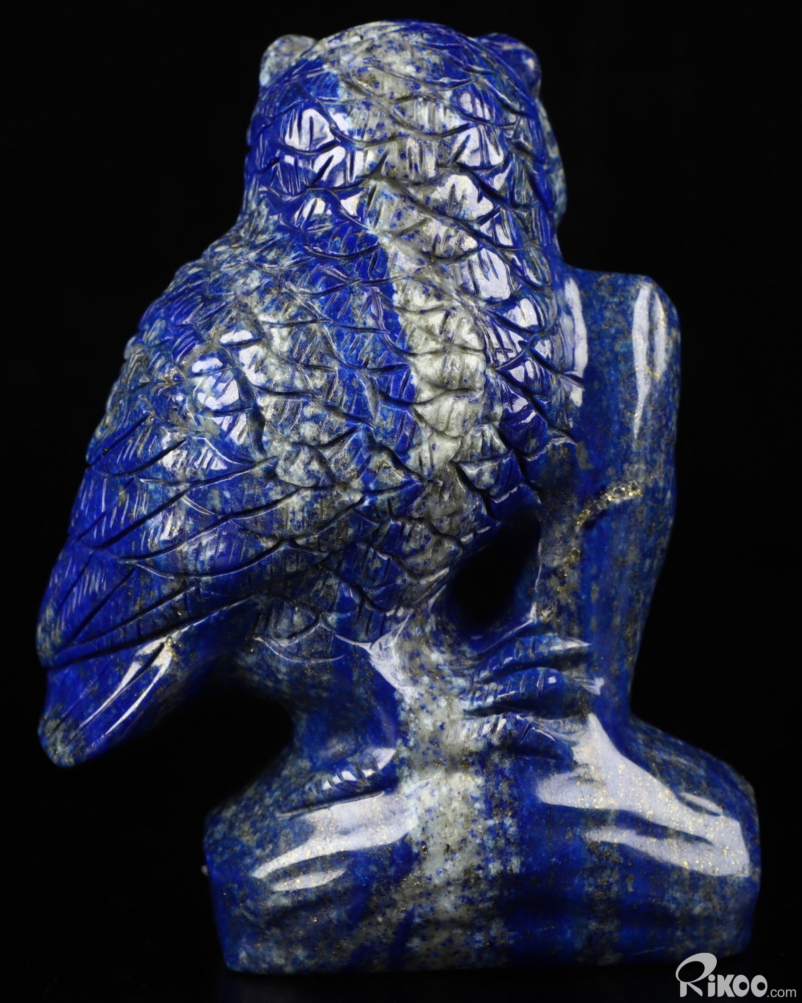4.6" Lapis Lazuli Carved Crystal Owl Sculpture, Realistic, Crystal Healing
