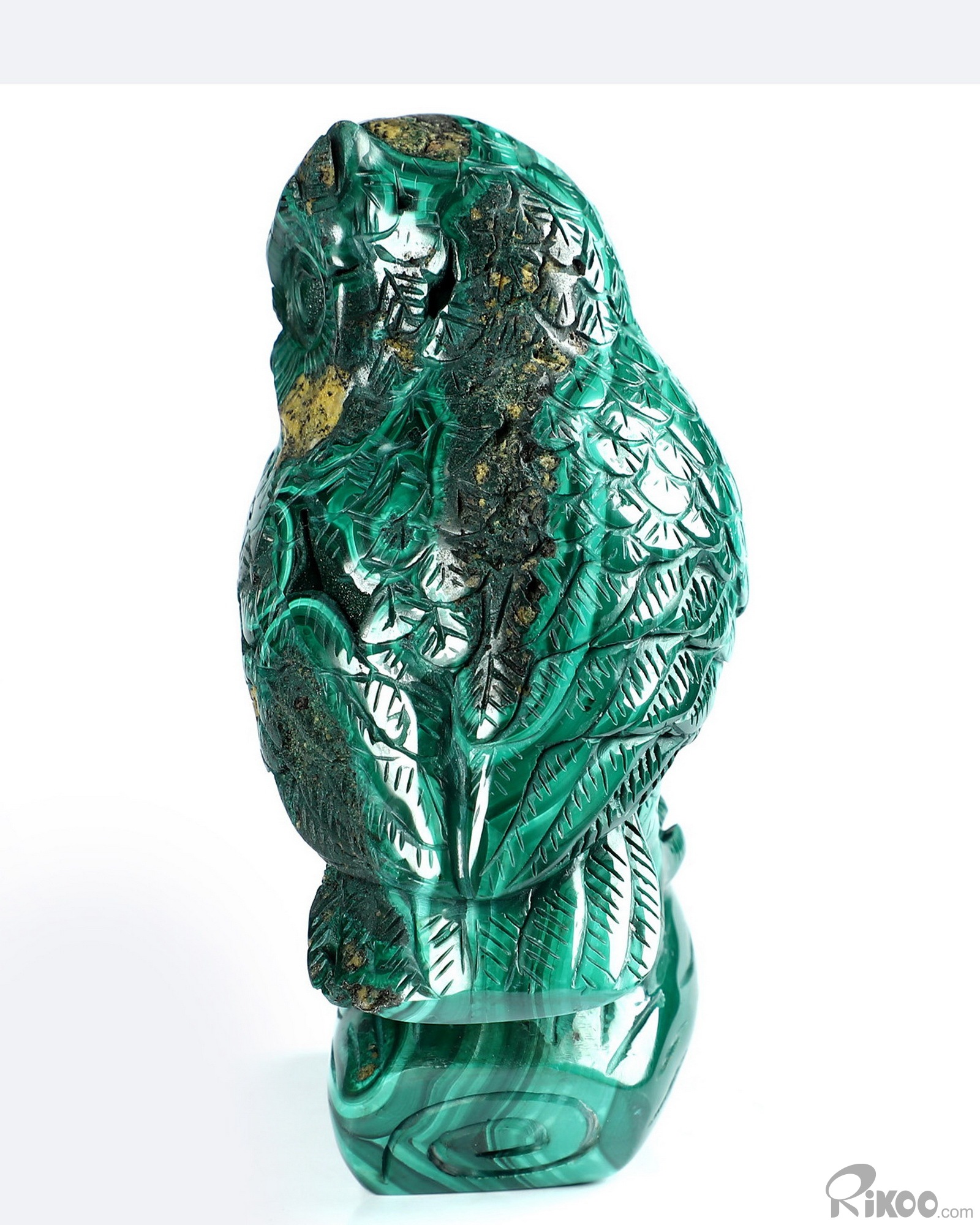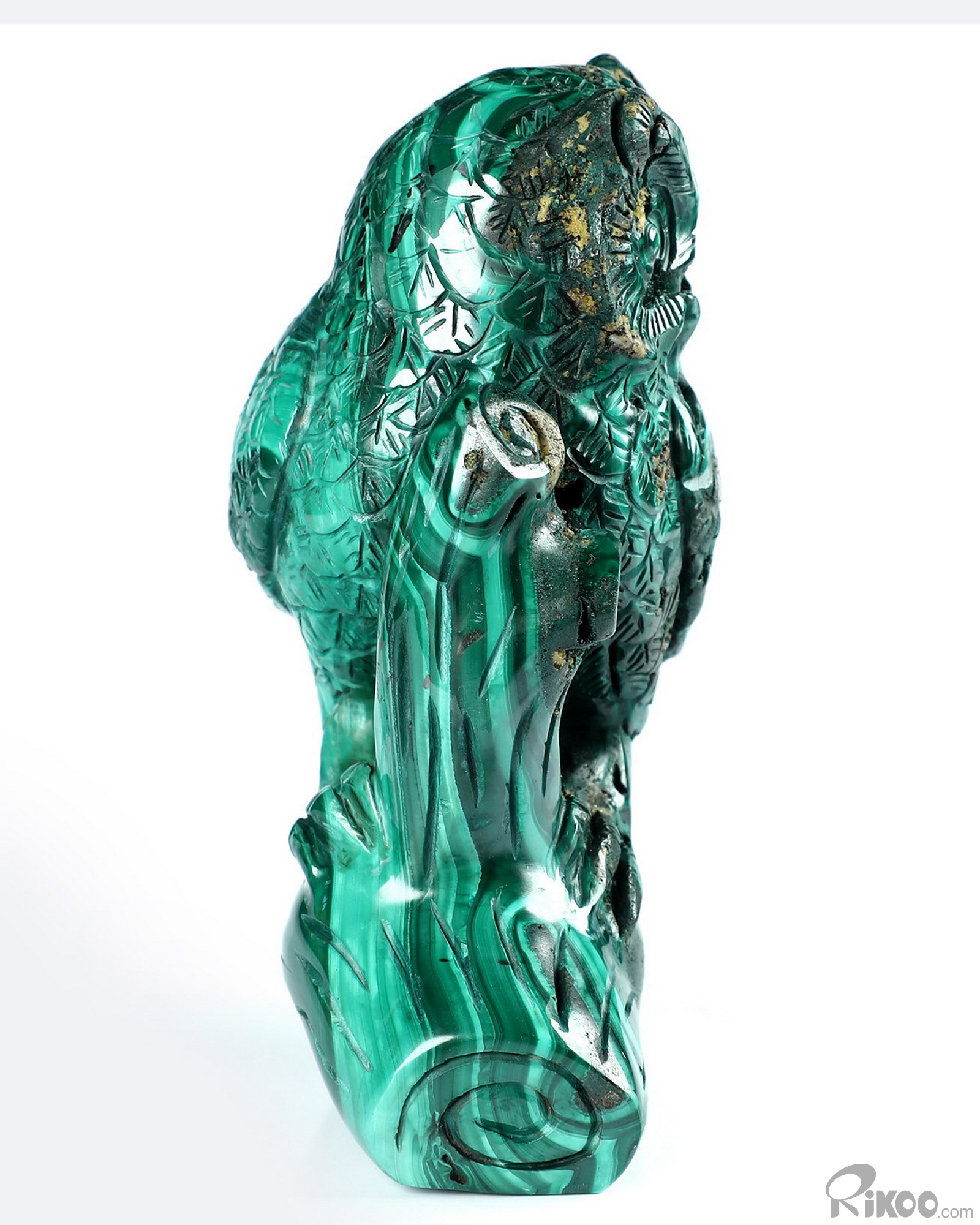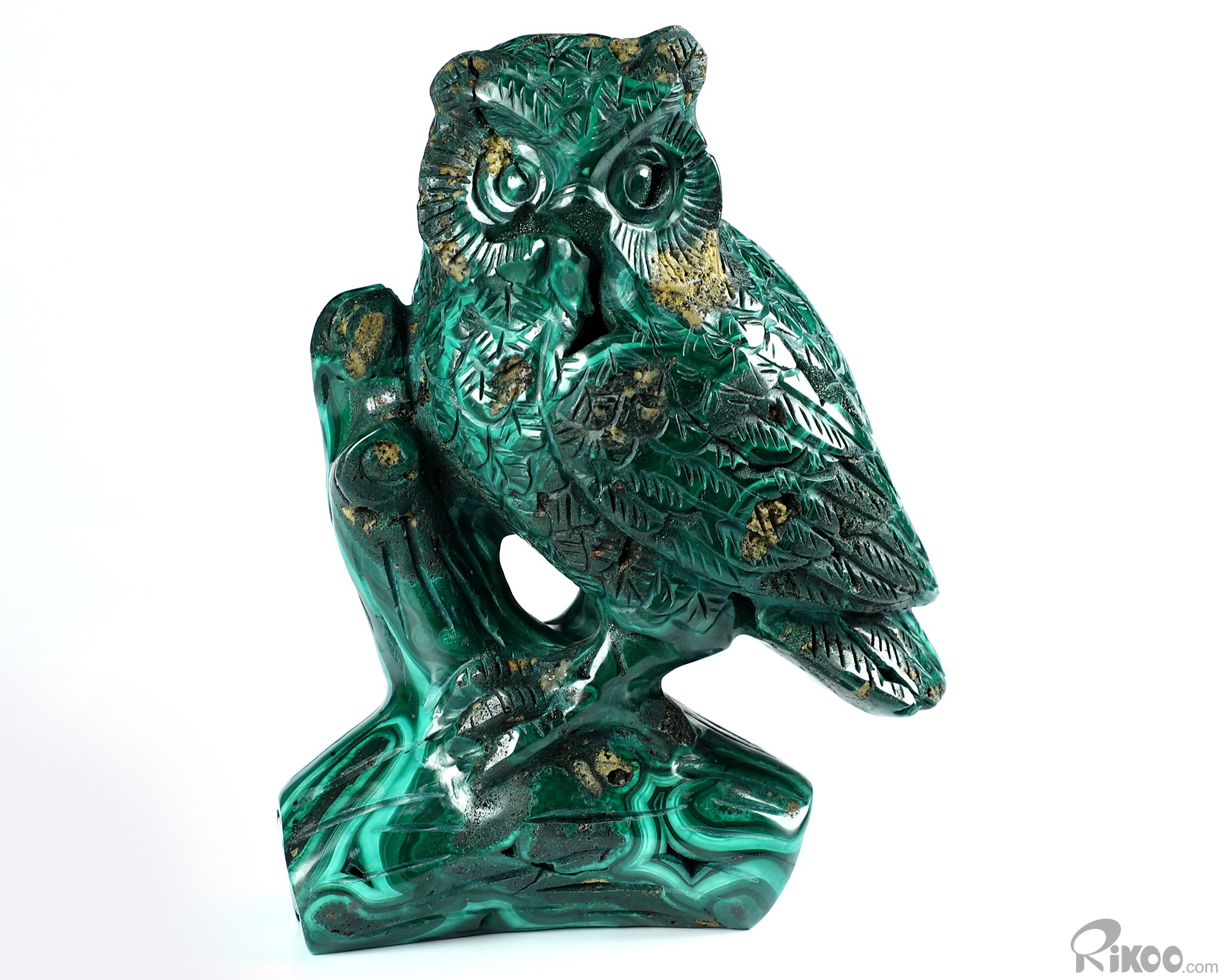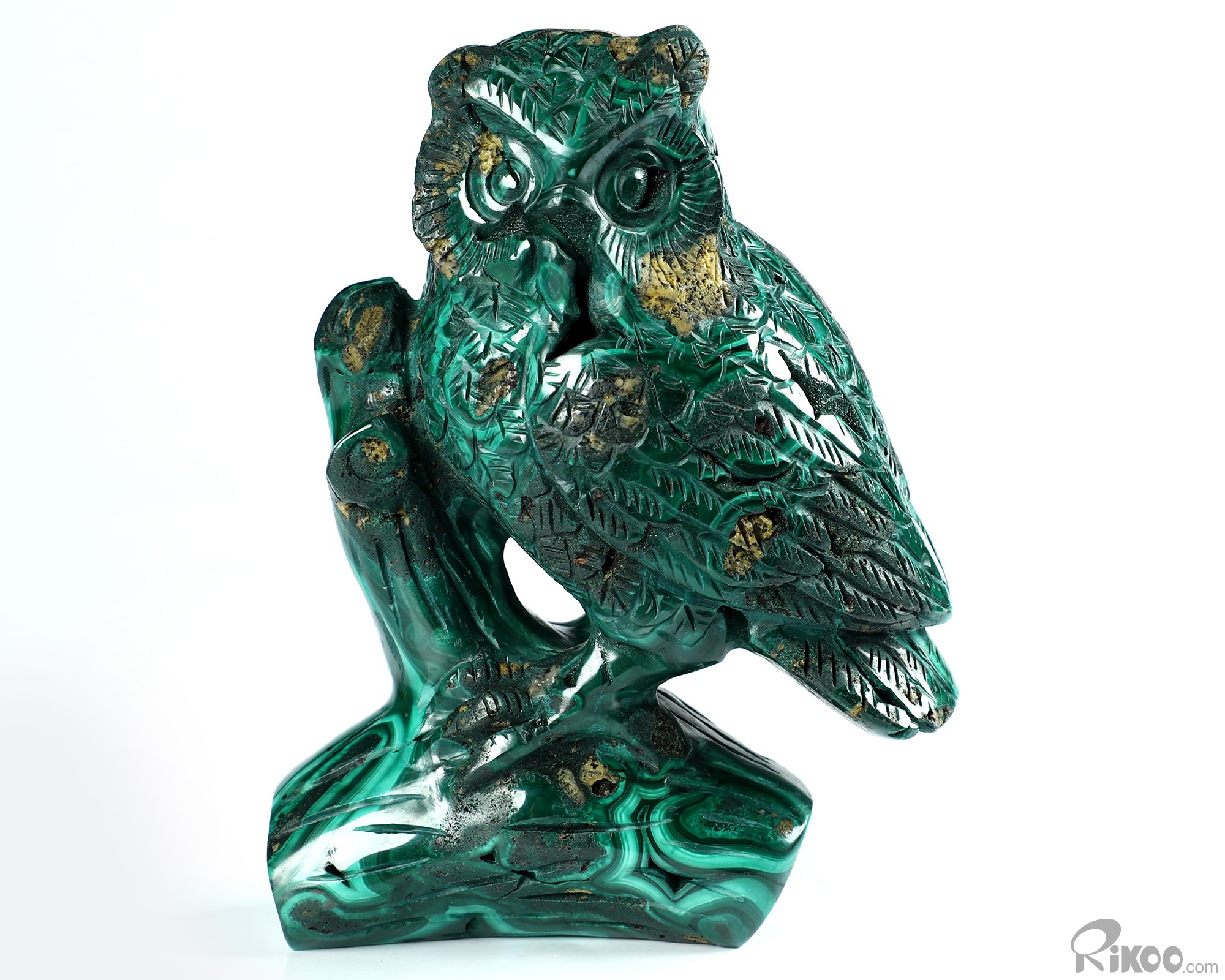 4.6" Malachite Carved Crystal Owl Sculpture, Realistic