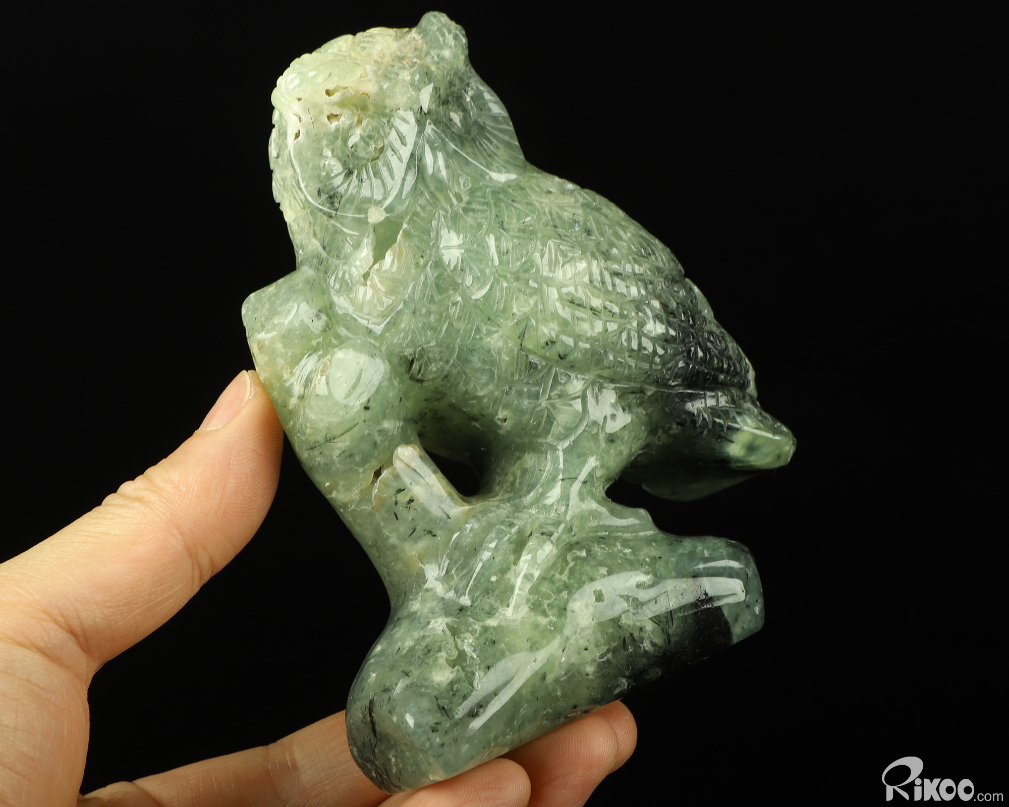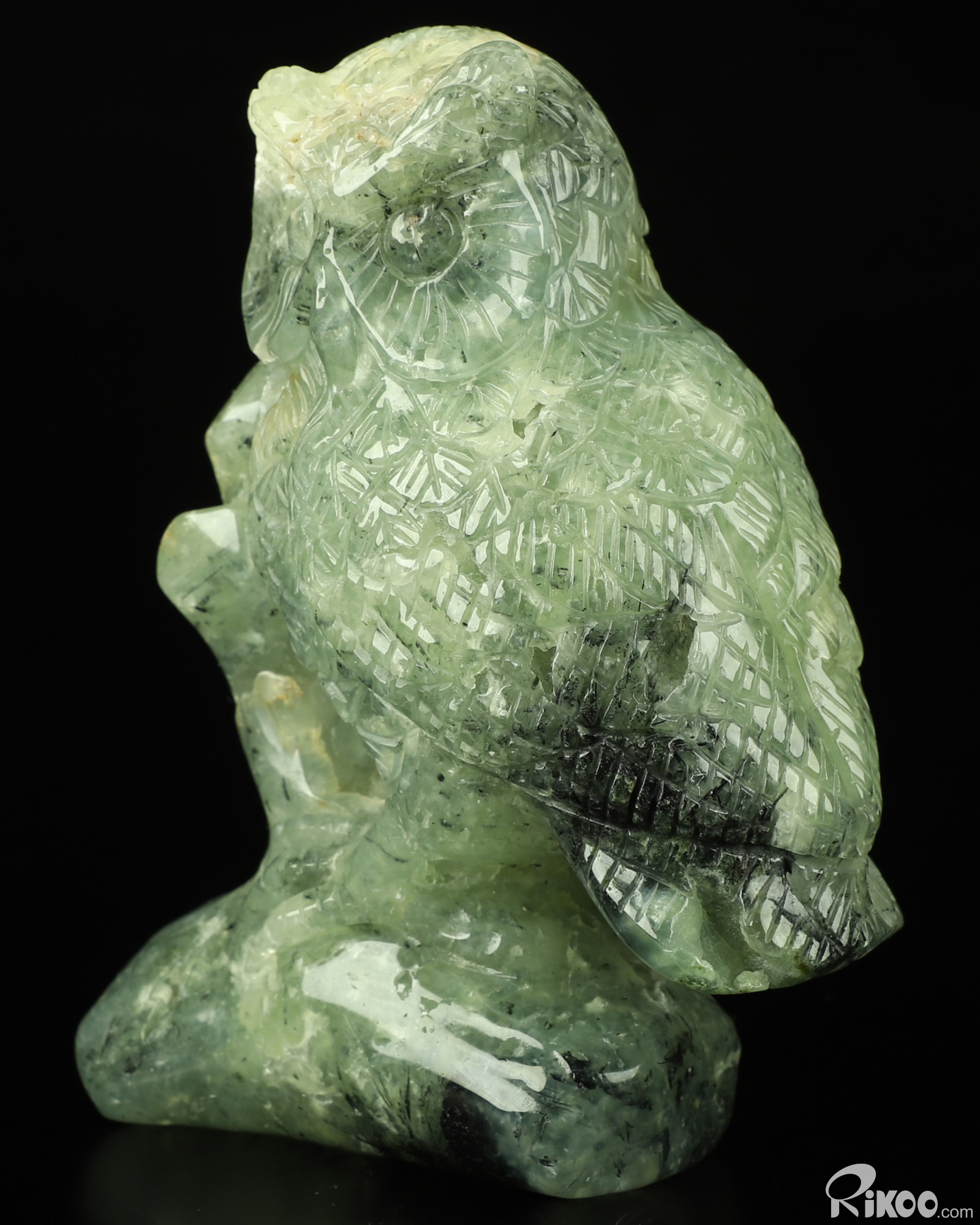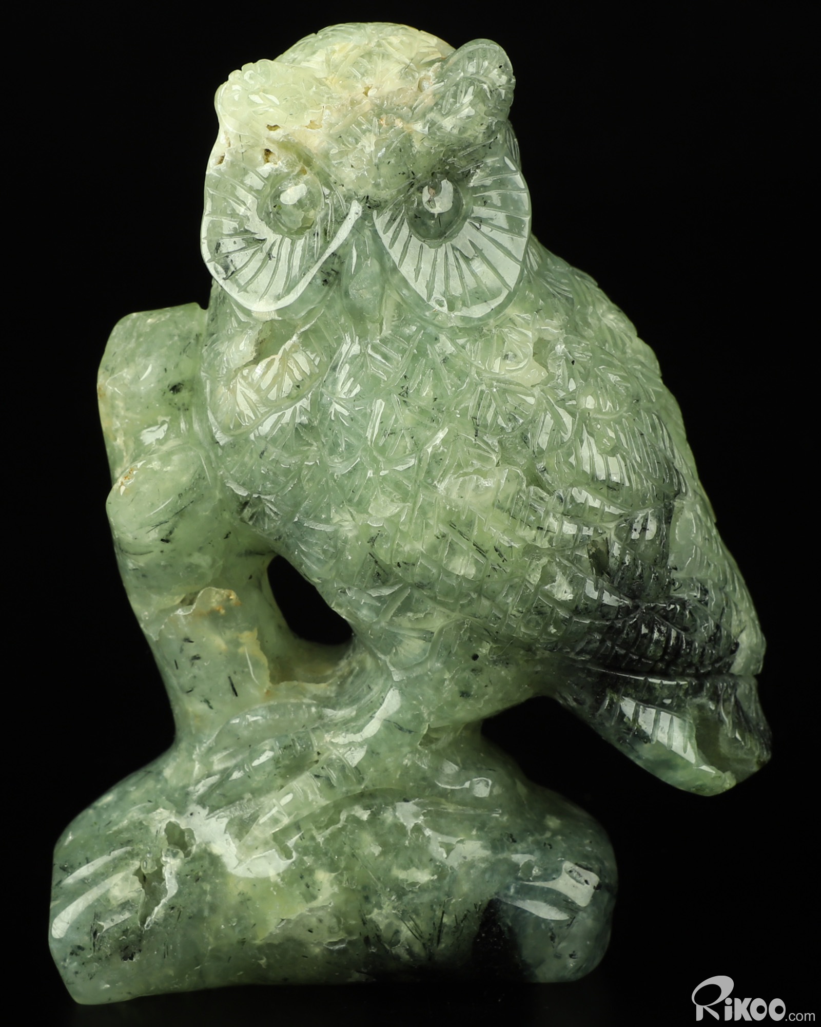 4.6" Prehnite Carved Crystal Owl Sculpture, Realistic, Crystal Healing