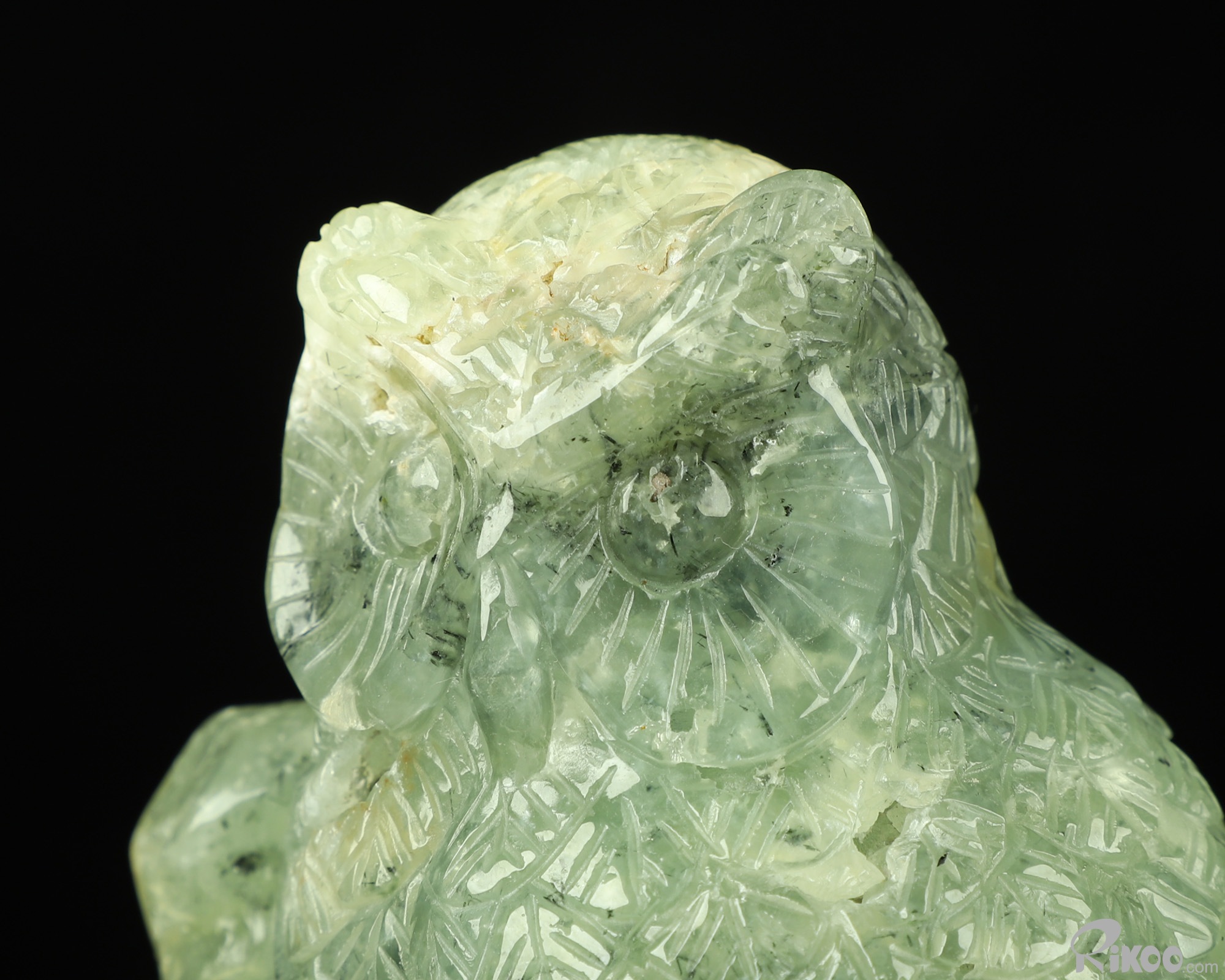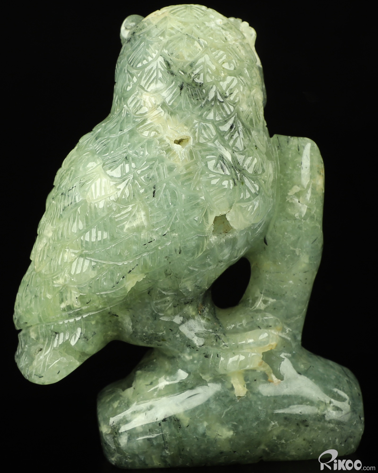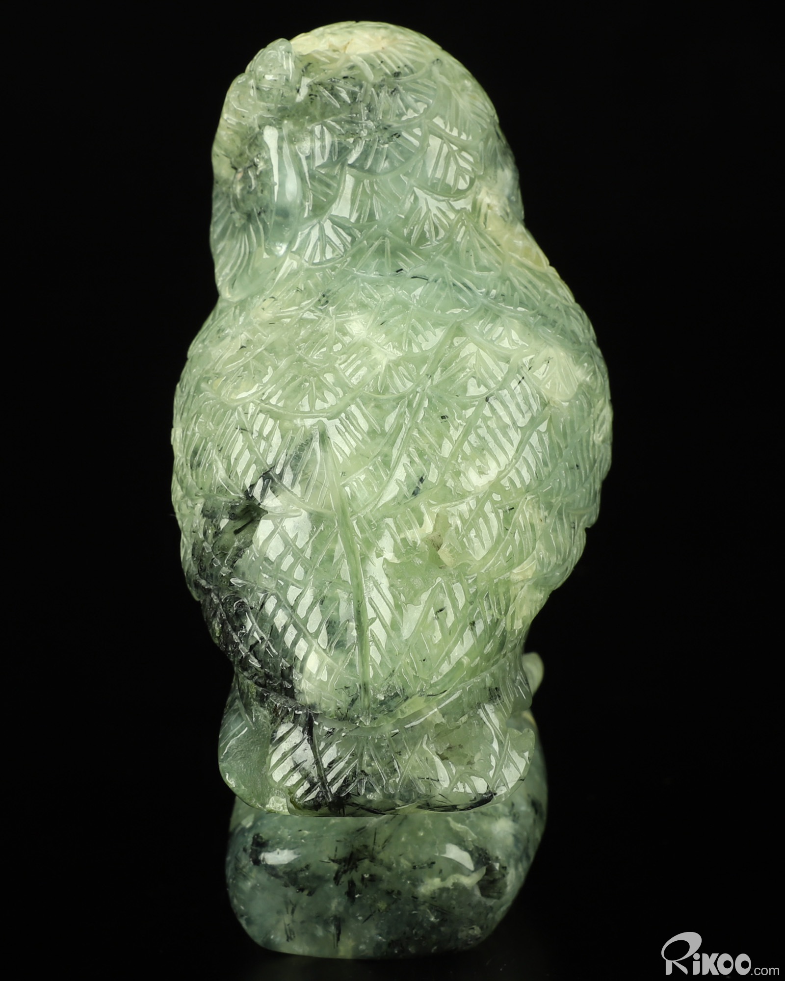 4.6" Prehnite Carved Crystal Owl Sculpture, Realistic, Crystal Healing