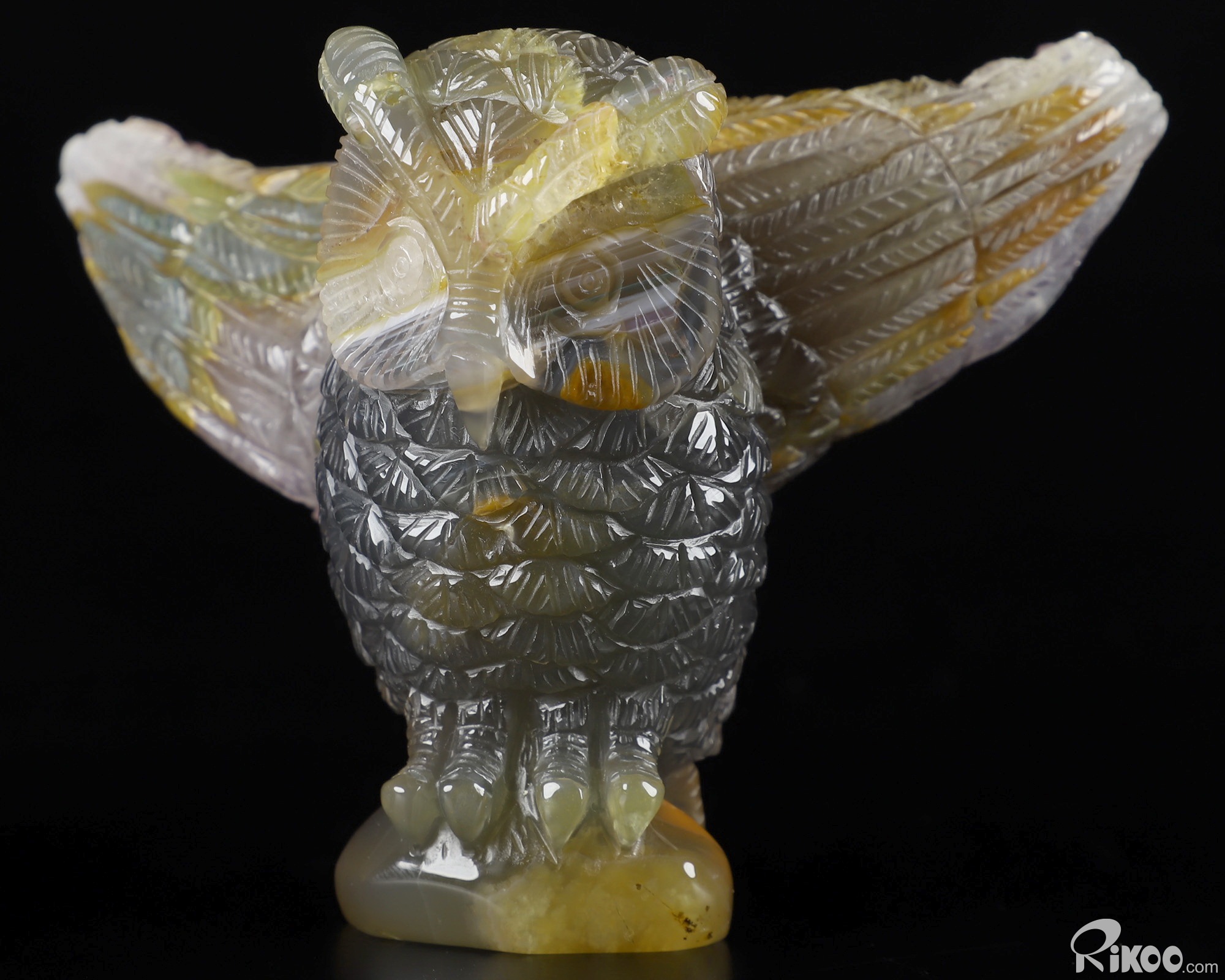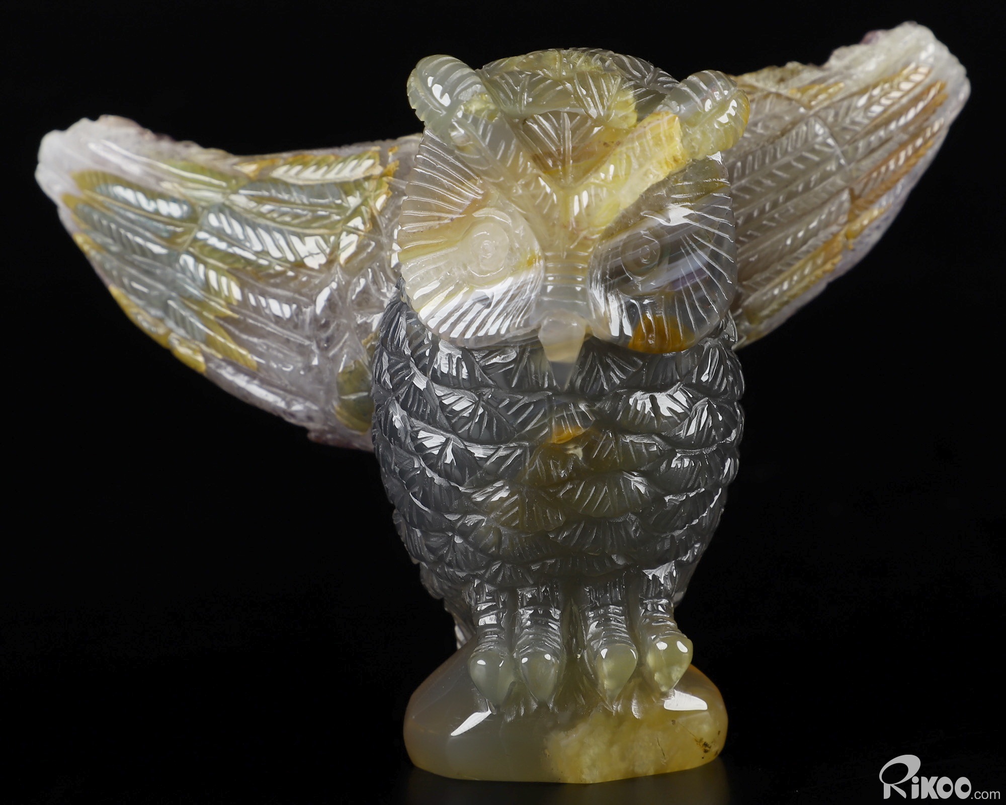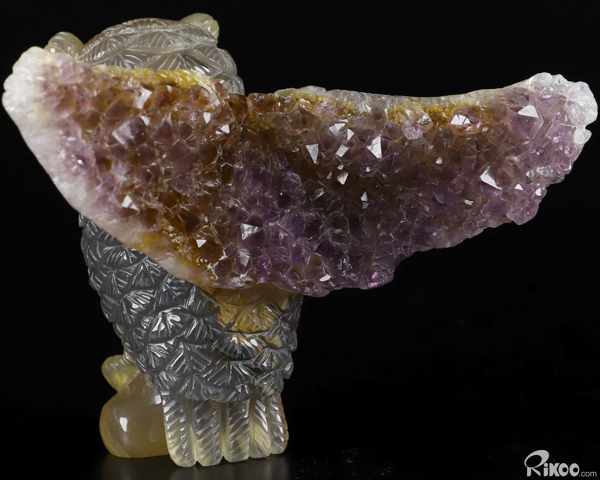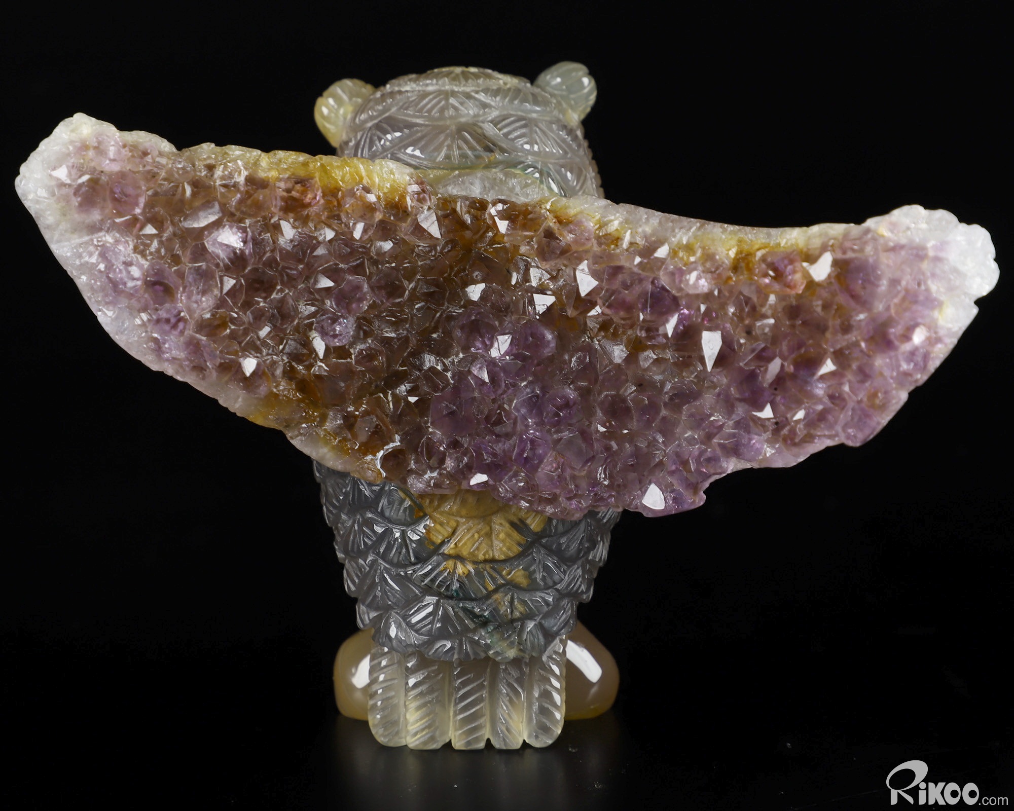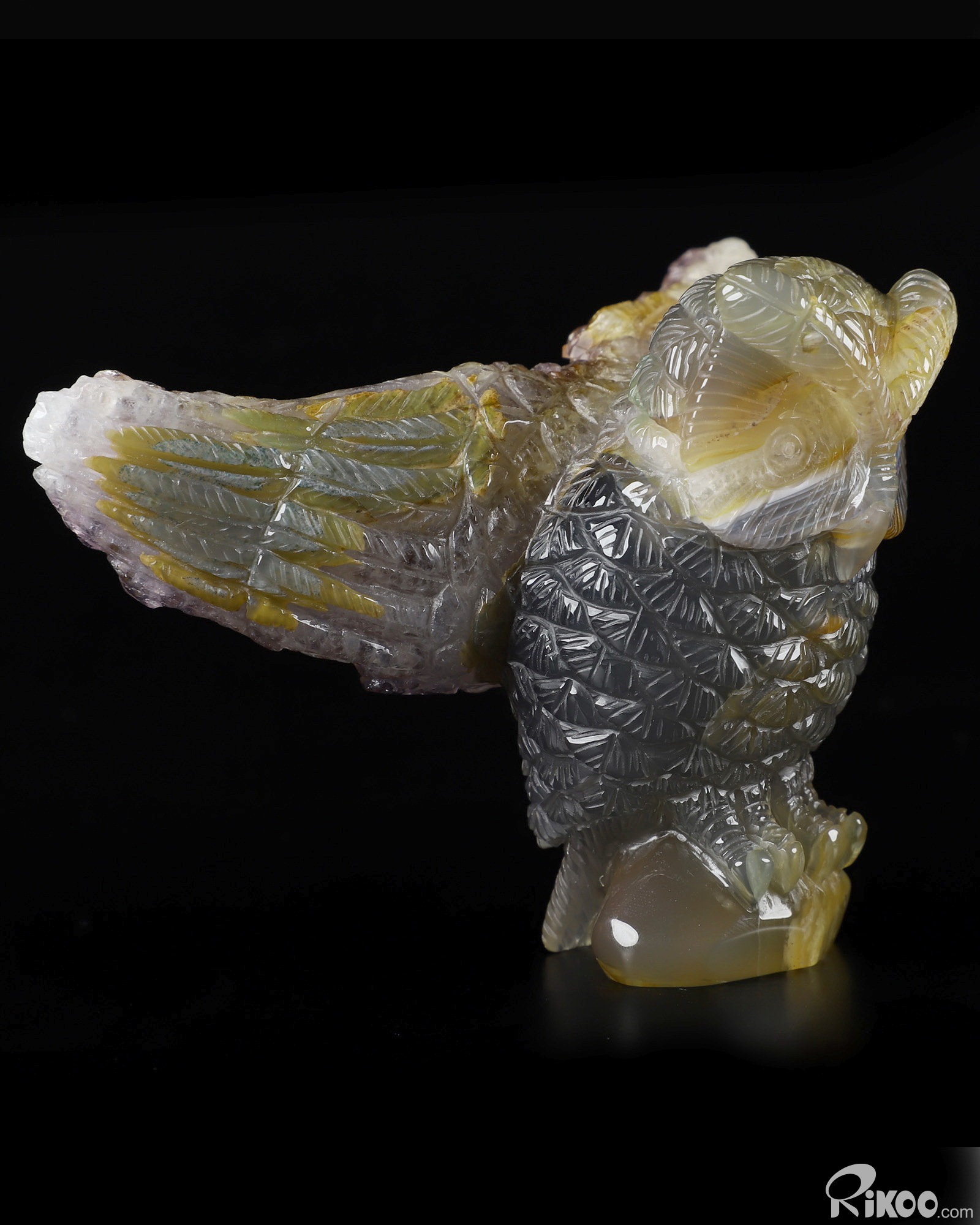 4.7" Amethyst & Agate Carved Crystal Owl, Realistic, Crystal Healing