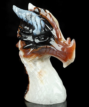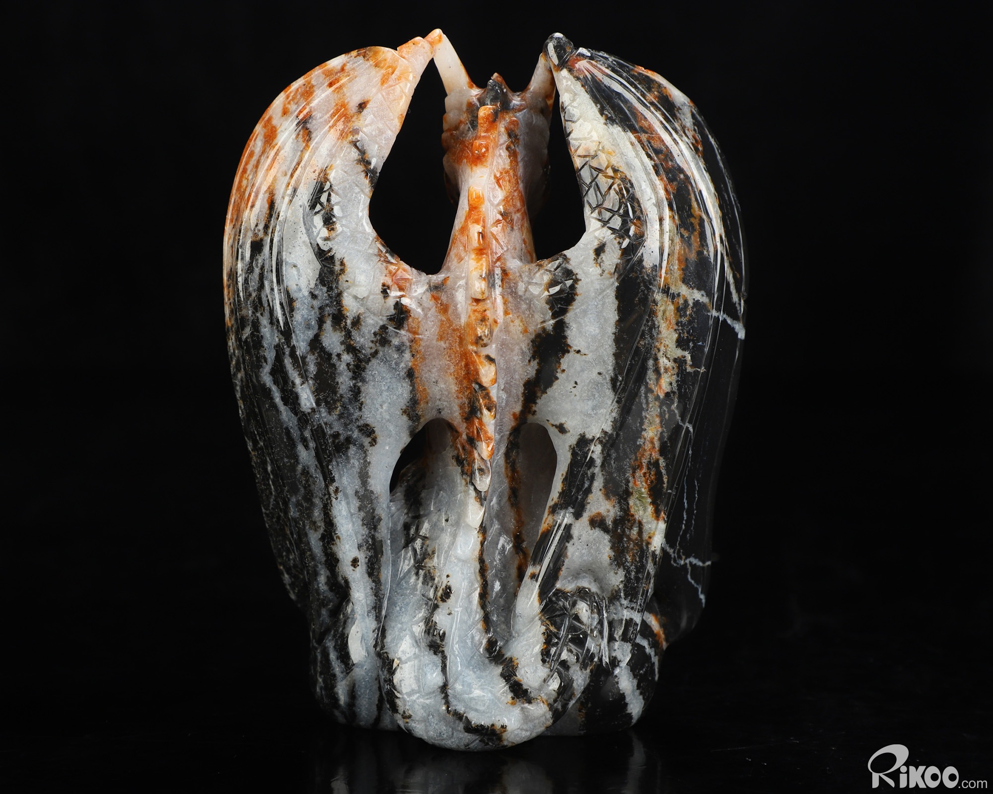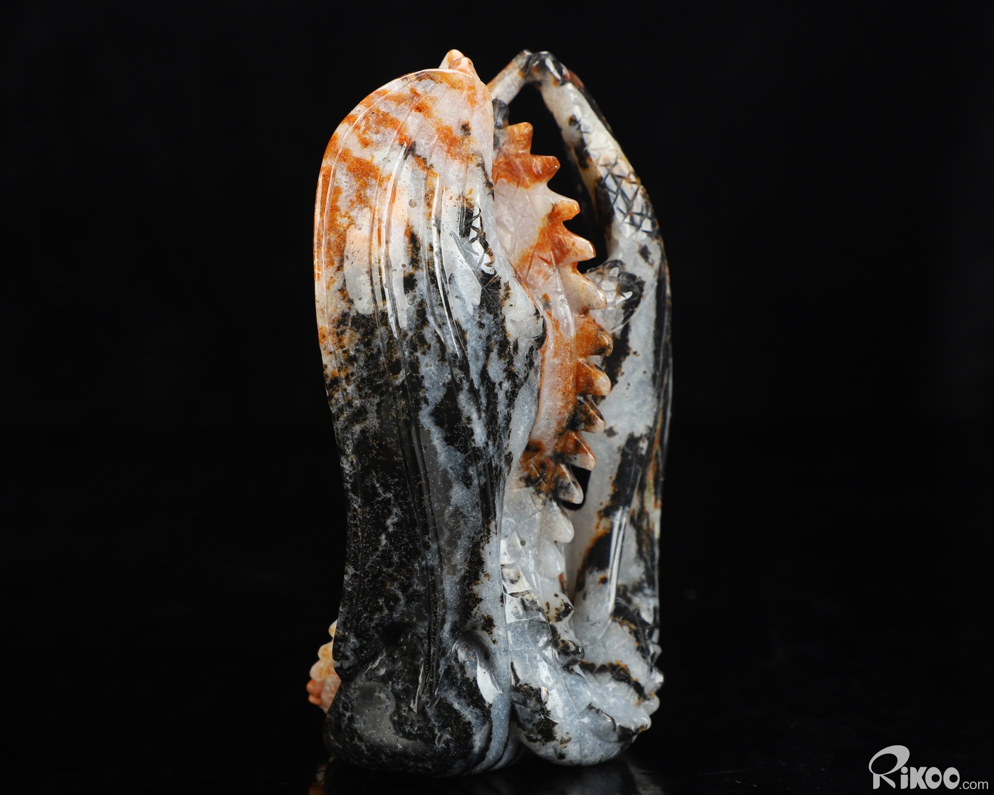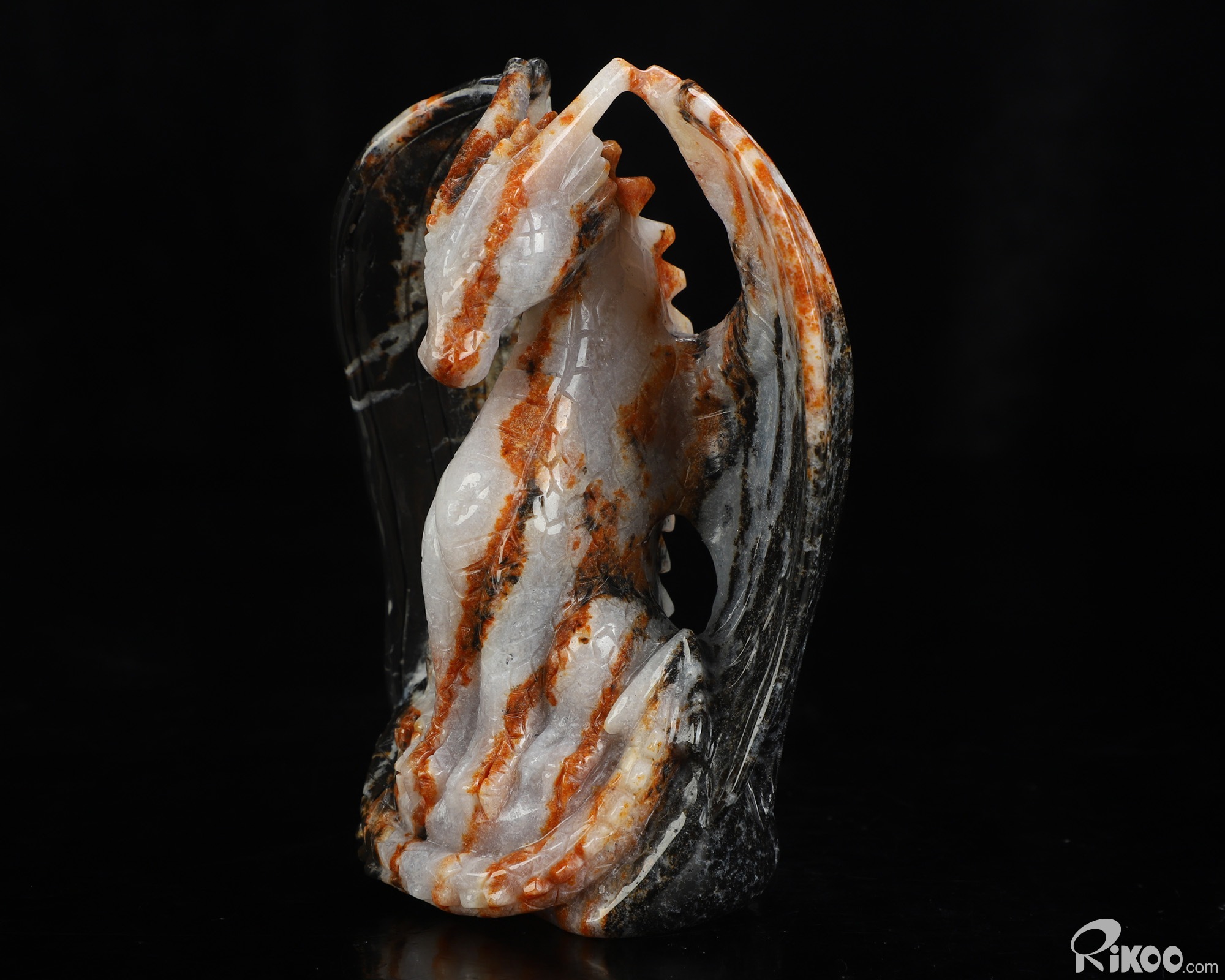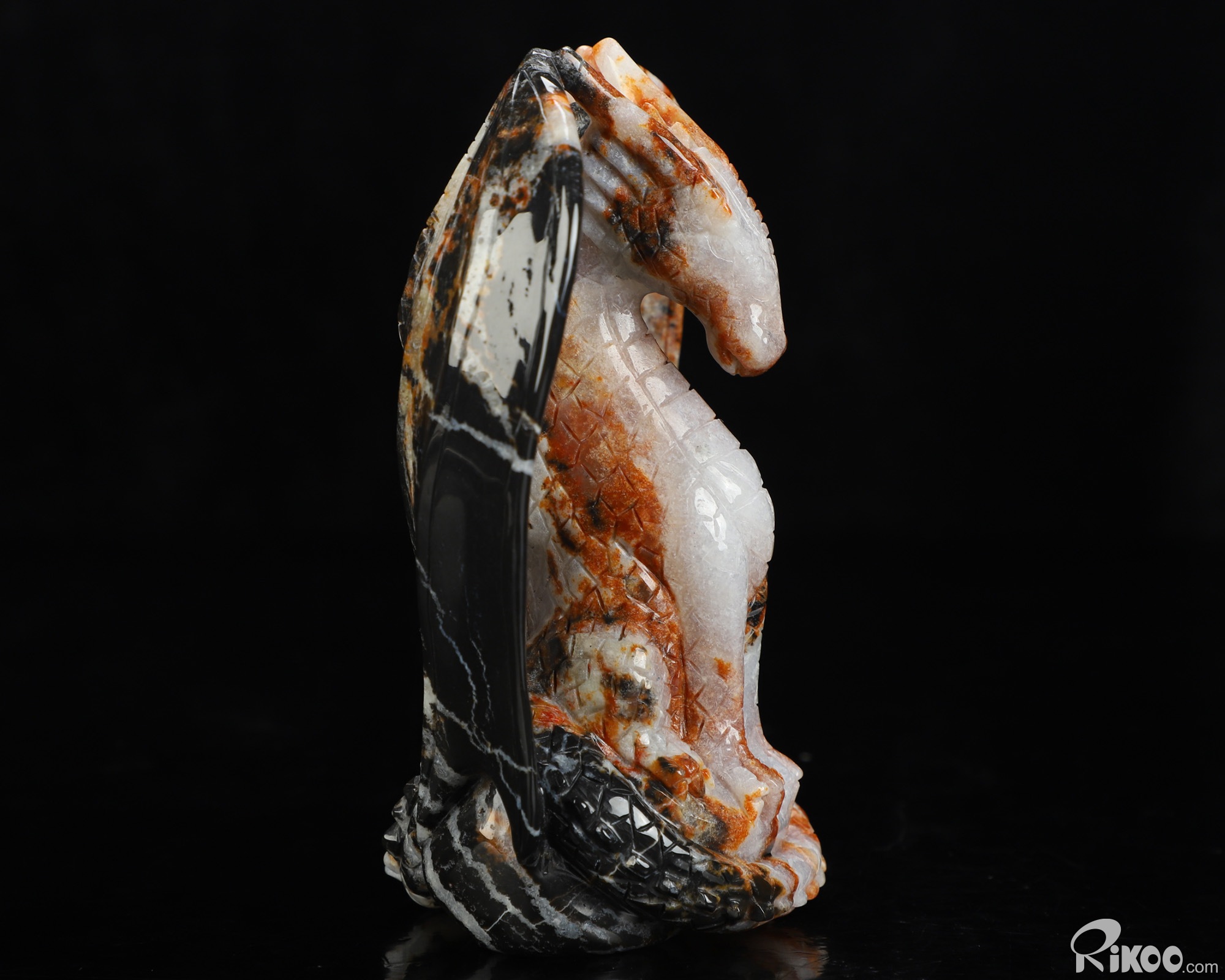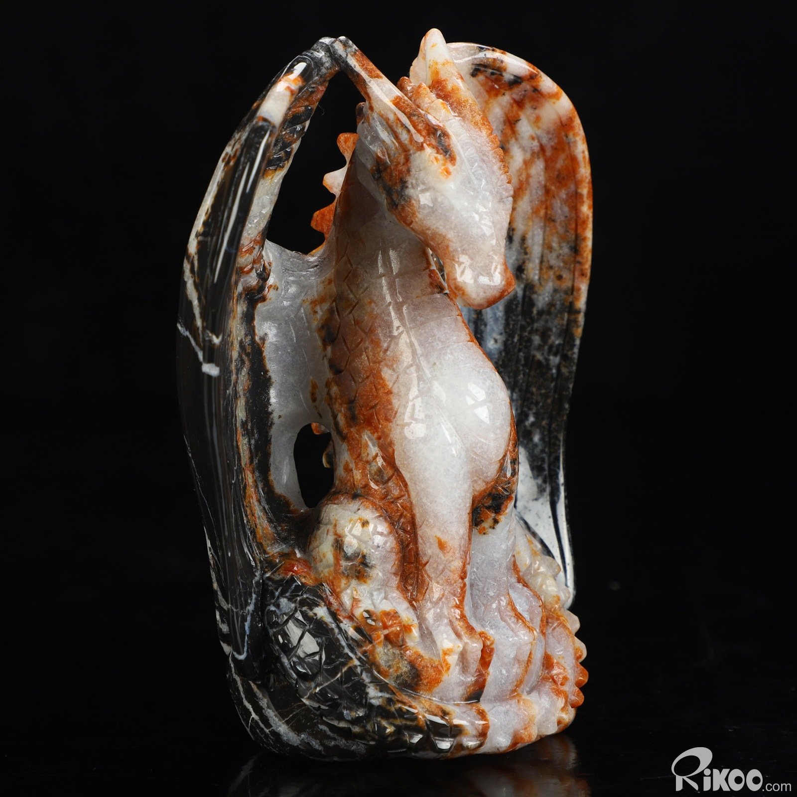 4.7" Black Zebra Agate Hand Carved Crystal Dragon Sculpture, Crystal Healing