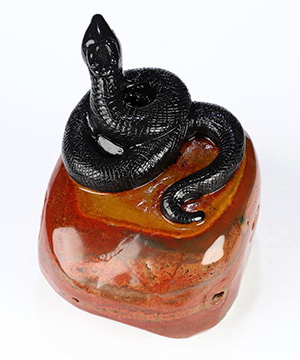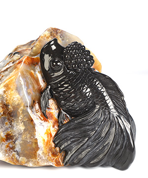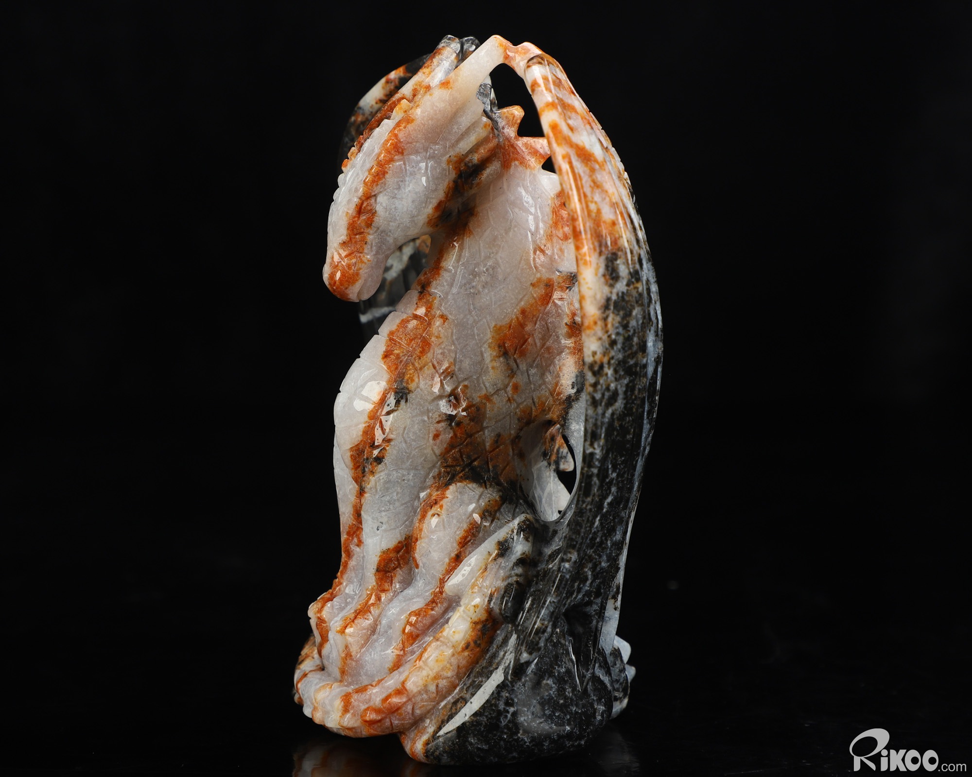 You are looking at a Black Zebra Agate sculpture. The sculpture is 4.7 inches long.