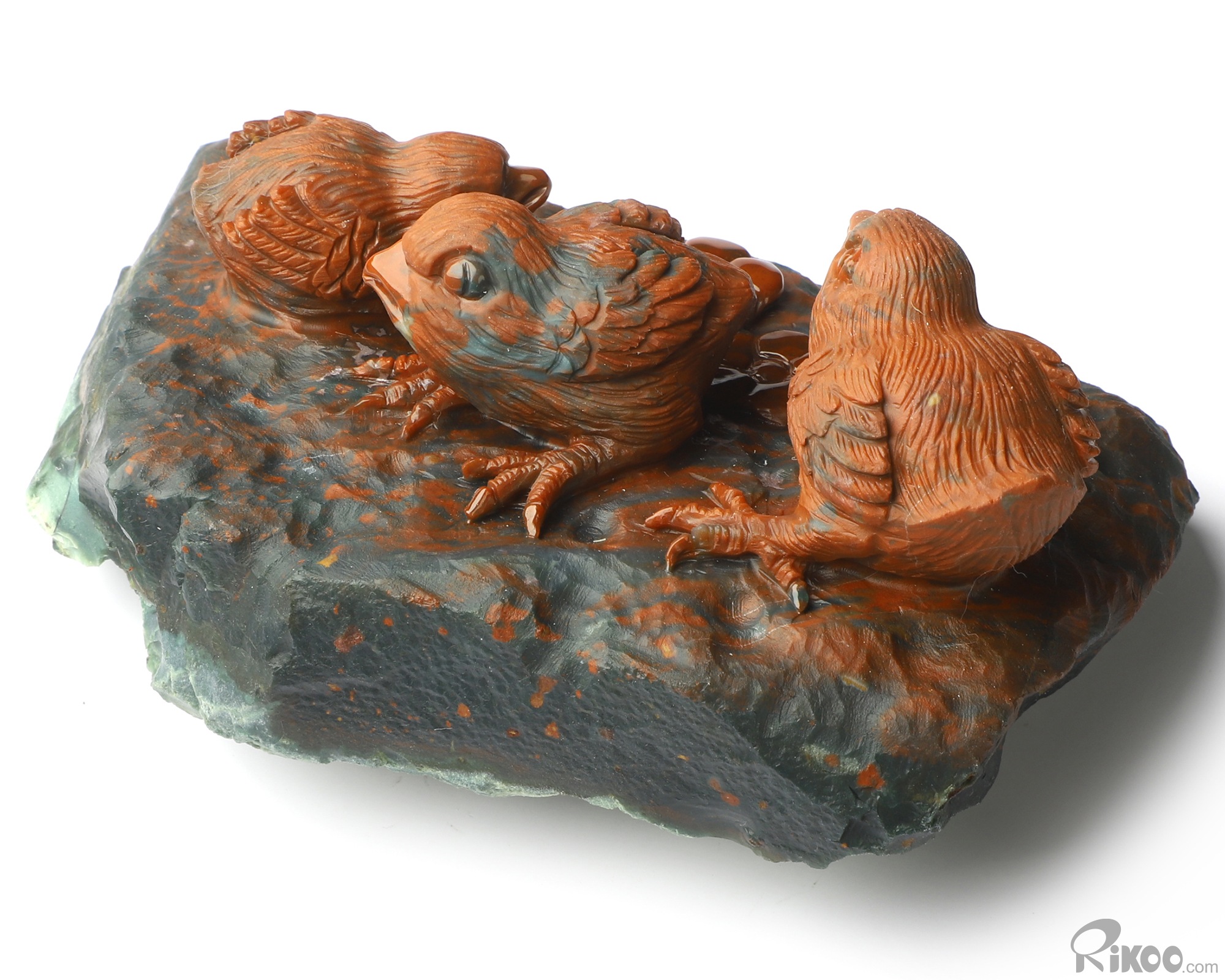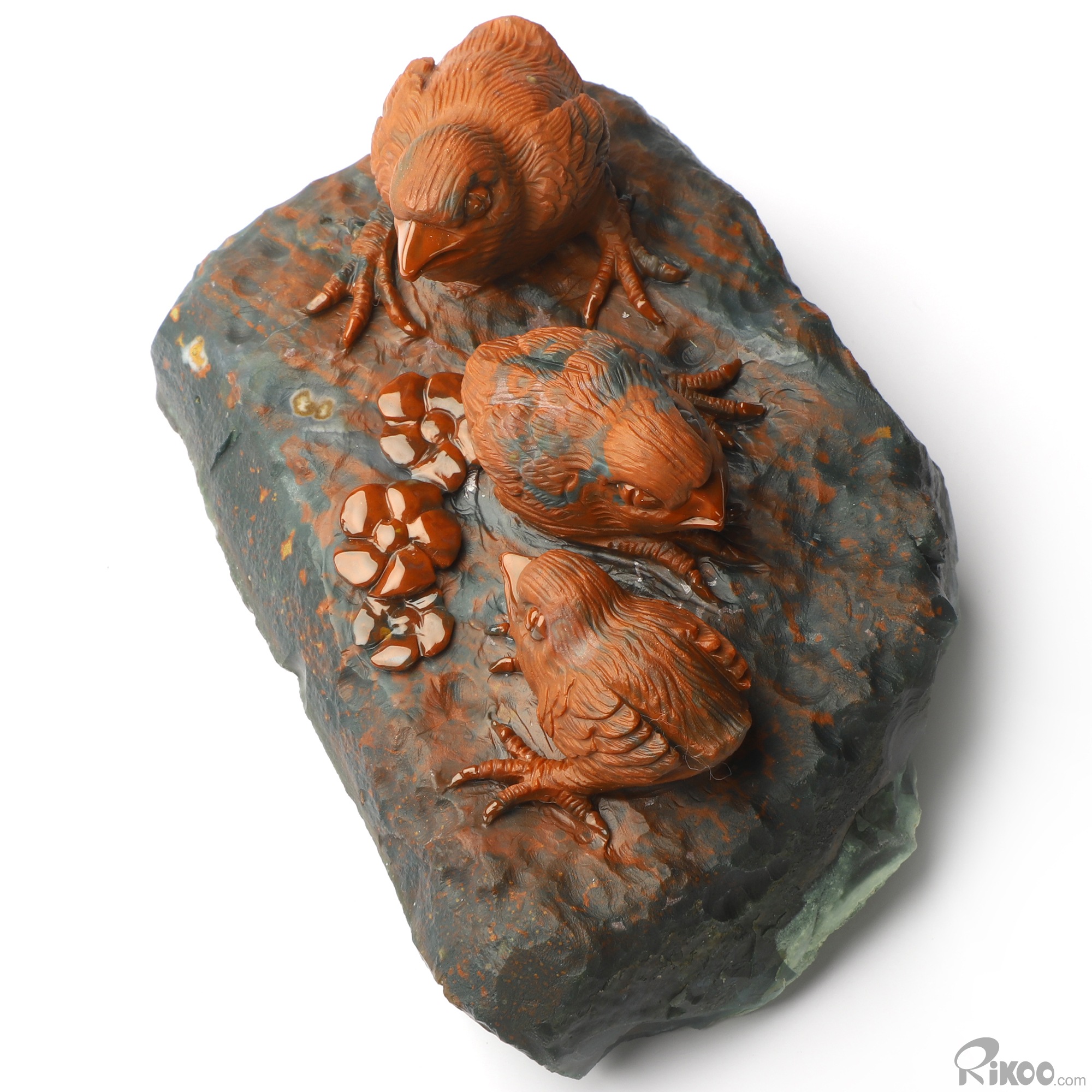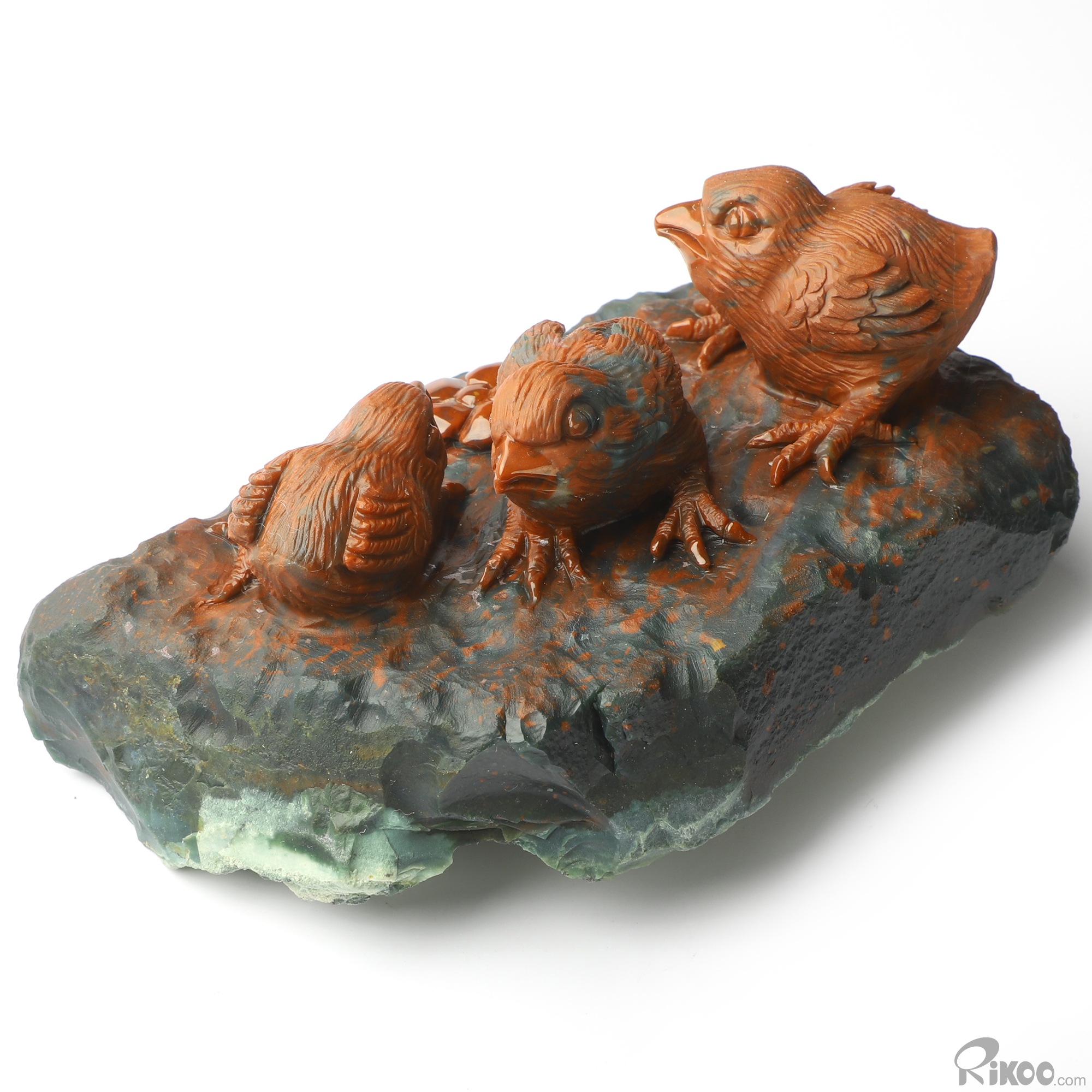 4.7" Bloodstone Hand Carved Crystal Birds Sculpture, Crystal Healing