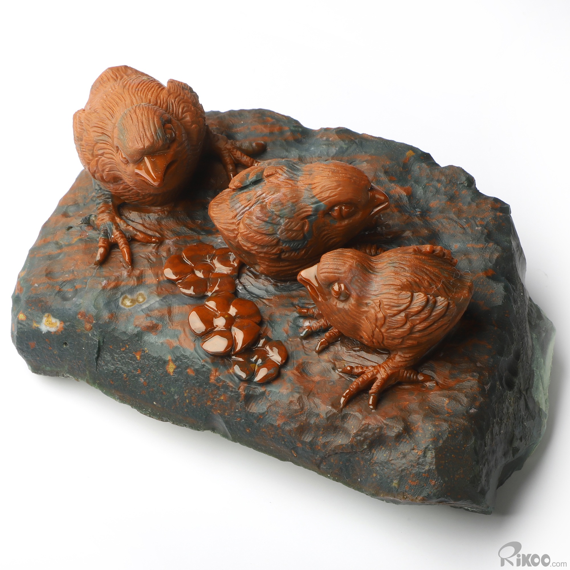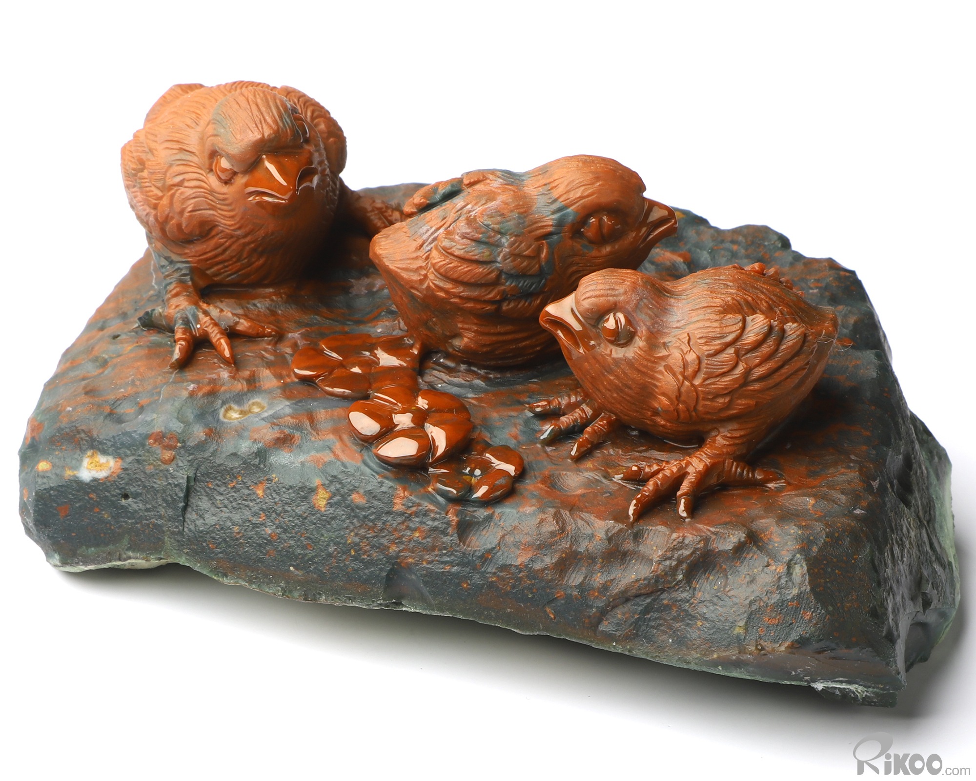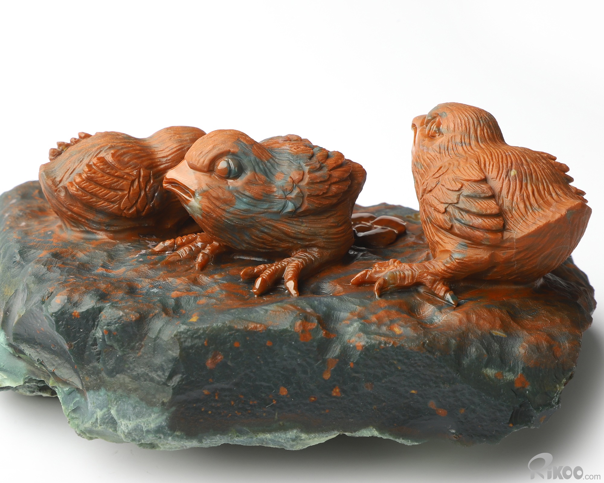4.7" Bloodstone Hand Carved Crystal Birds Sculpture, Crystal Healing
