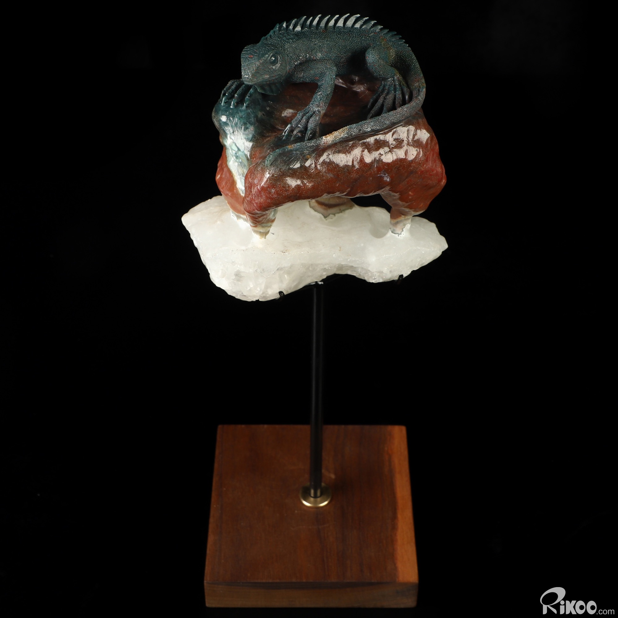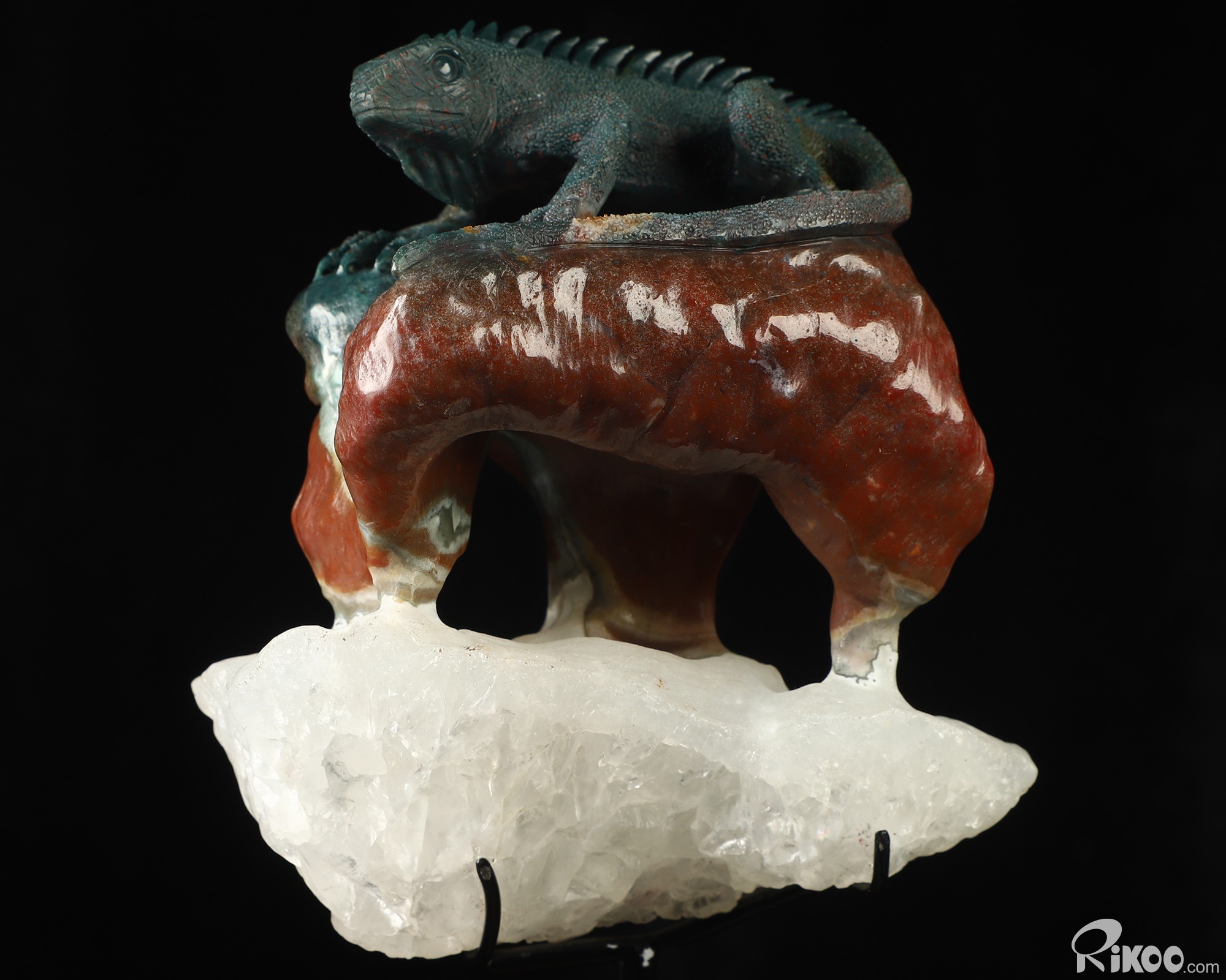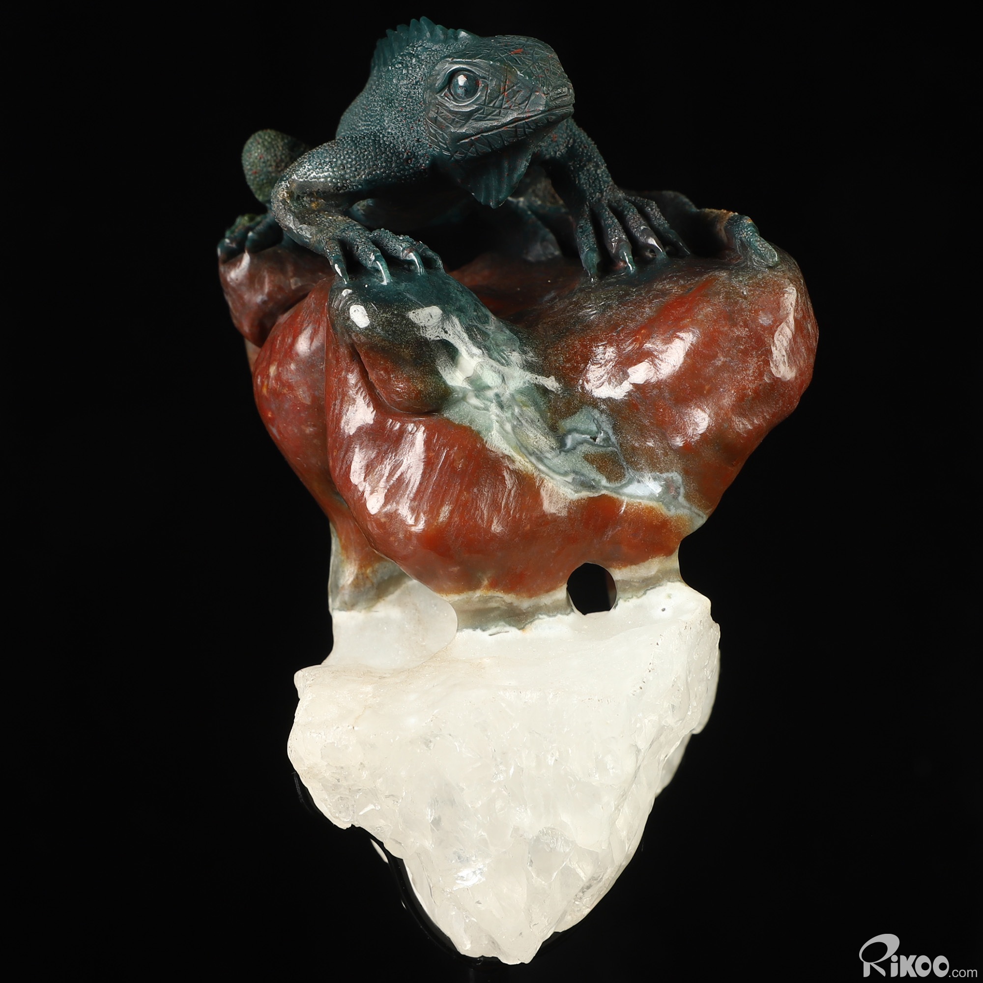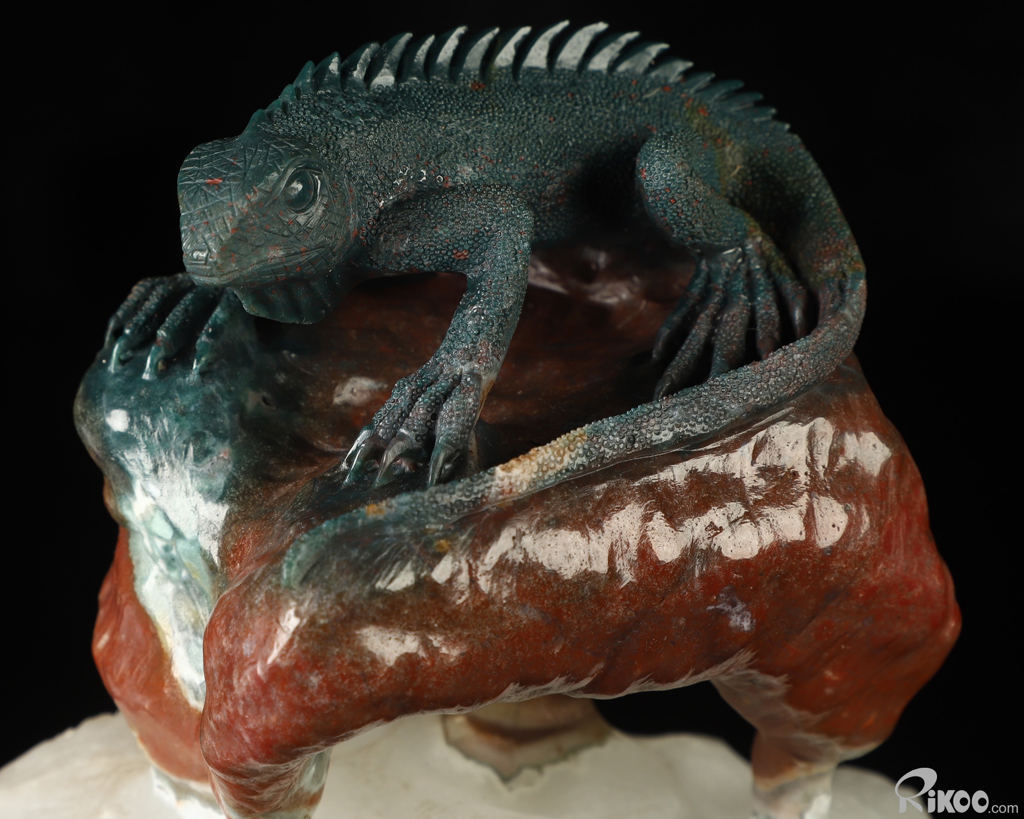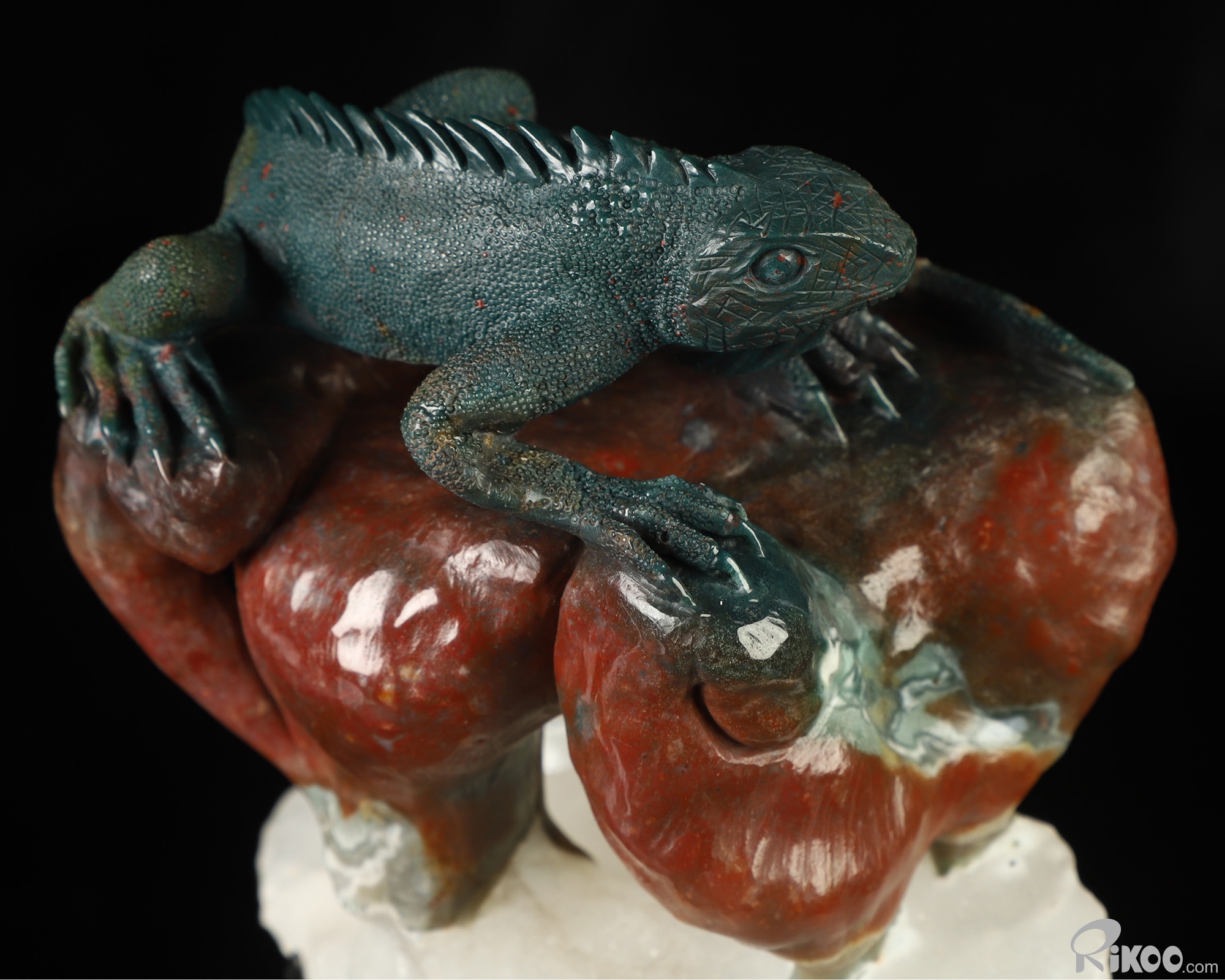 4.7" Bloodstone Hand Carved Crystal Lizard Sculpture, Crystal Healing
