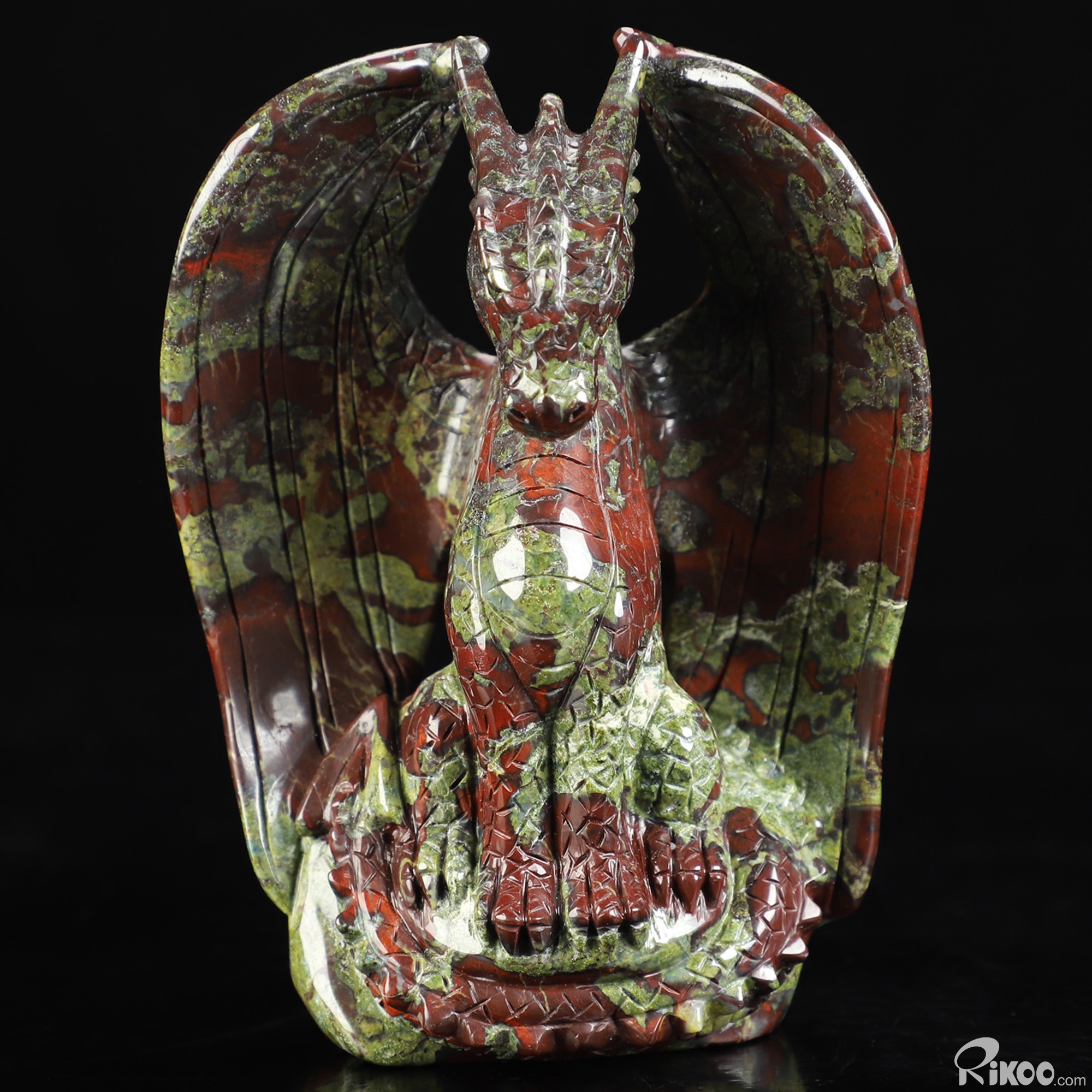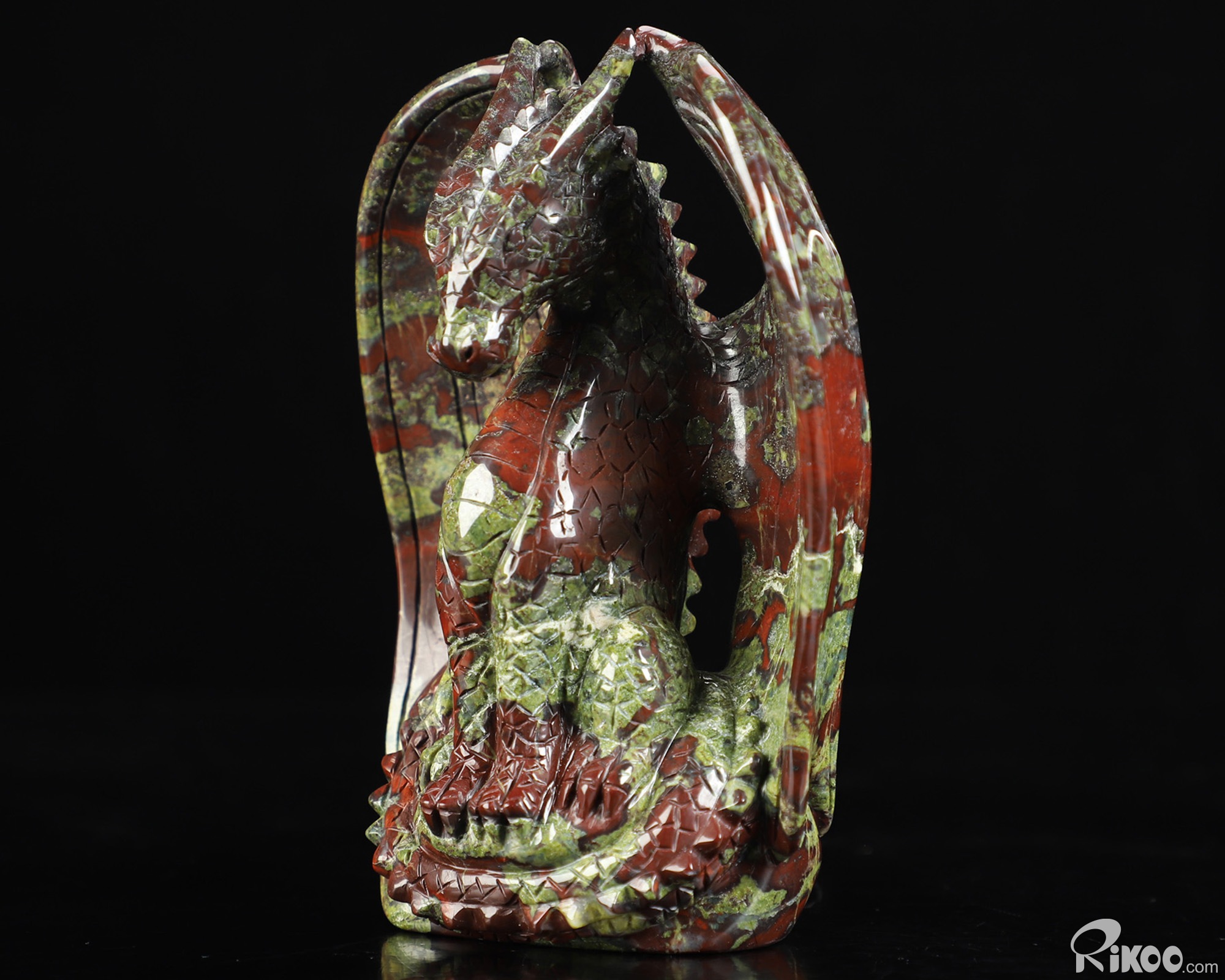 4.7" Dragon Blood Jasper Hand Carved Crystal Dragon Sculpture, Crystal Healing