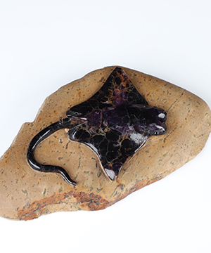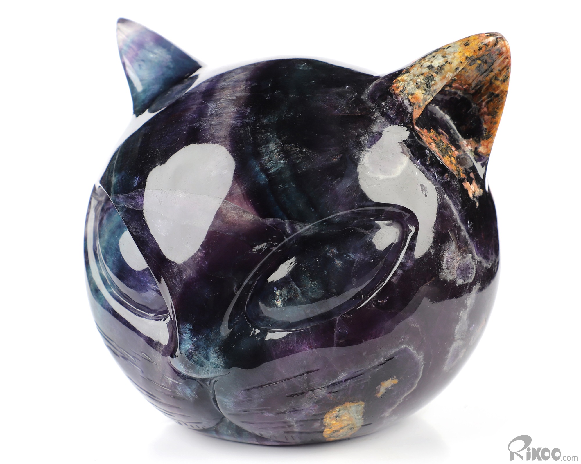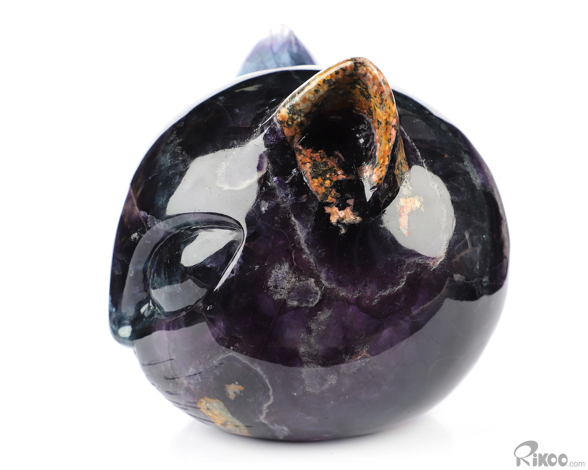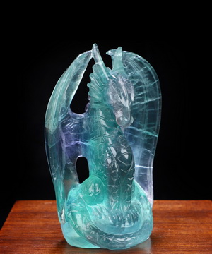 You are looking at a Fluorite sculpture. The sculpture is 4.7 inches long.