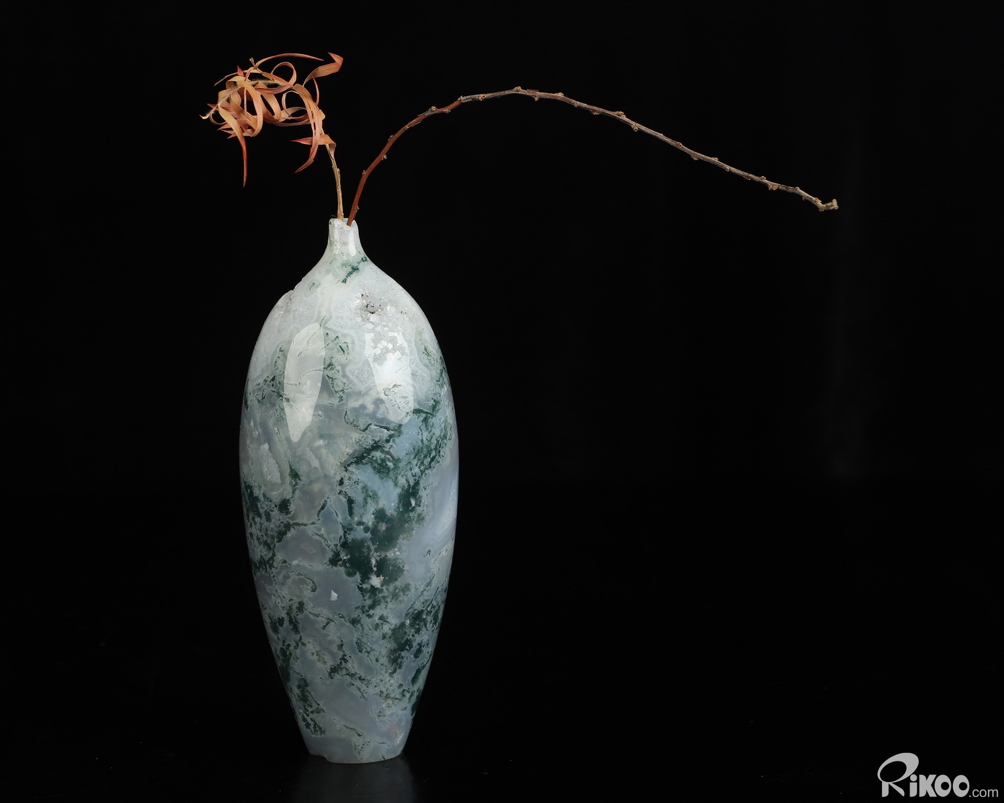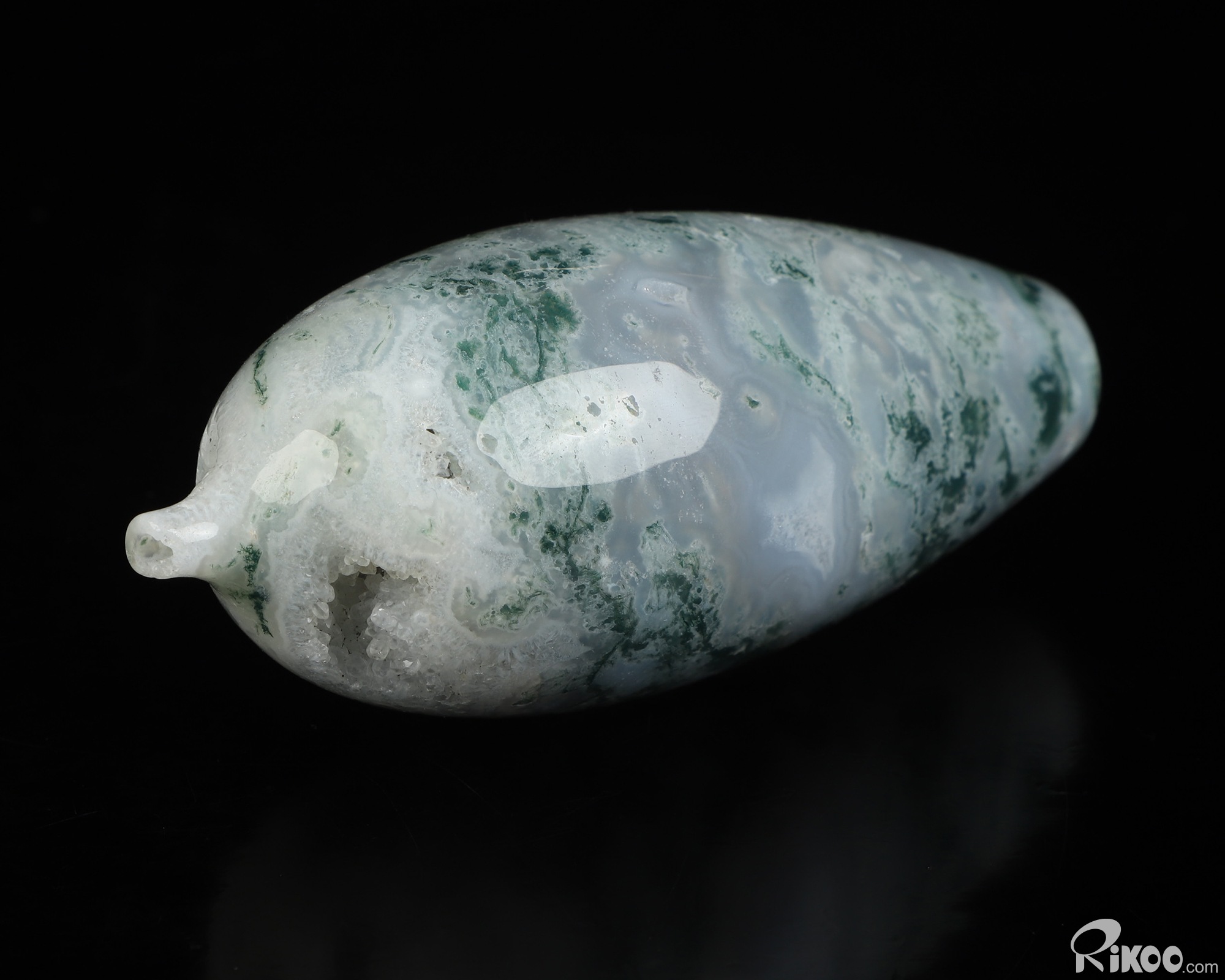 You are looking at a Green Moss Agate sculpture. The sculpture is 4.7 inches long.