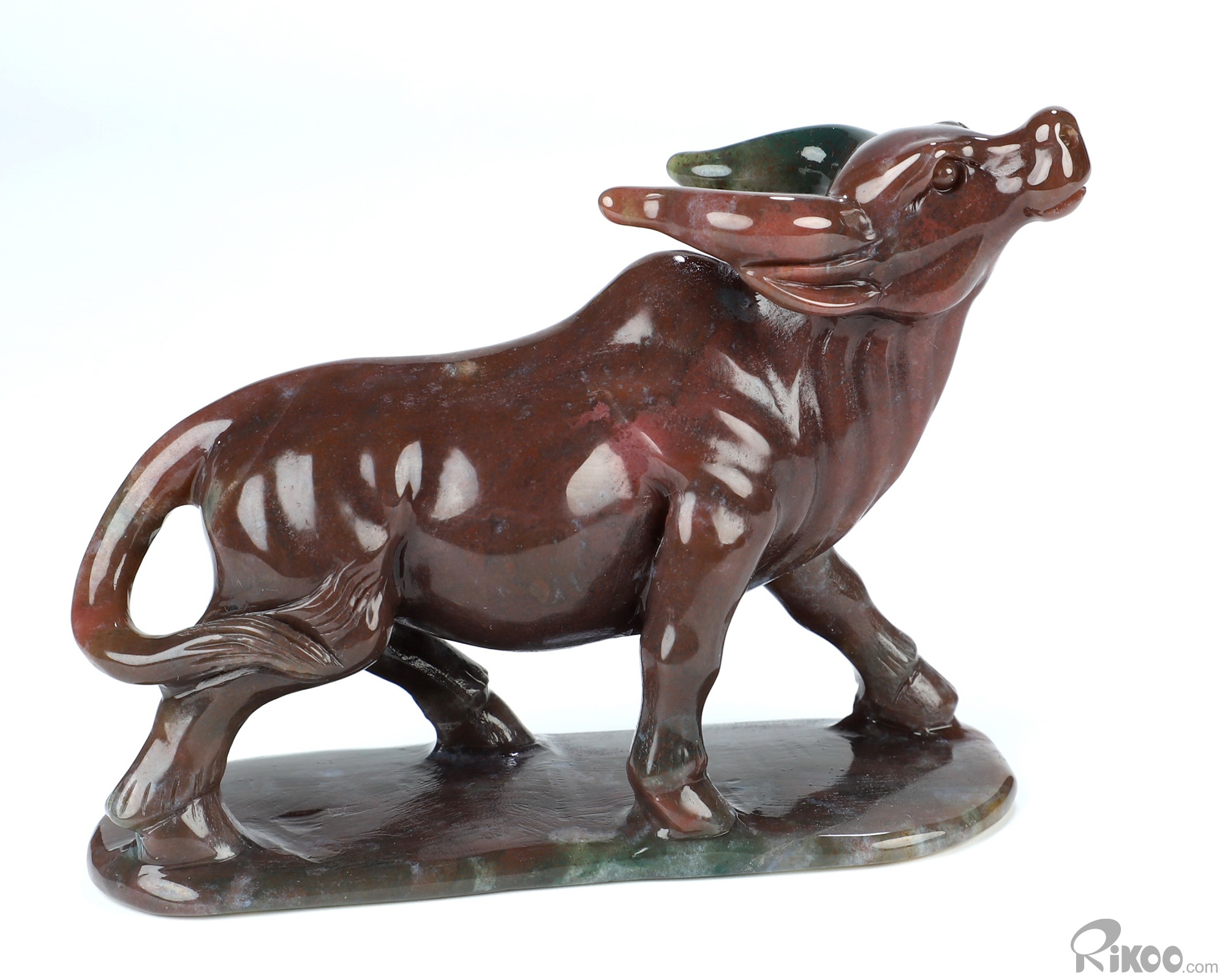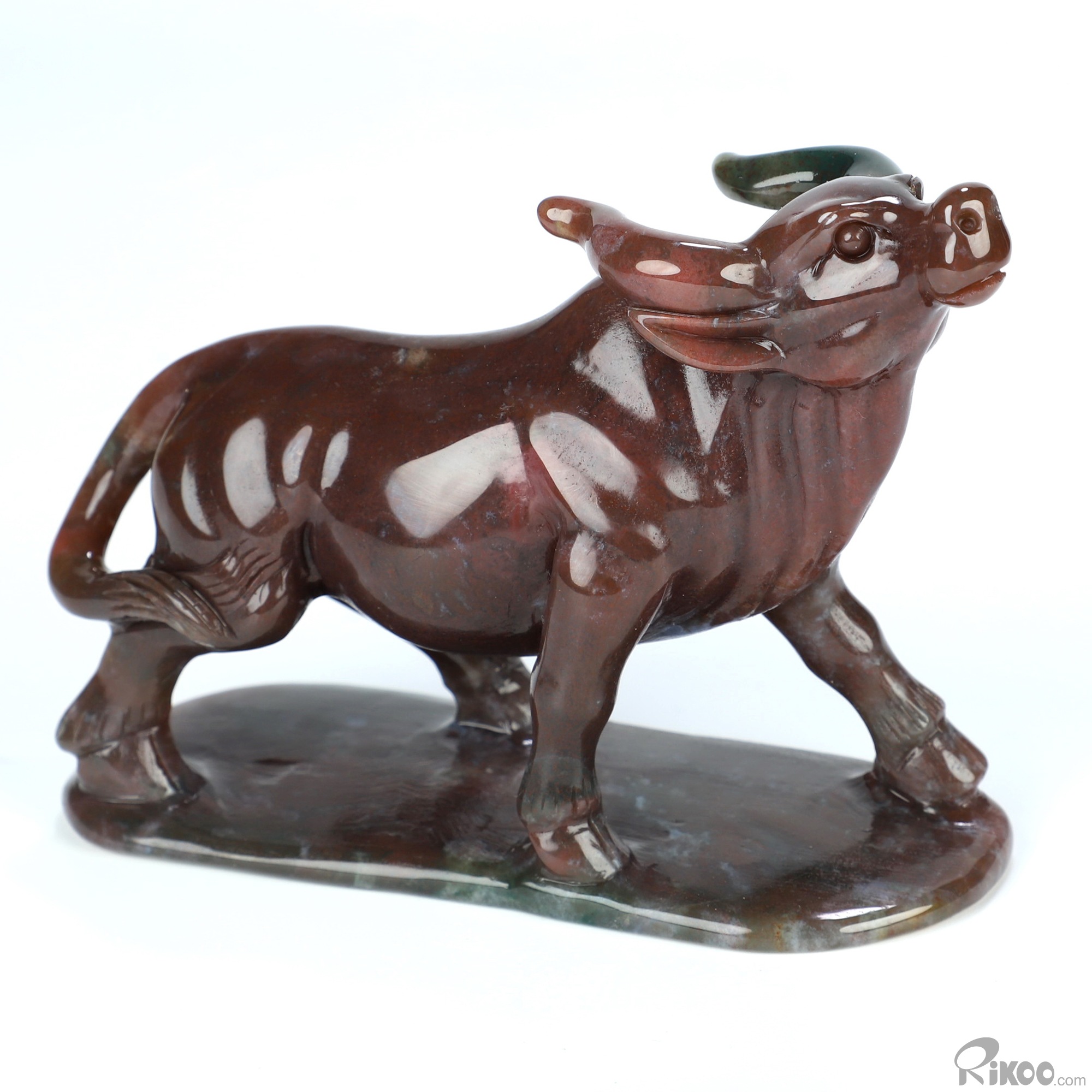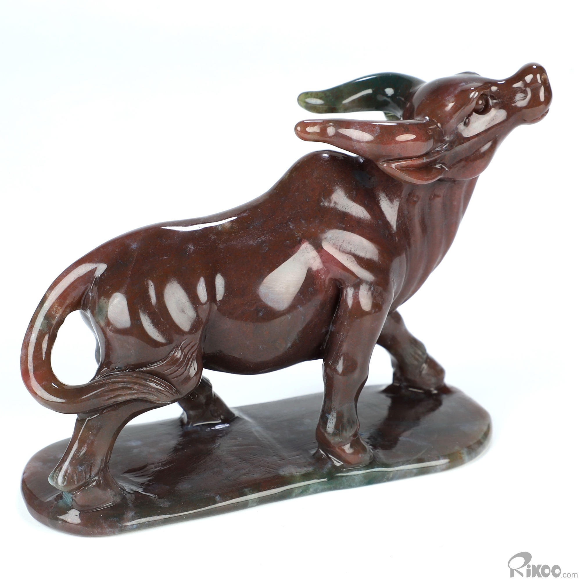 4.7" Indian Agate Hand Carved Crystal Bull Sculpture, Crystal Healing