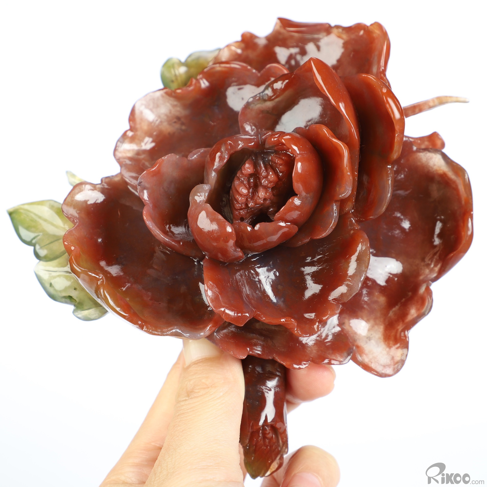 4.7" Indian Agate Hand Carved Crystal Flower Sculpture, Crystal Healing