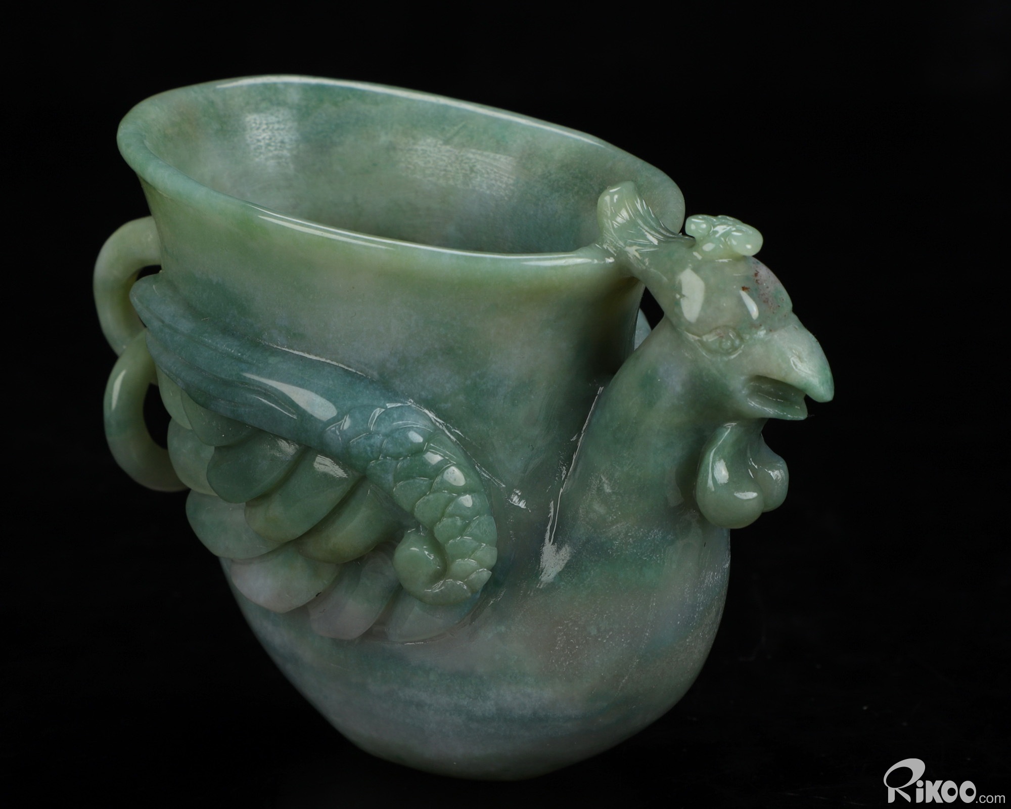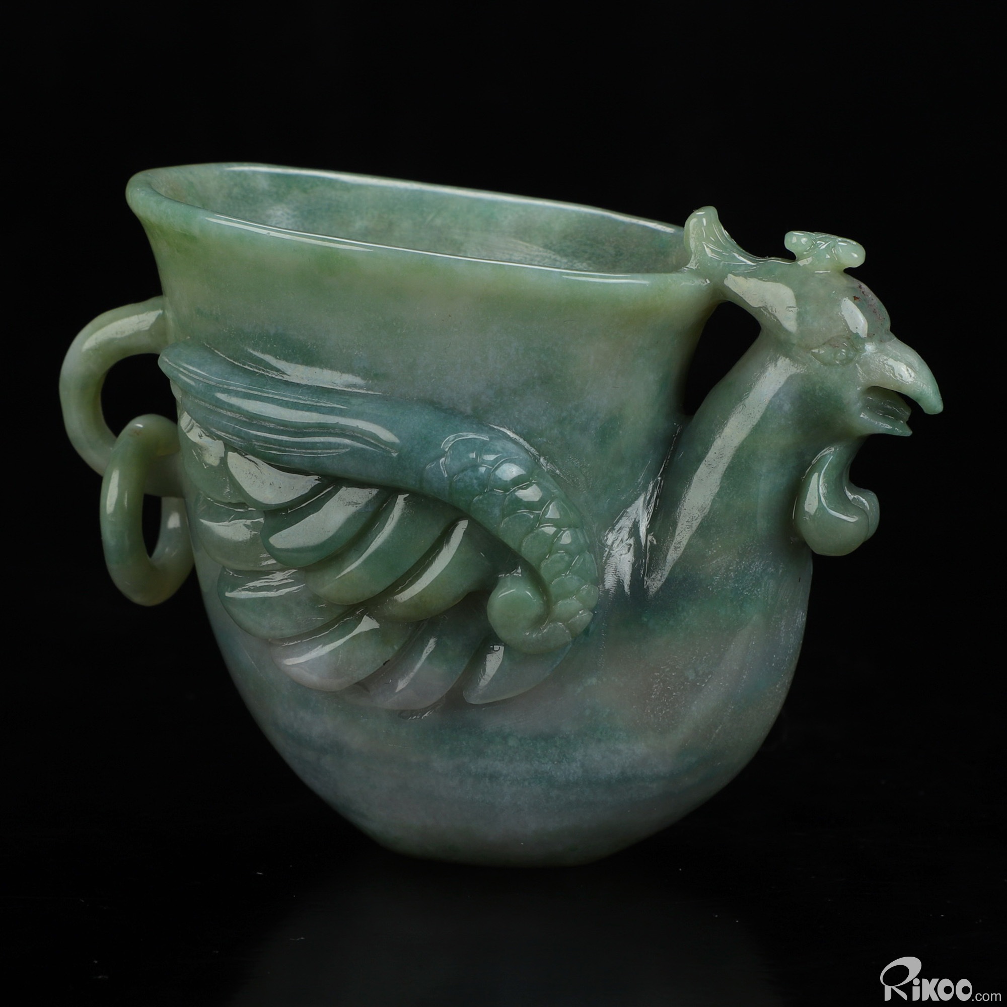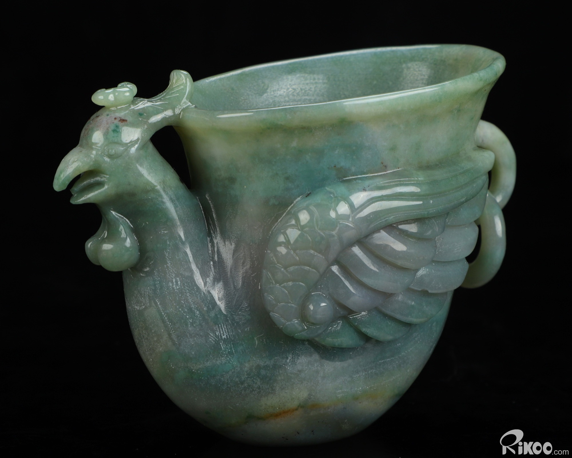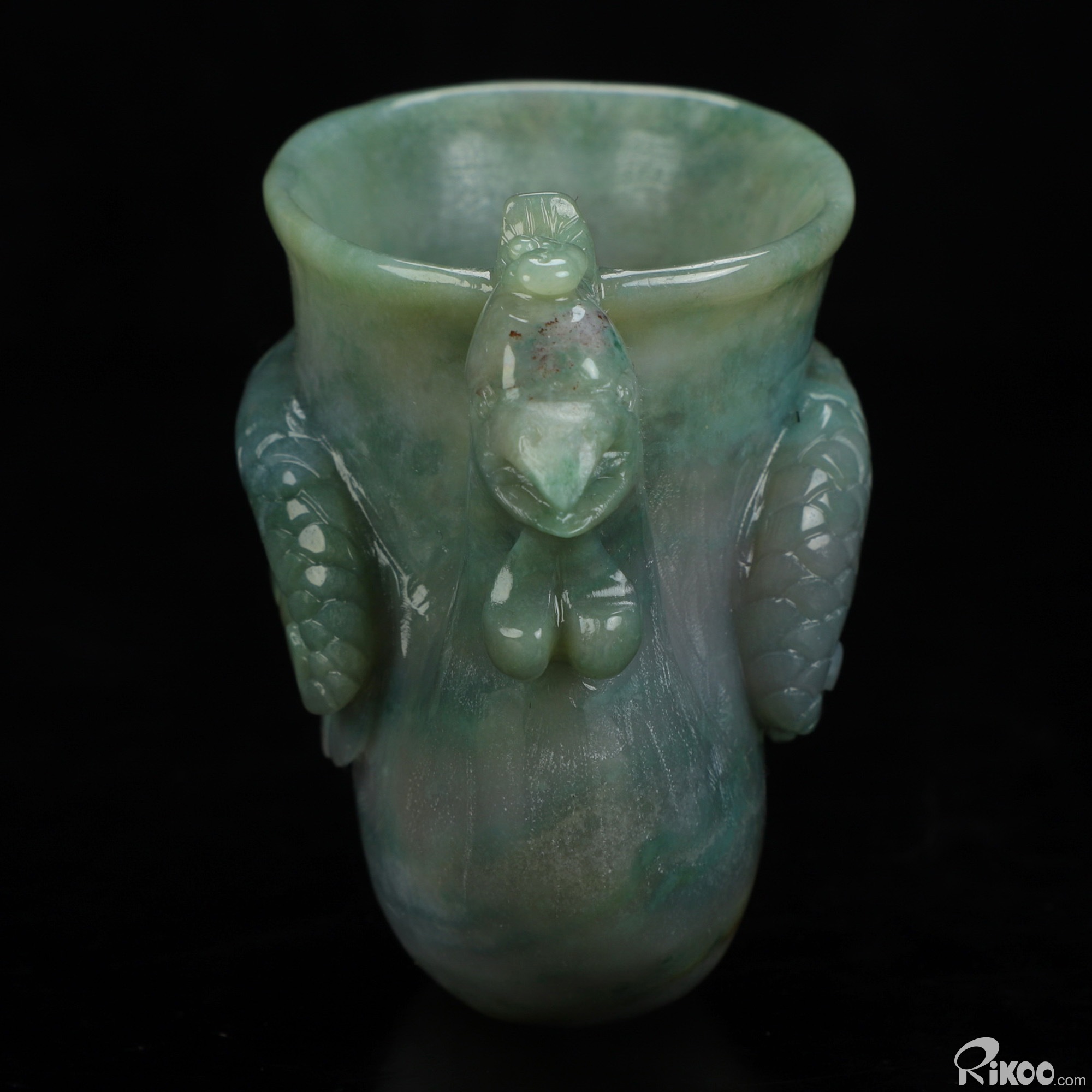 You are looking at an Indian Agate Phoenix Cup sculpture. The sculpture is 4.7 inches long.