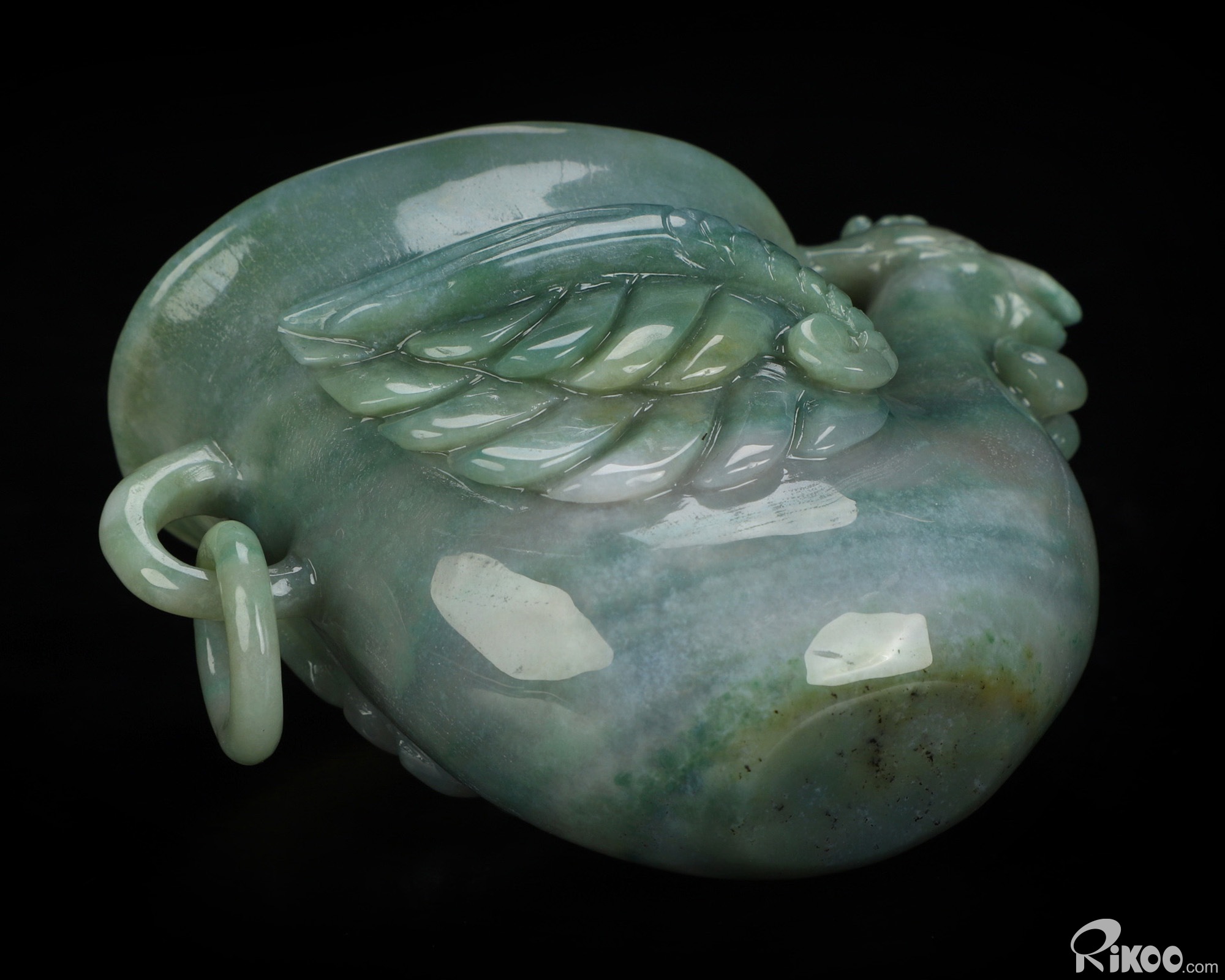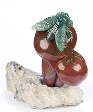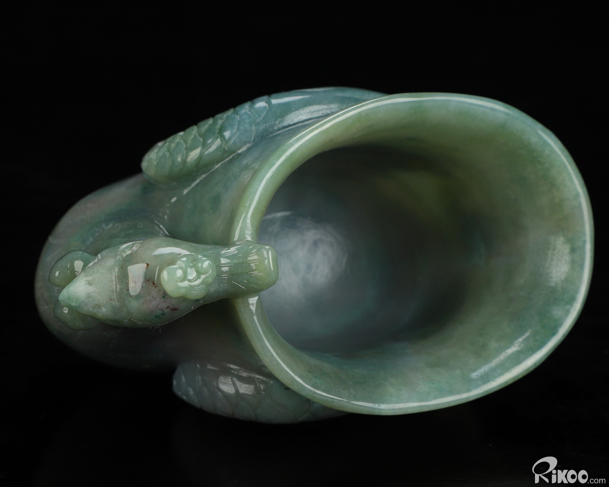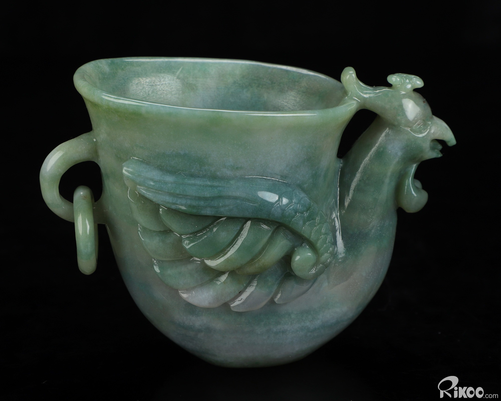 You are looking at an Indian Agate Phoenix Cup sculpture. The sculpture is 4.7 inches long.