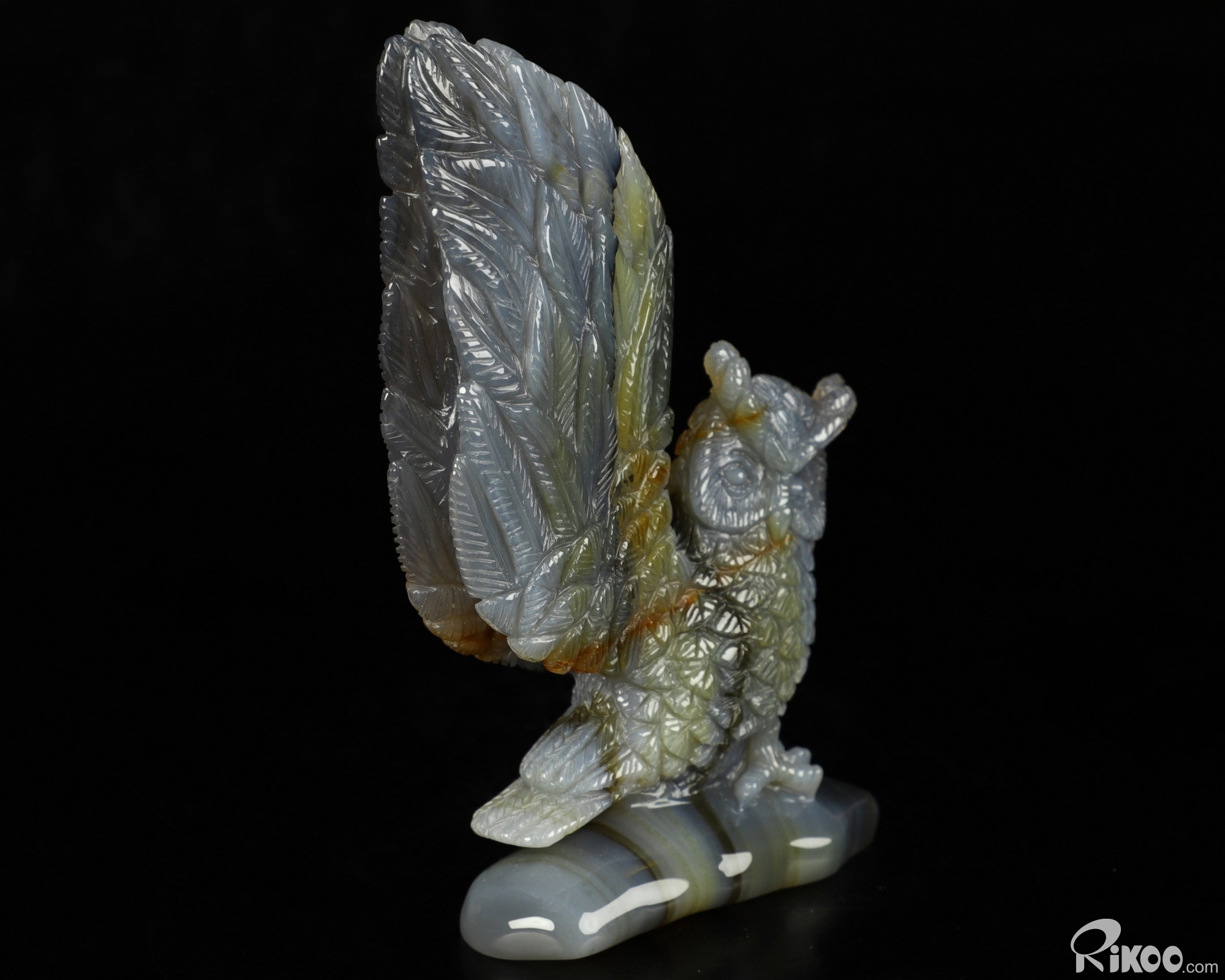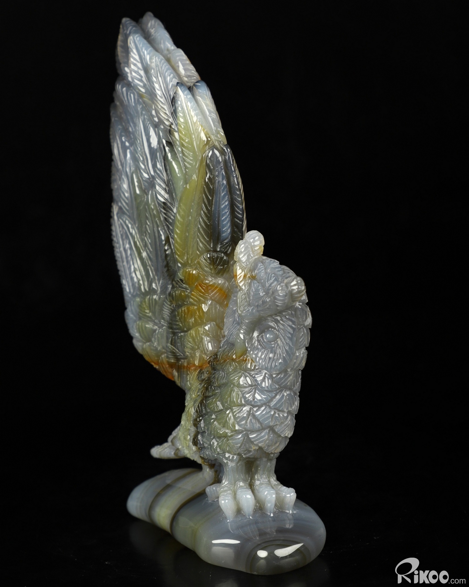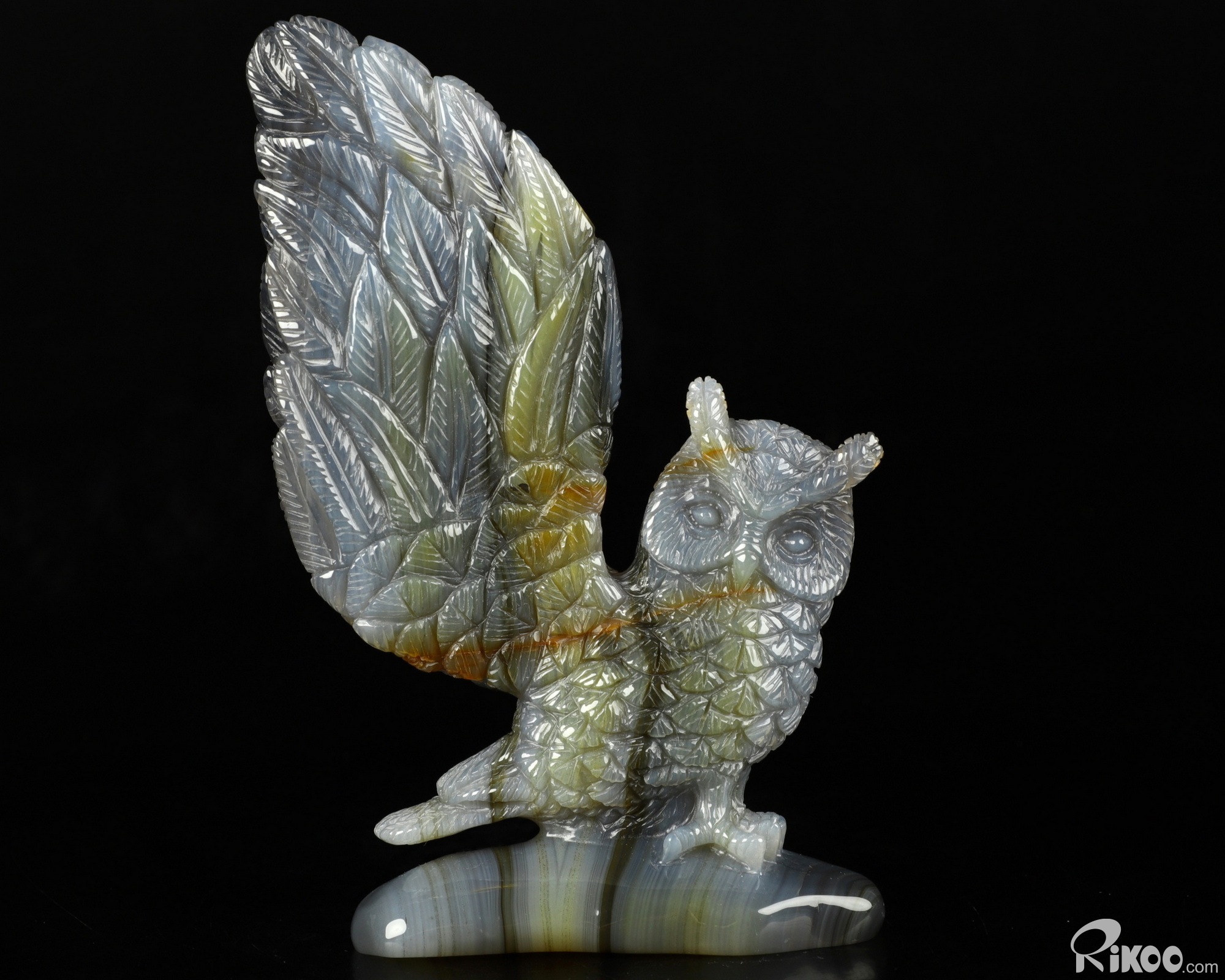 4.8" Agate Carved Crystal Owl Sculpture, Realistic, Crystal Healing