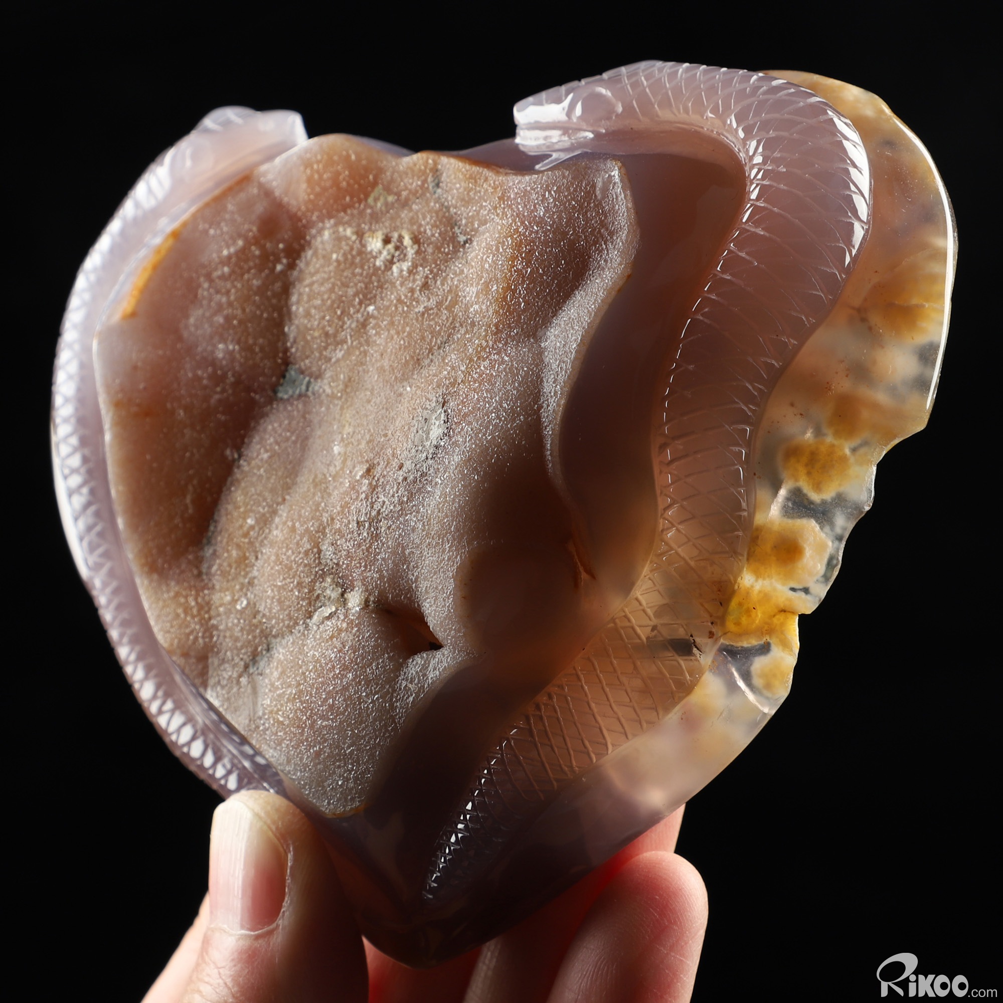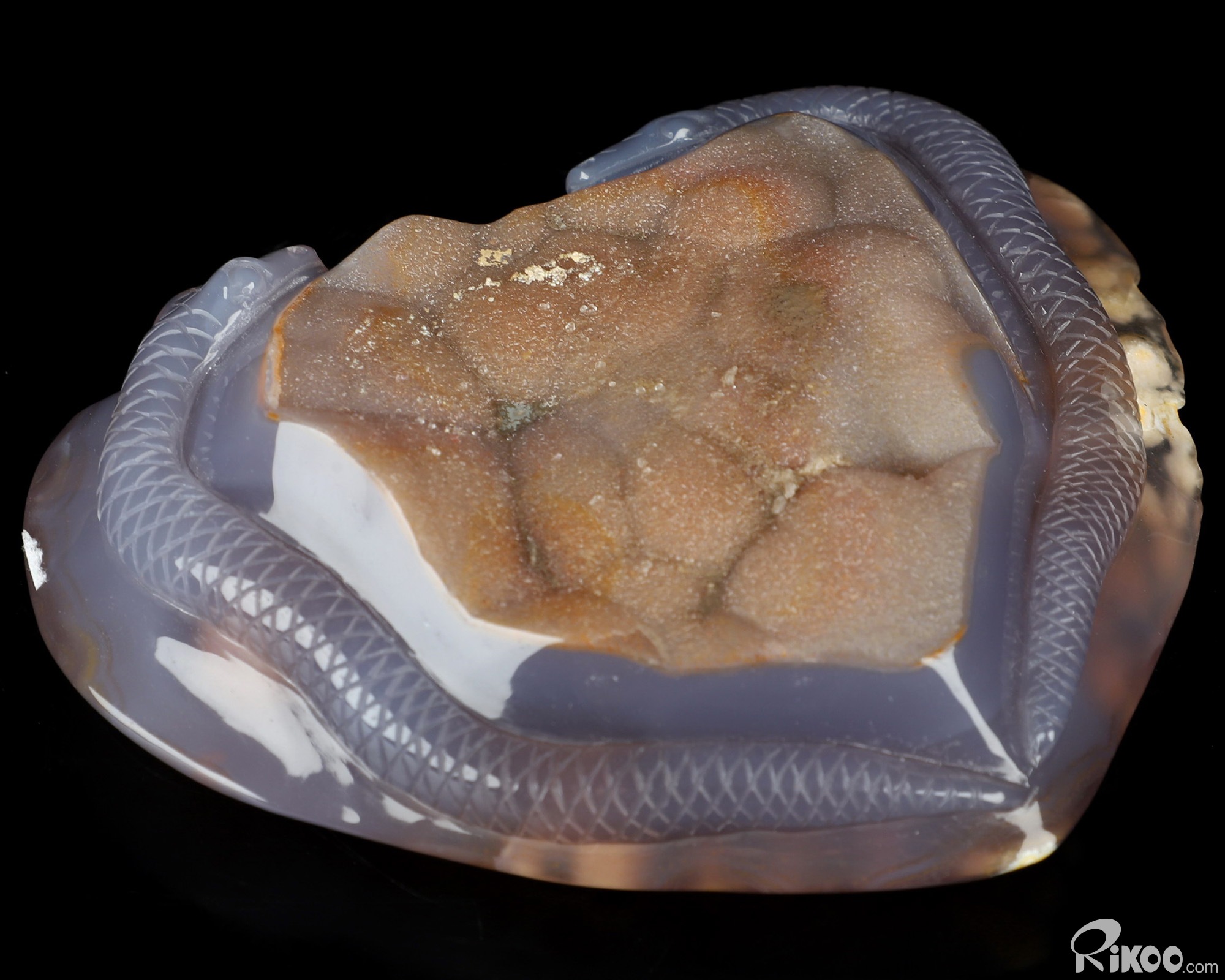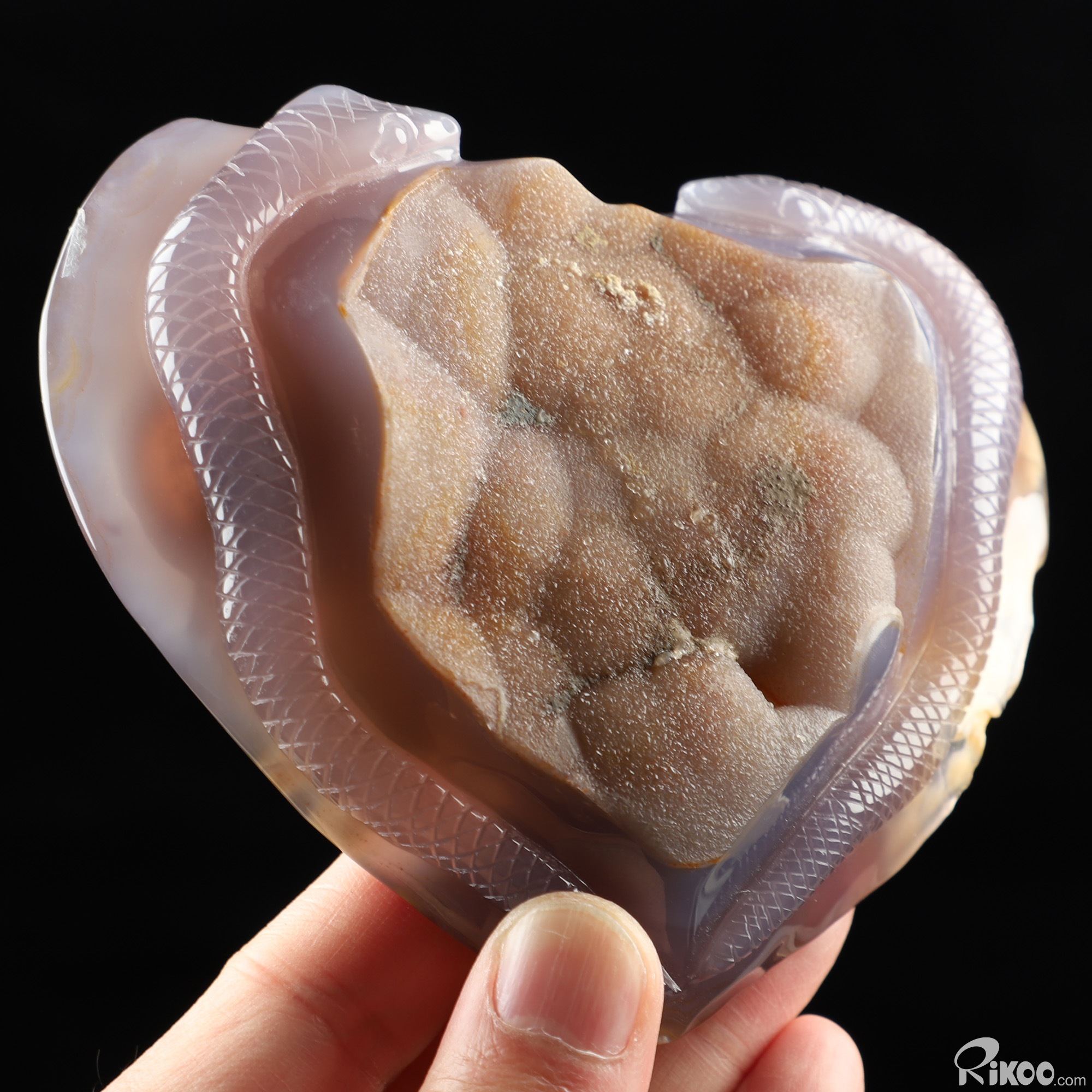 4.8" Agate Geode Hand Carved Crystal Heart with Snake Sculpture, Crystal Healing