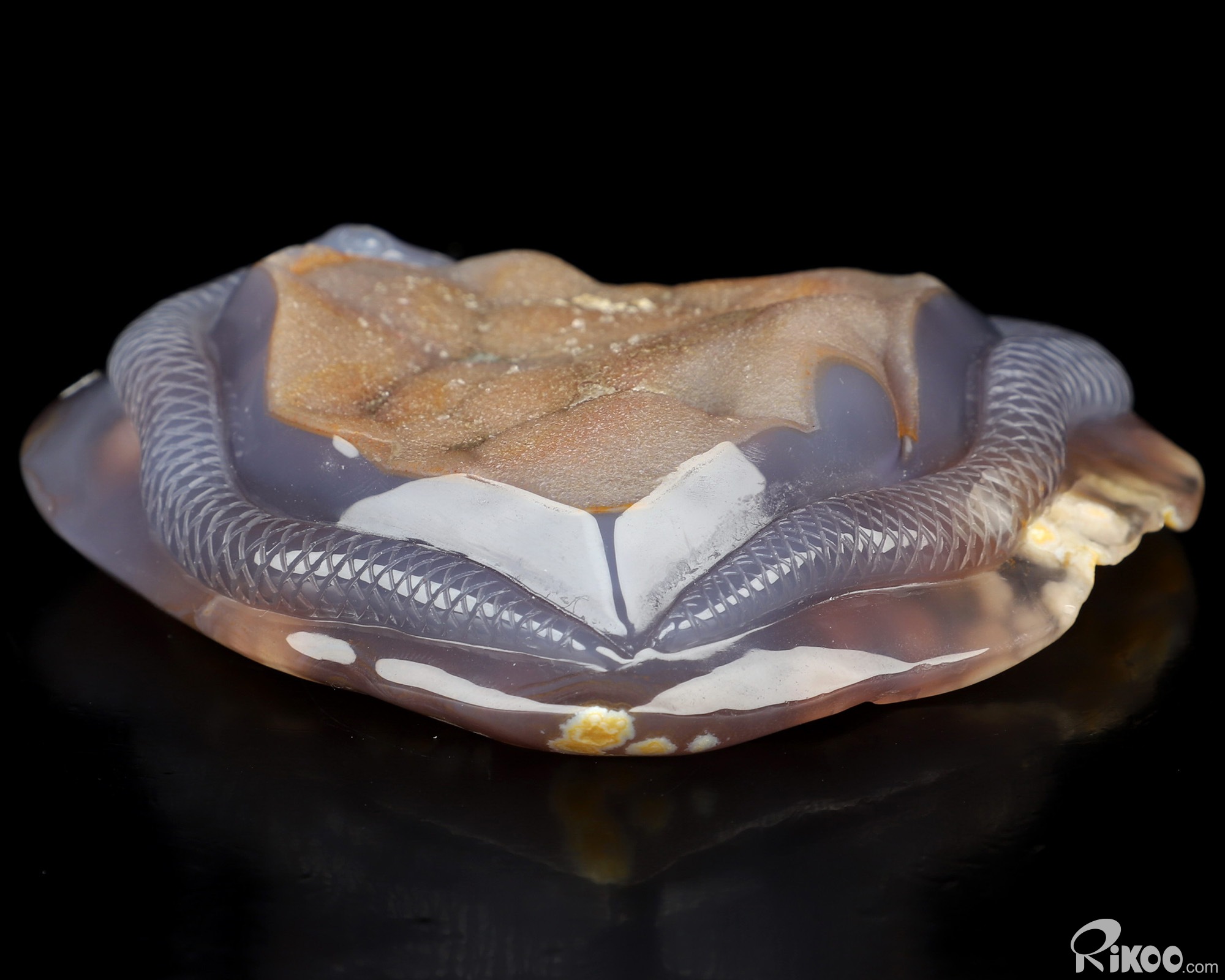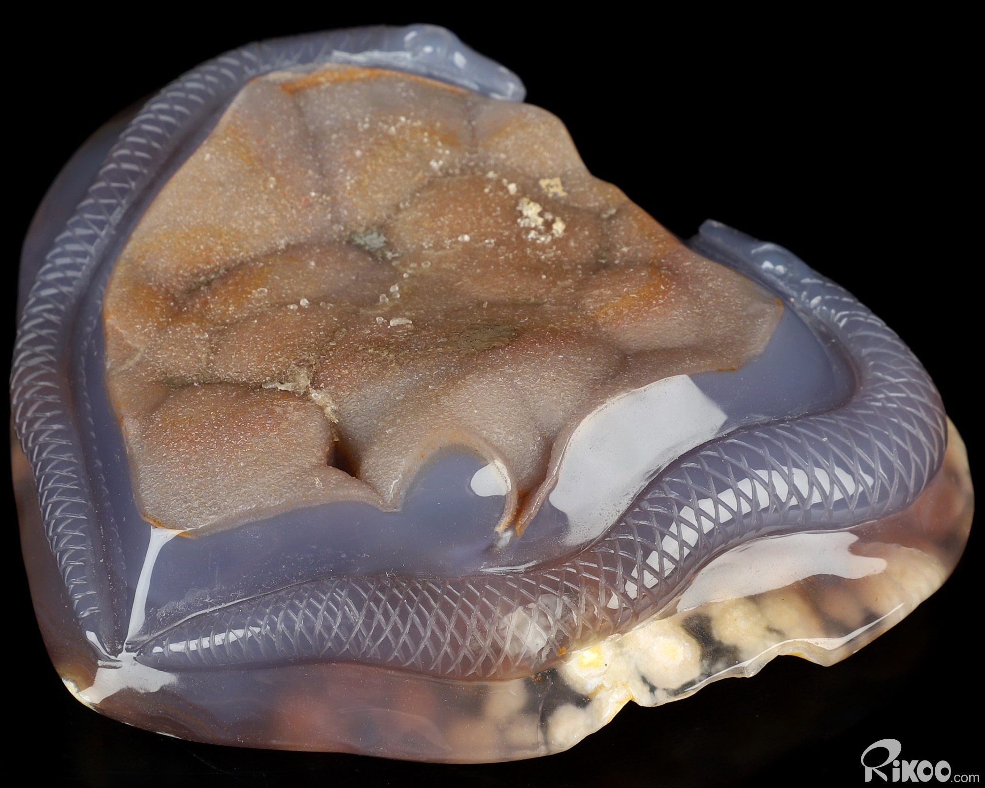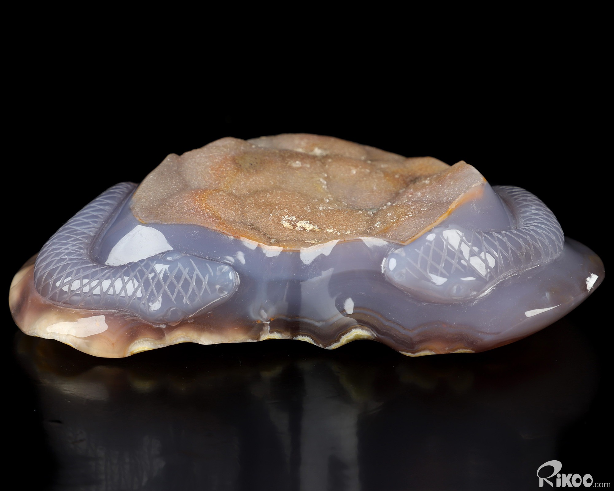 4.8" Agate Geode Hand Carved Crystal Heart with Snake Sculpture, Crystal Healing