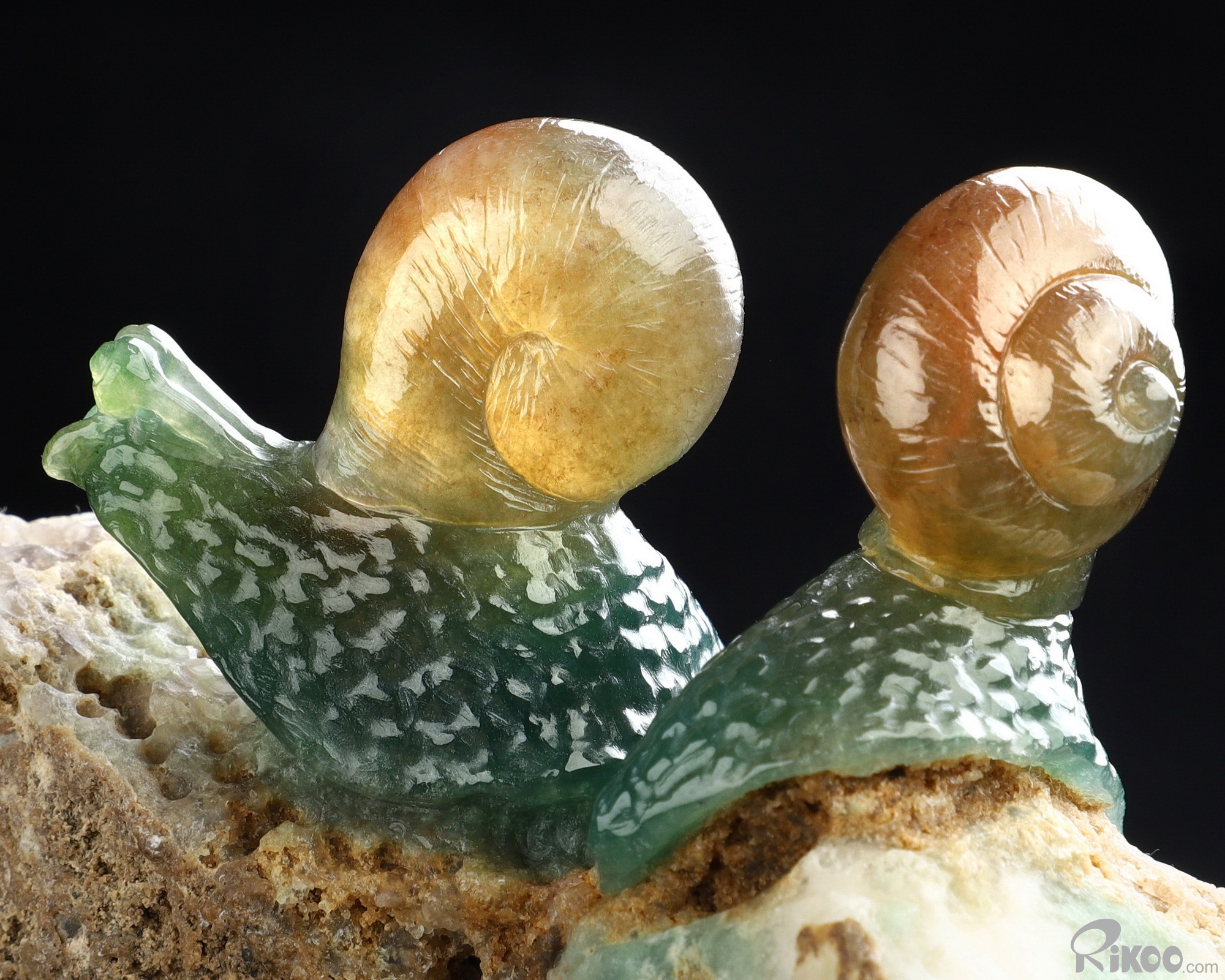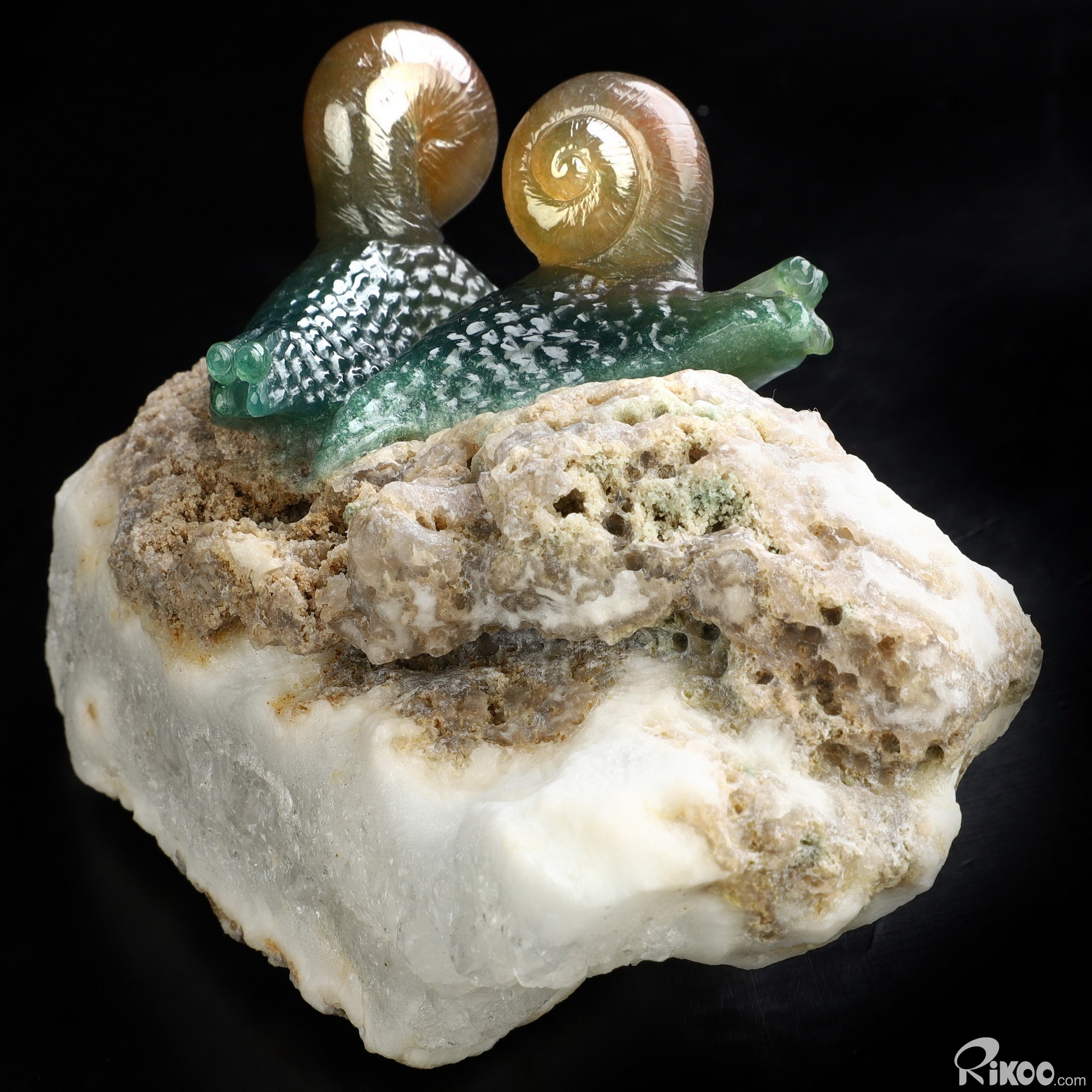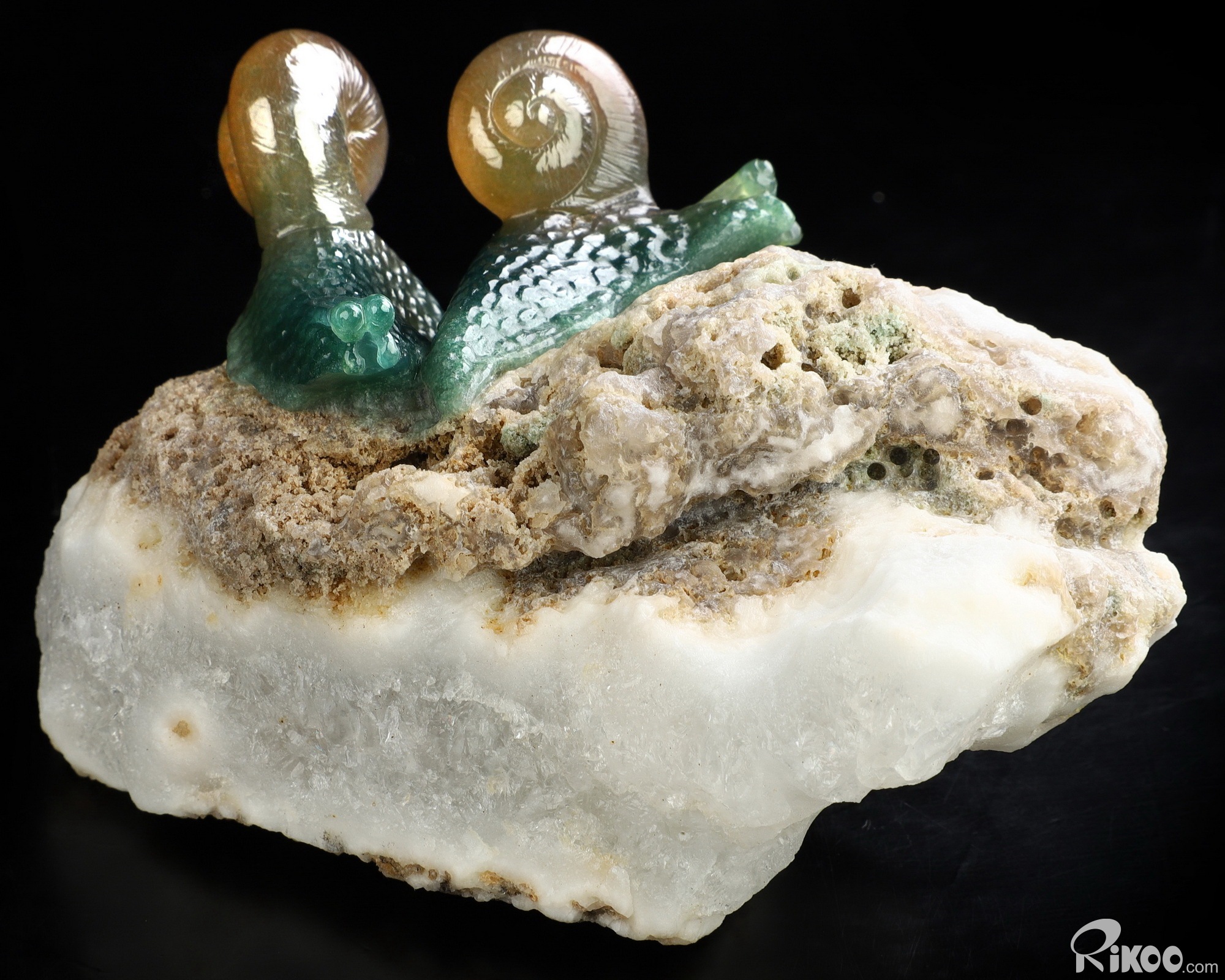 4.8" Indian Agate Hand Carved Crystal Snails Sculpture, Crystal Healing