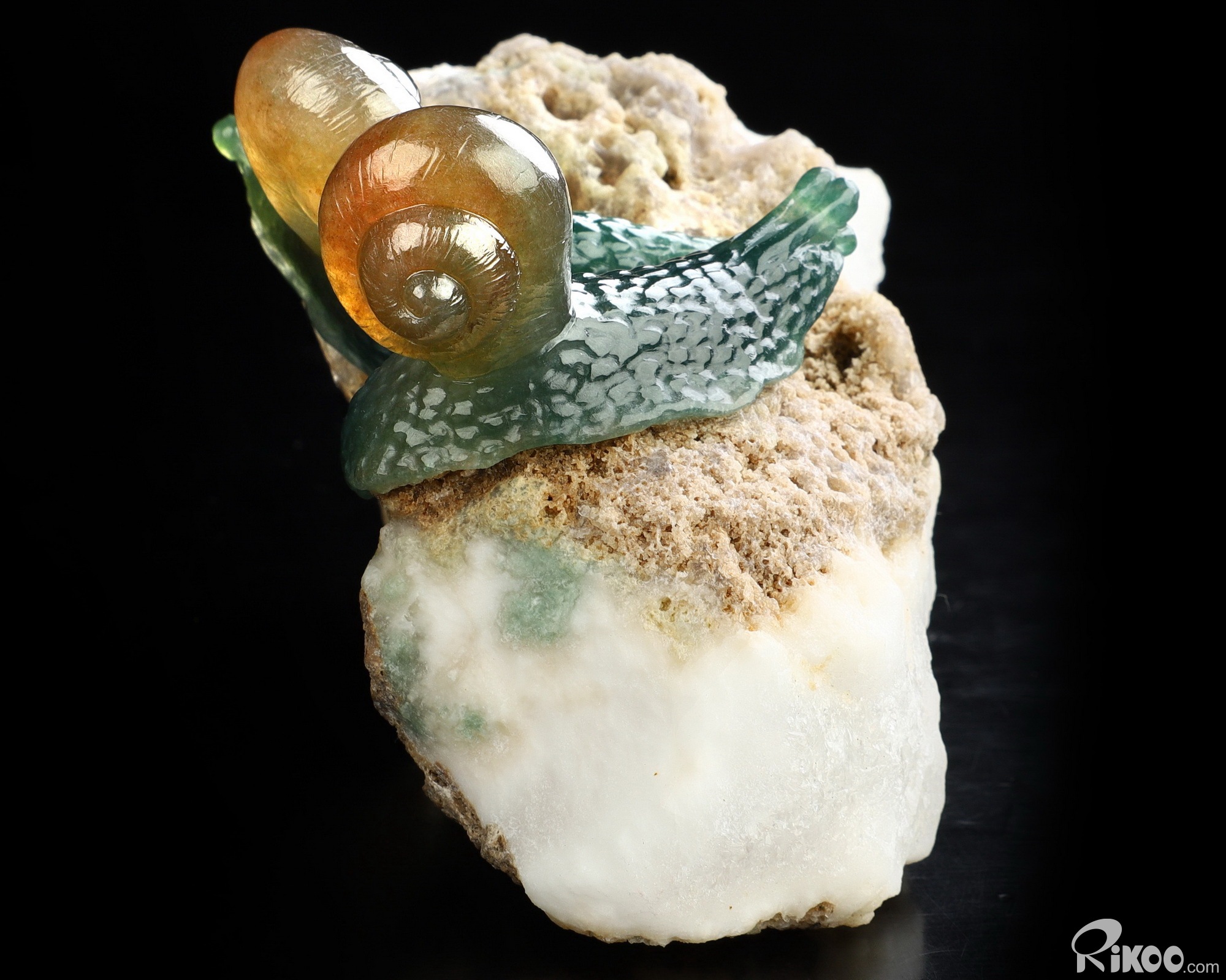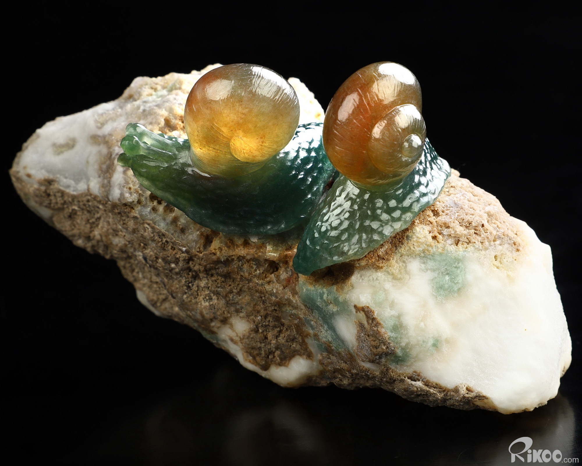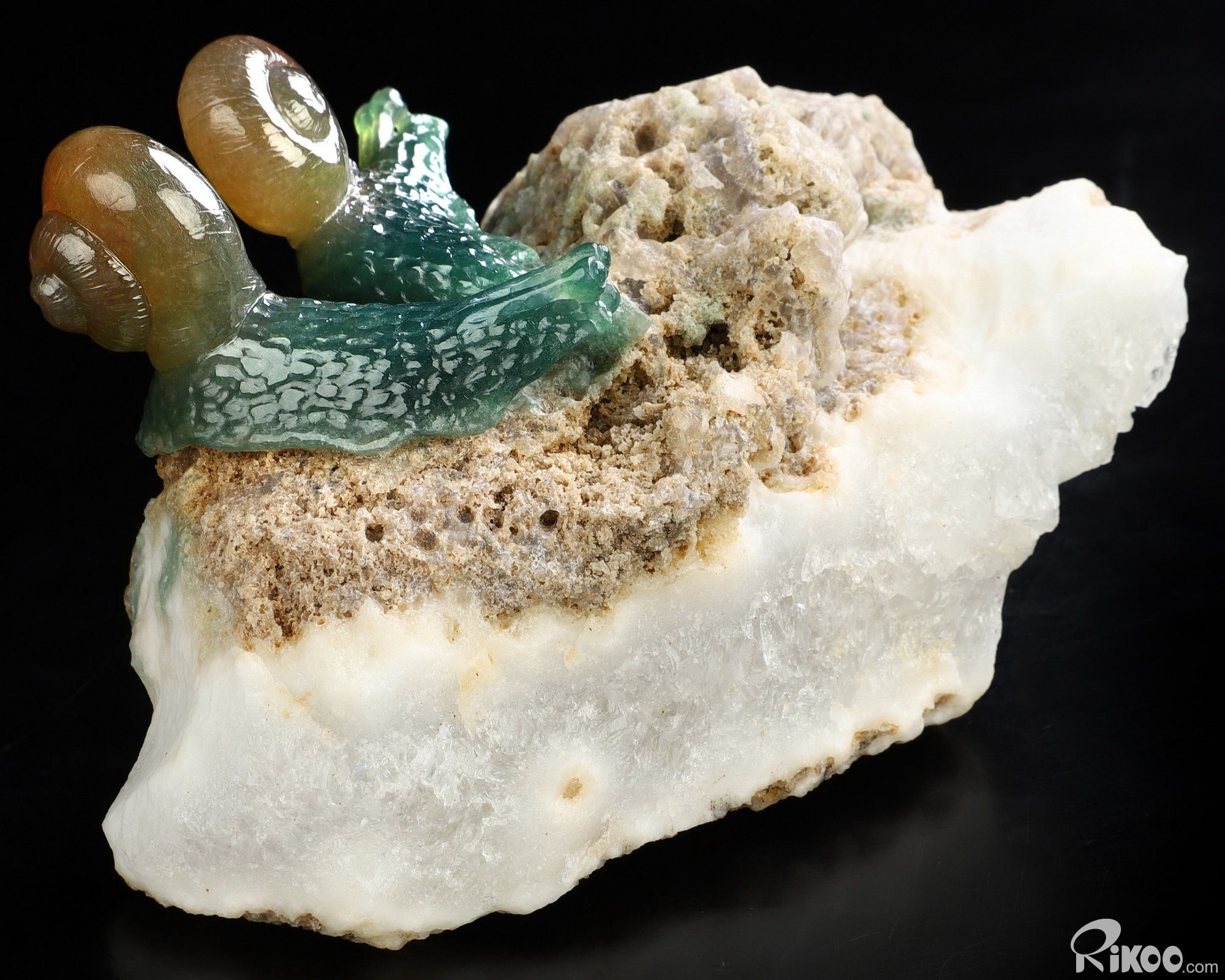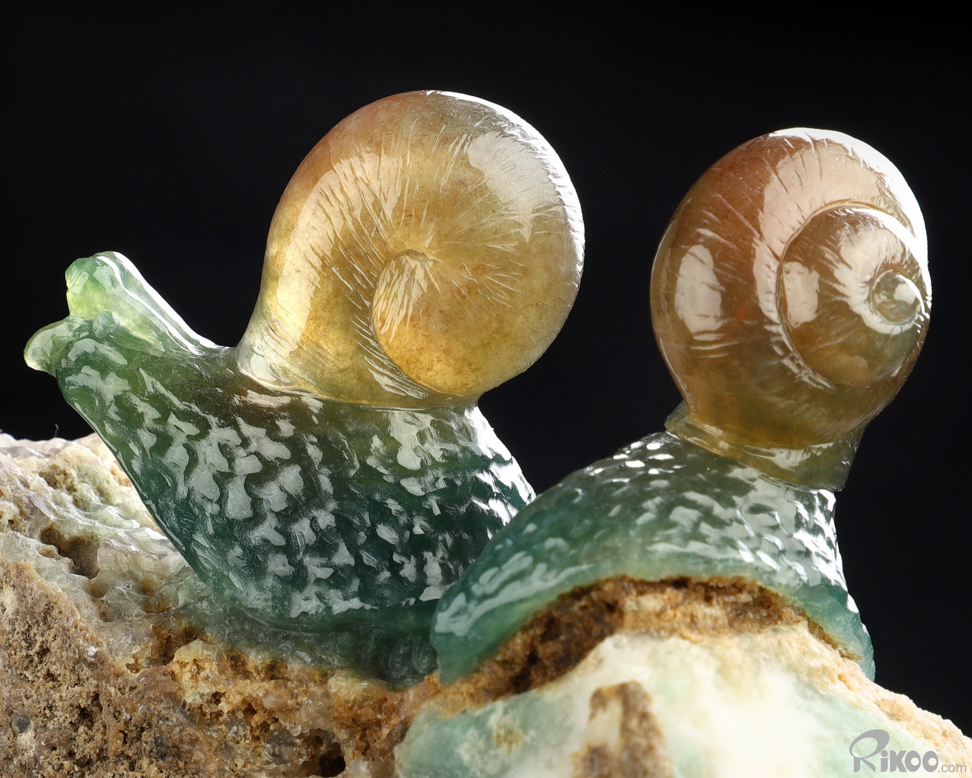 4.8" Indian Agate Hand Carved Crystal Snails Sculpture, Crystal Healing