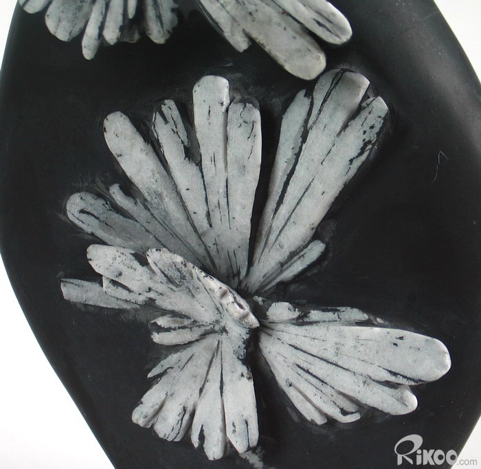 The stone contains patterns exactly like chrysanthemum, so it is called chrysanthemum stone. It is natural, rare and unparalleled. It is unique in the world. Chrysanthemum stone was first excavated and carved in the early of Qing Dynasty. When people built a dam, they found that the stone used for the dam contained patterns like chrysanthemum, thus different propitious shapes were carved out of the stone. Because of their lively appearance and unique shape, later the carvings were listed in the tributes to the king.