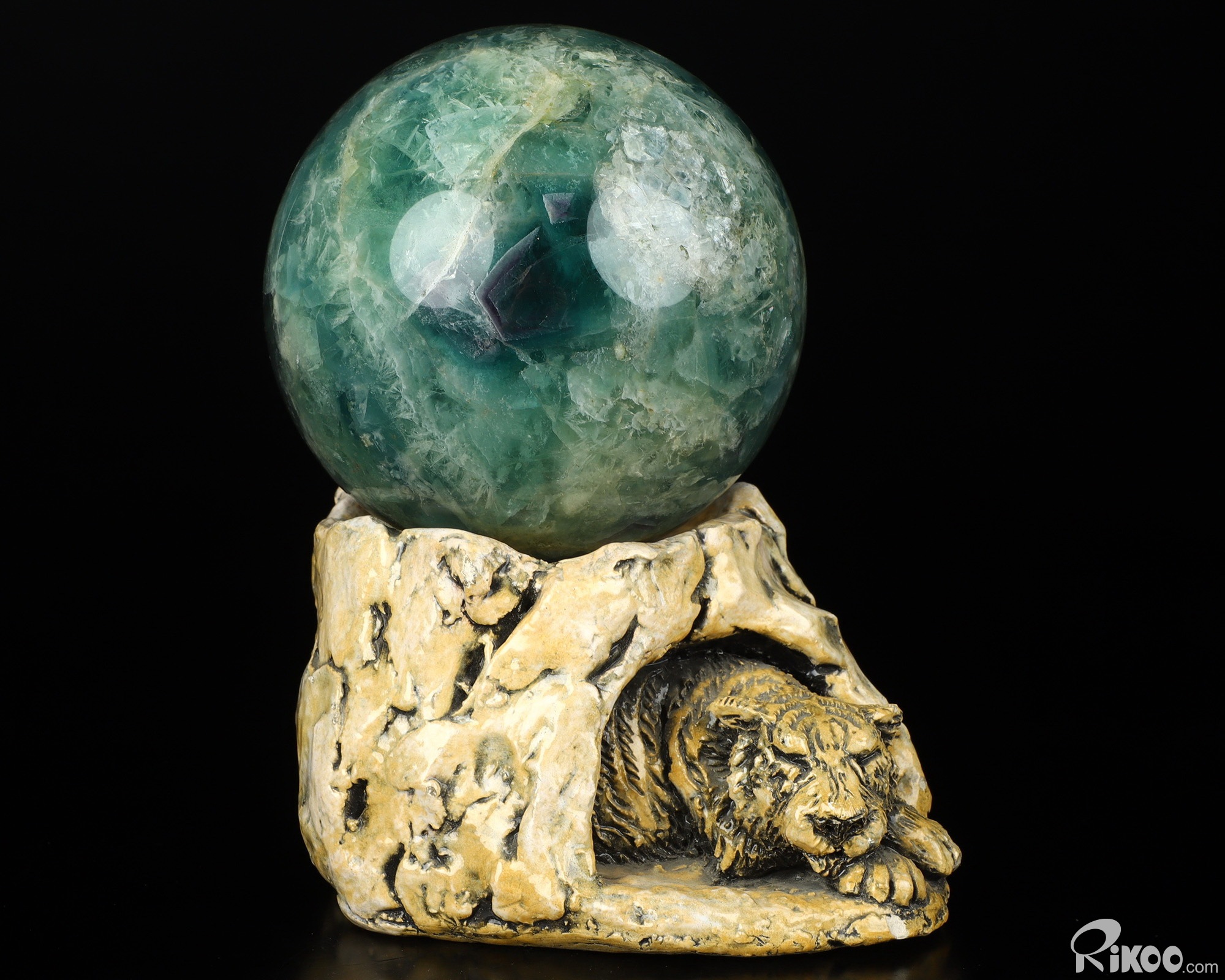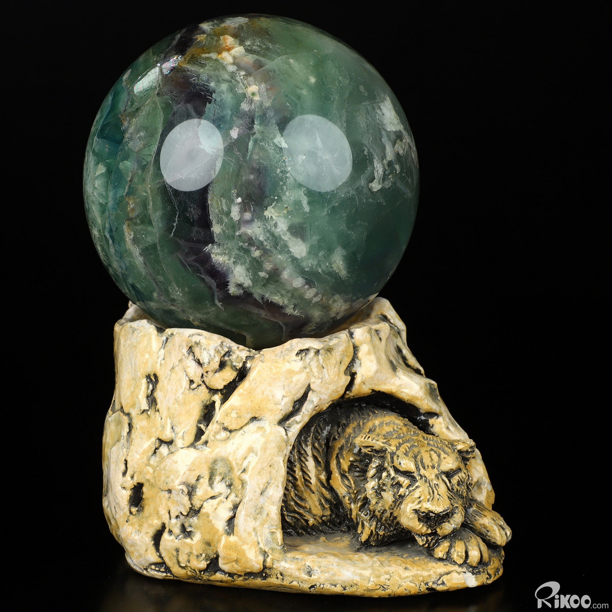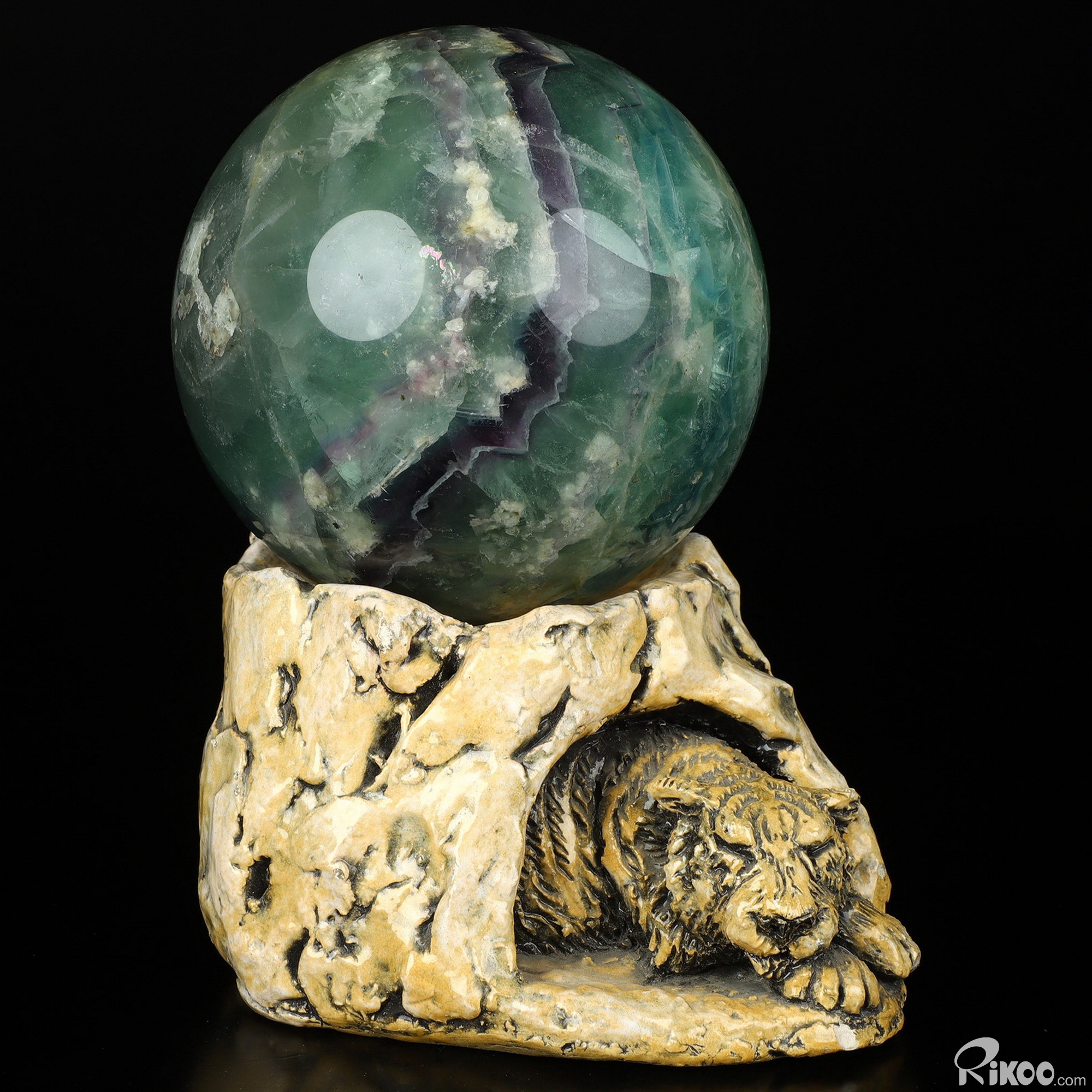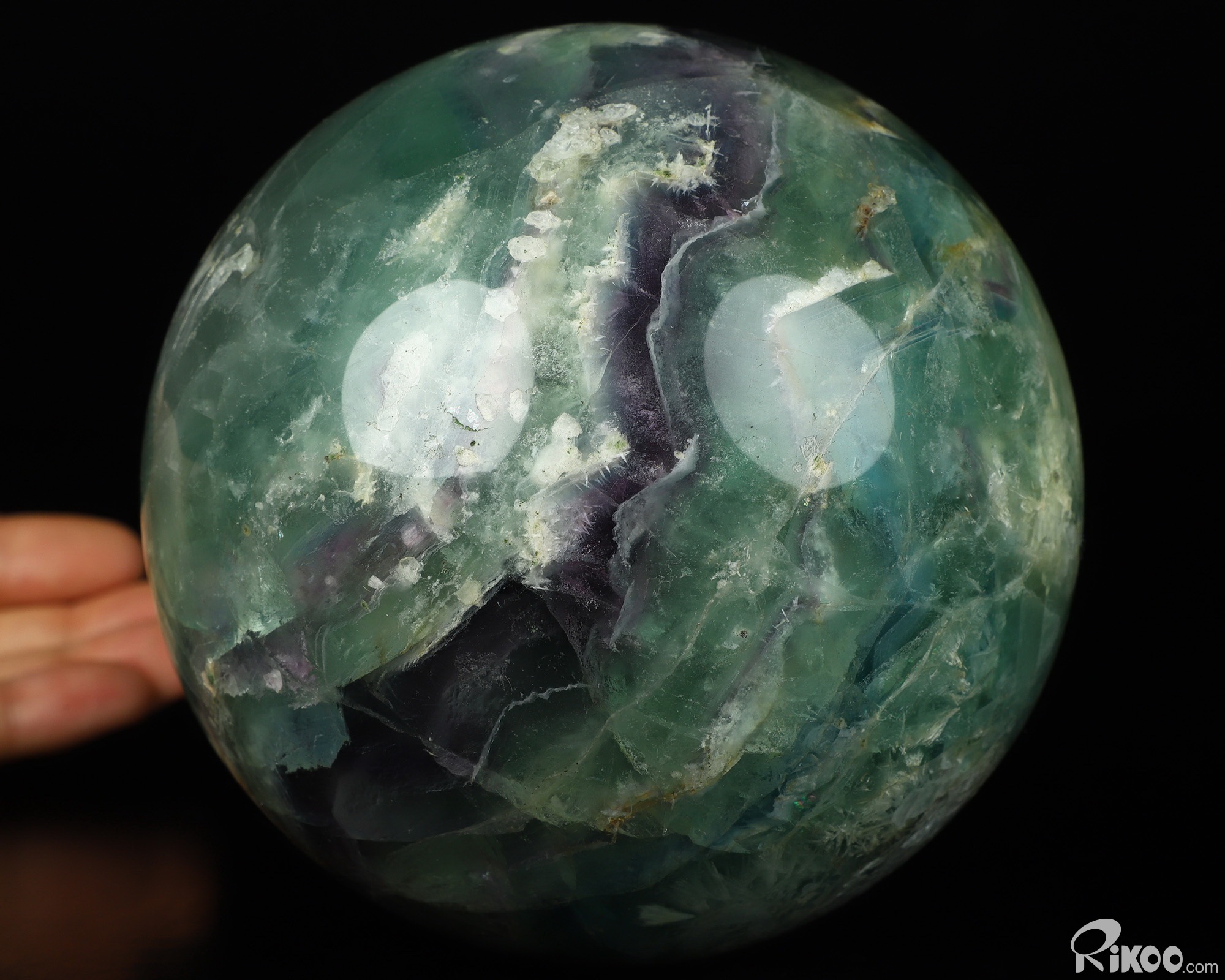 You are looking at a Fluorite ball. The ball is 4.9 inches long from front to back. The ball stand is not included.
