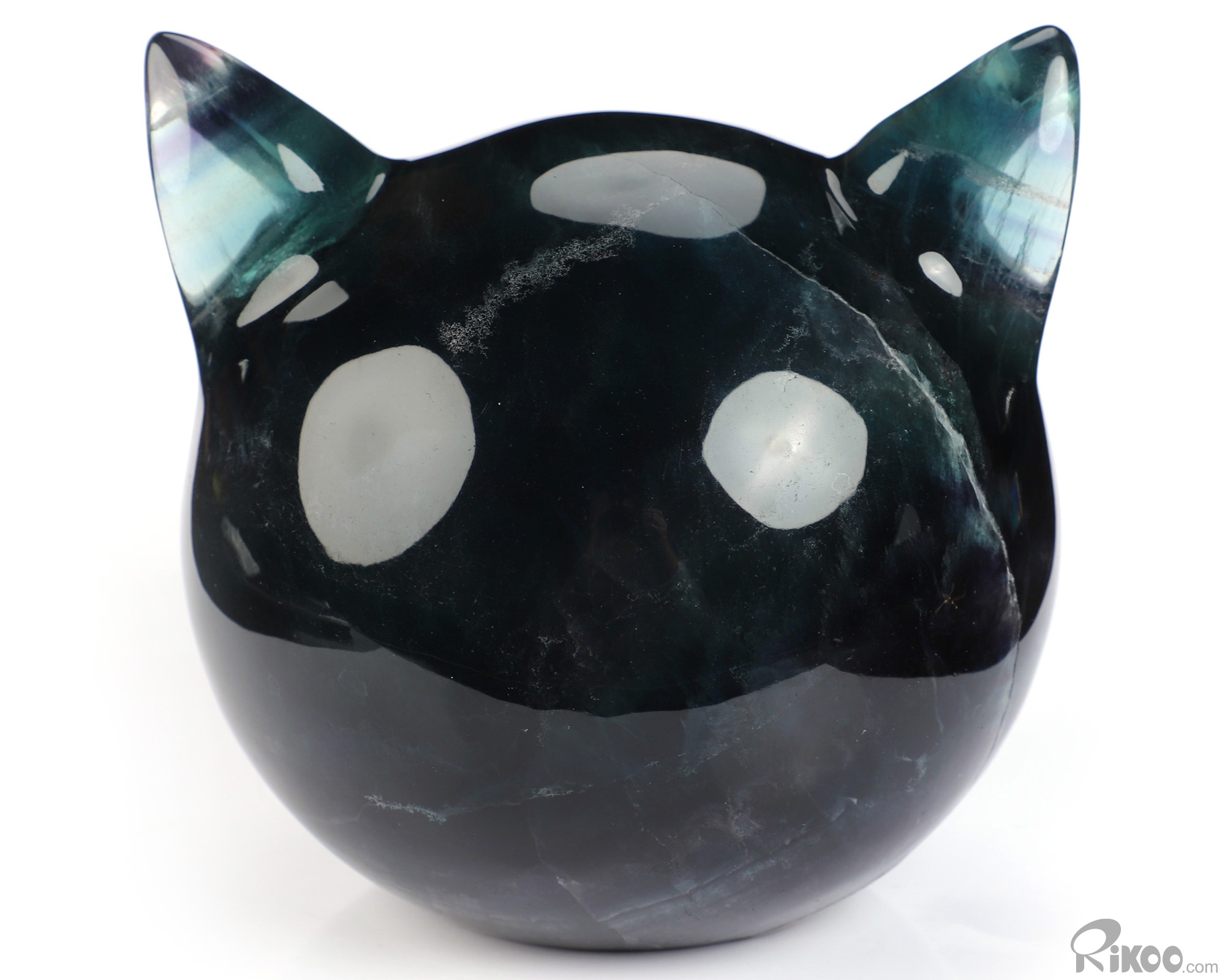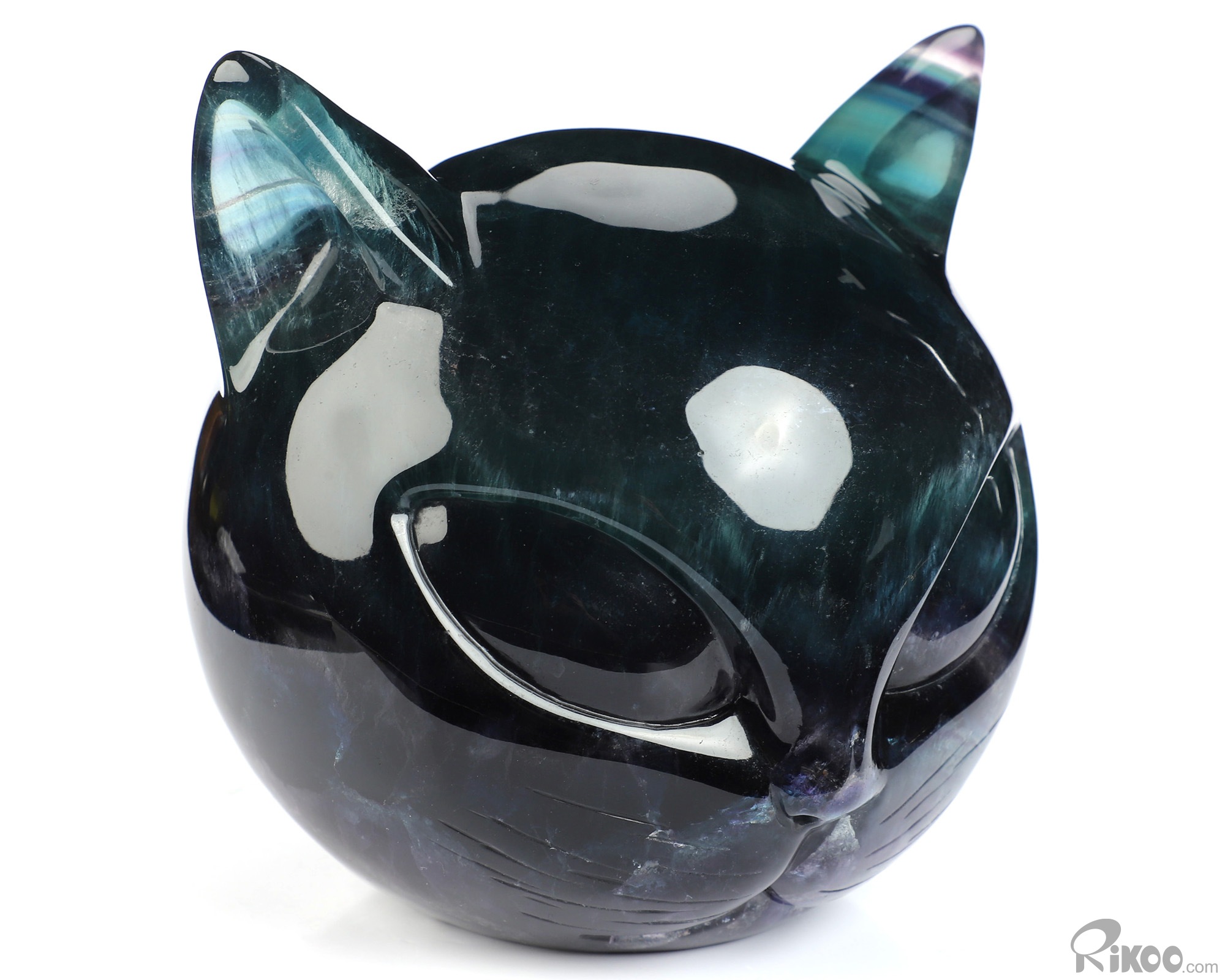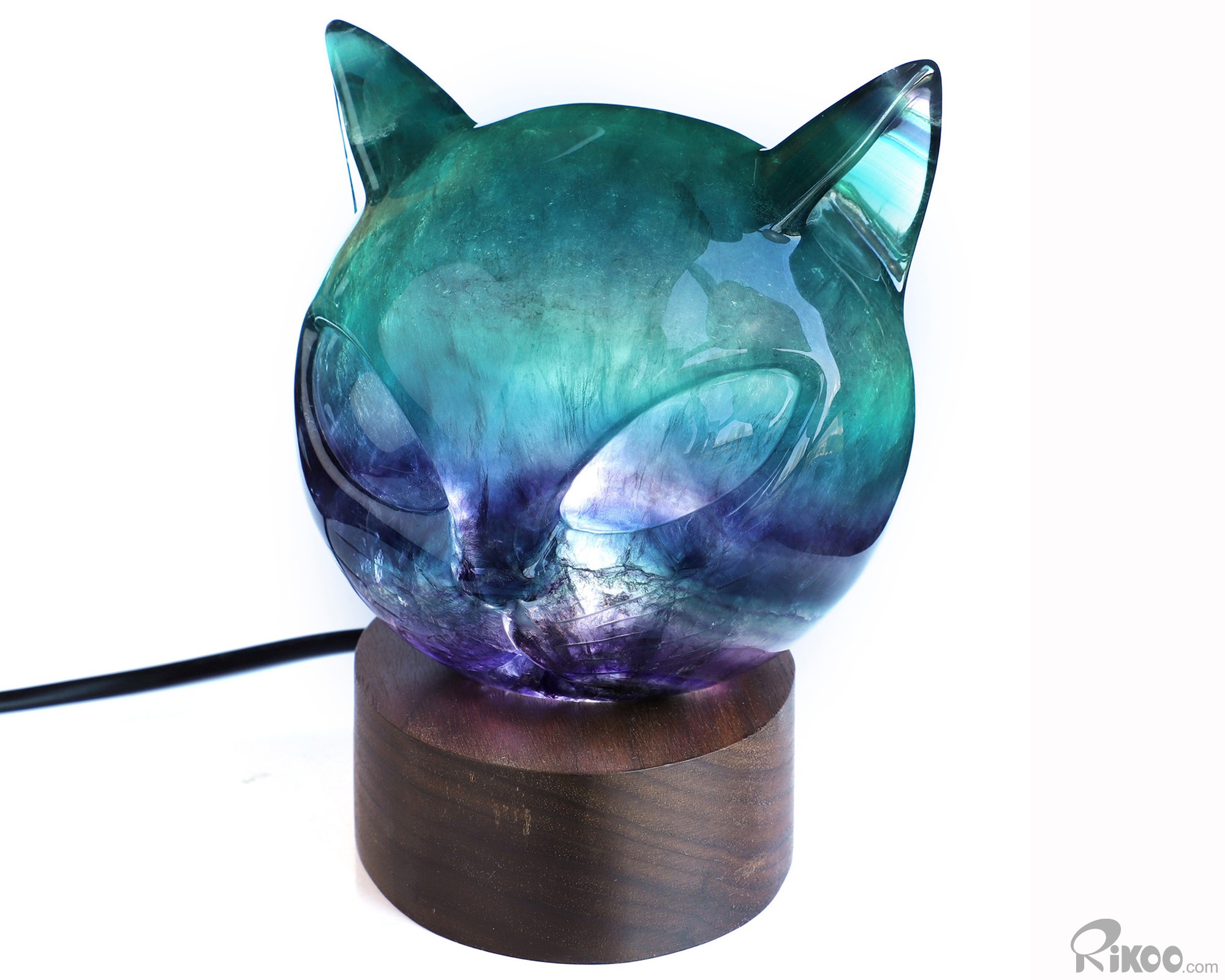 4.9" Fluorite Hand Carved Hollow Crystal Cat Sculpture with Led Stand, Crystal Healing