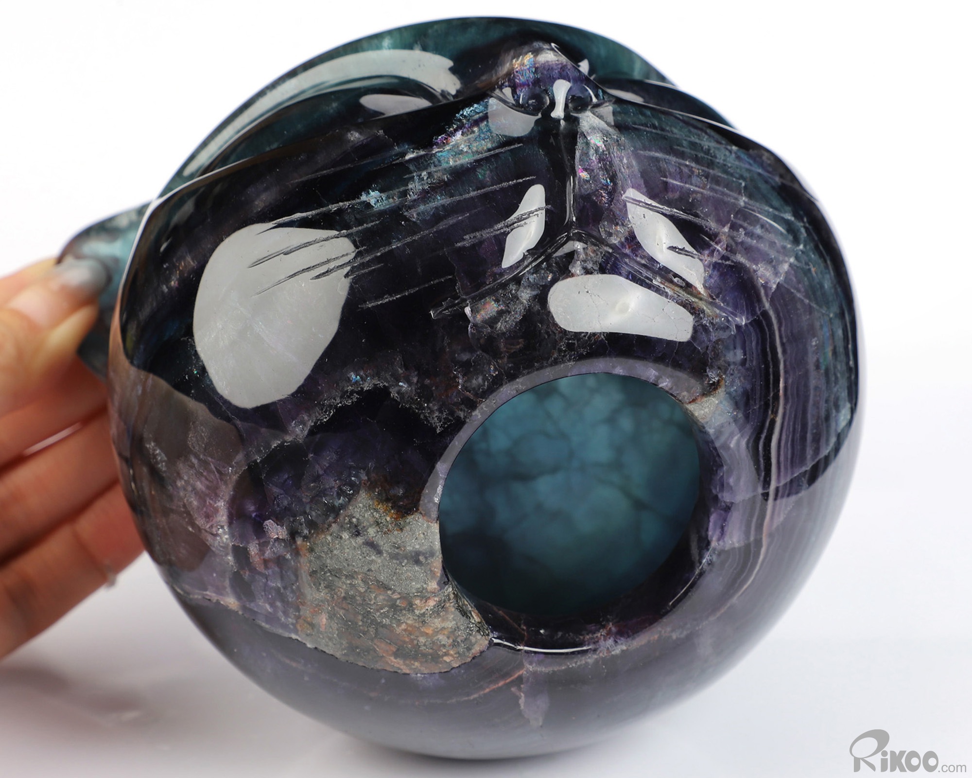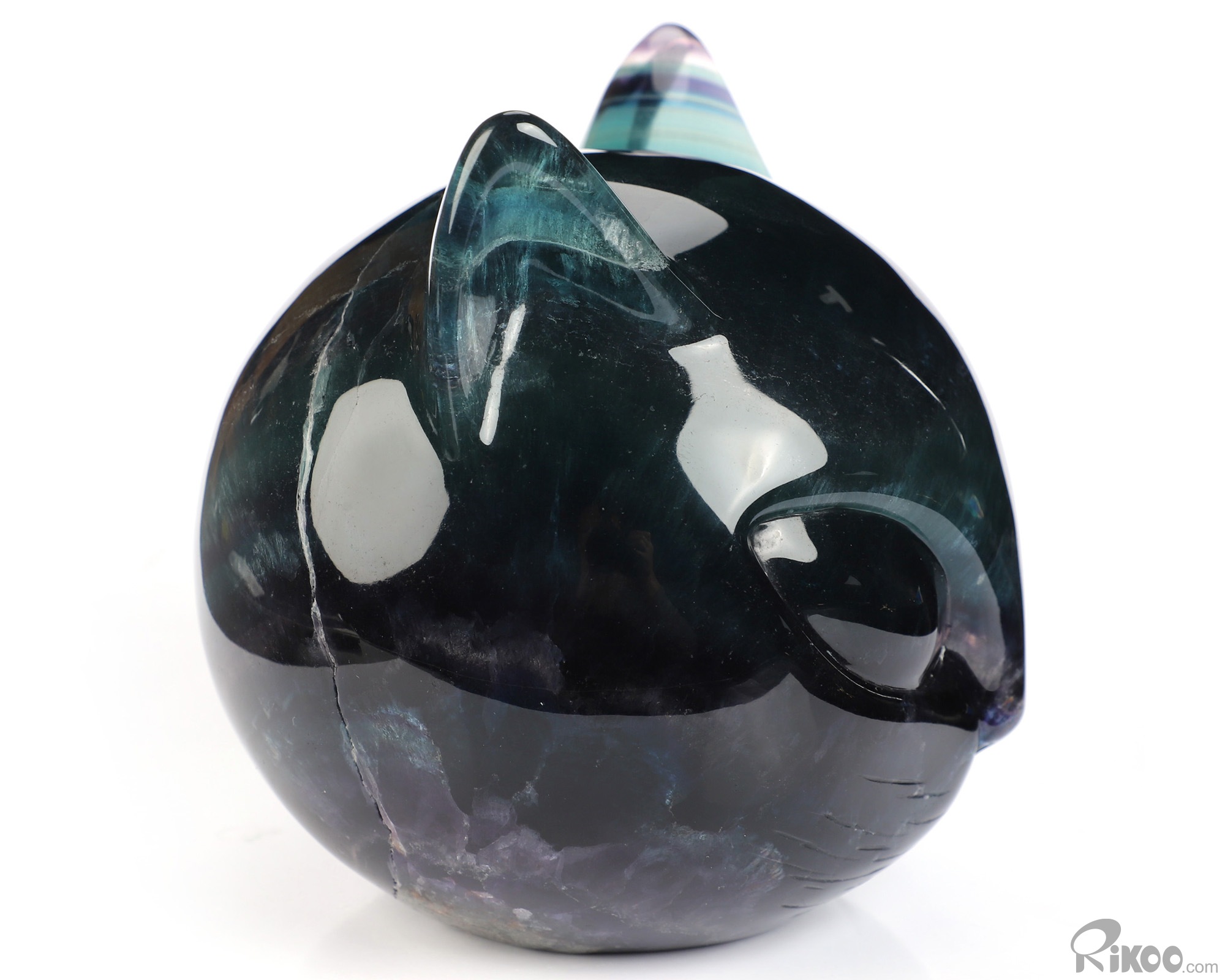 You are looking at a Fluorite sculpture. The sculpture is 4.9 inches long.