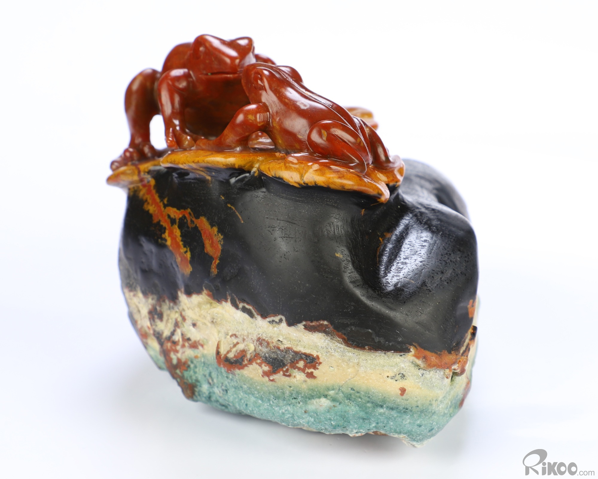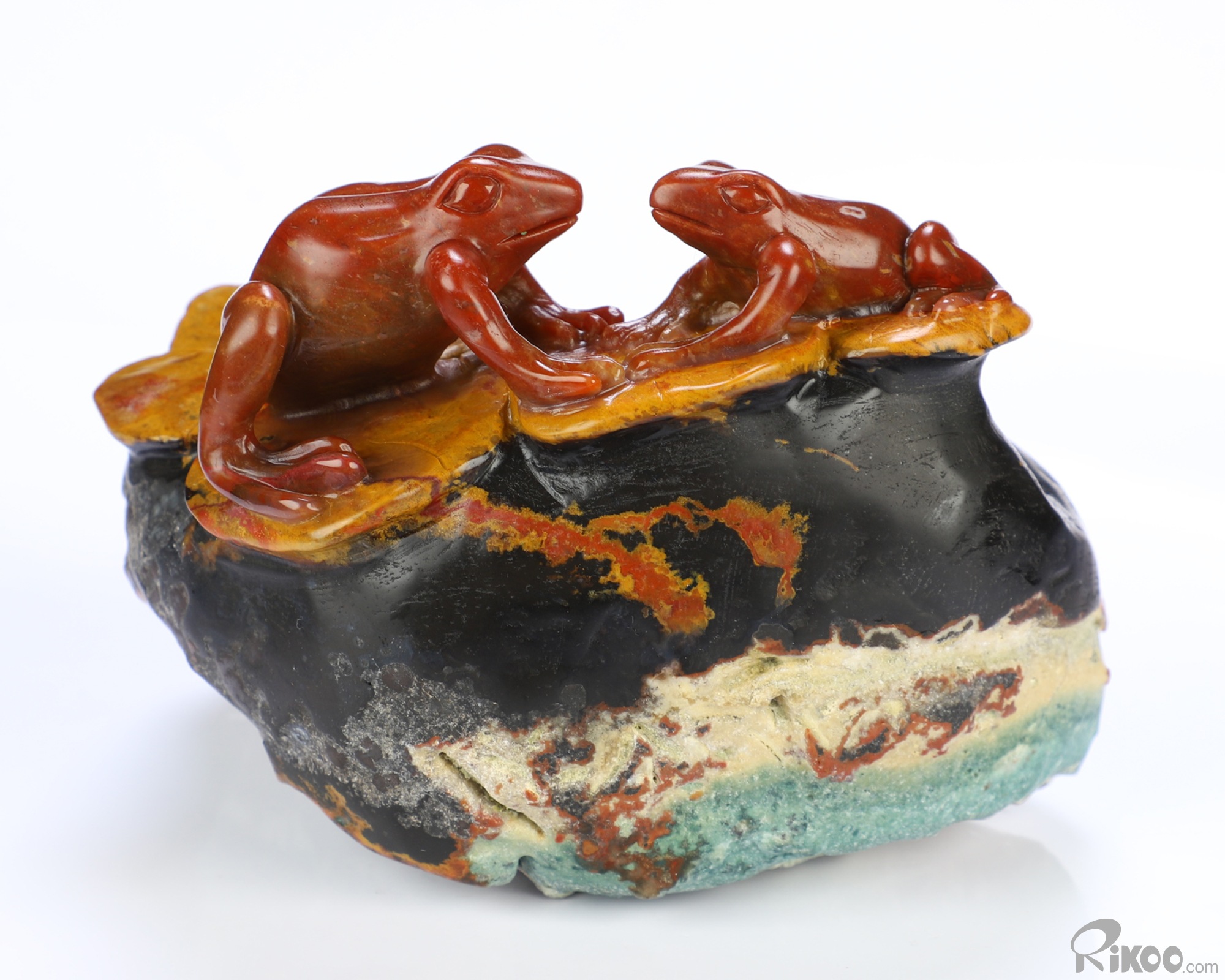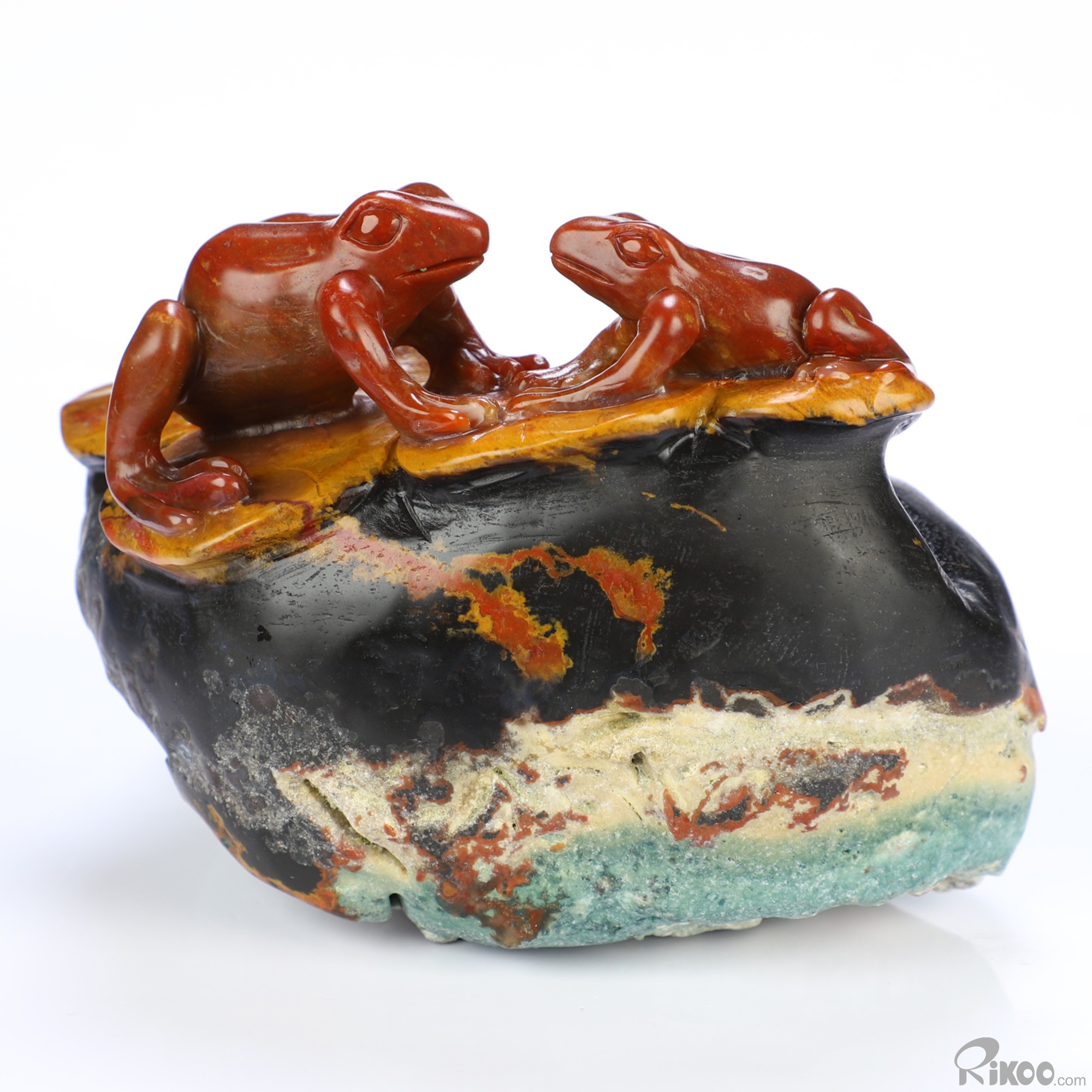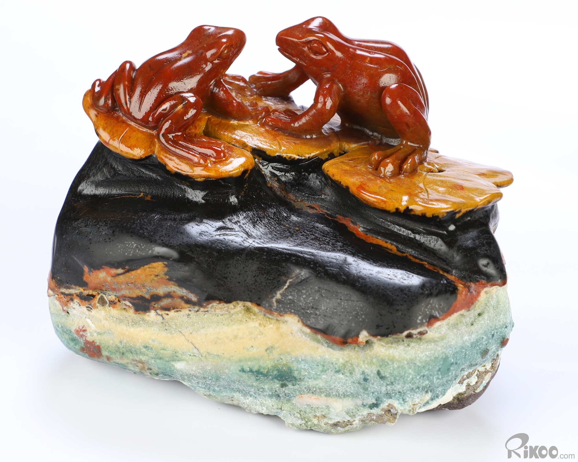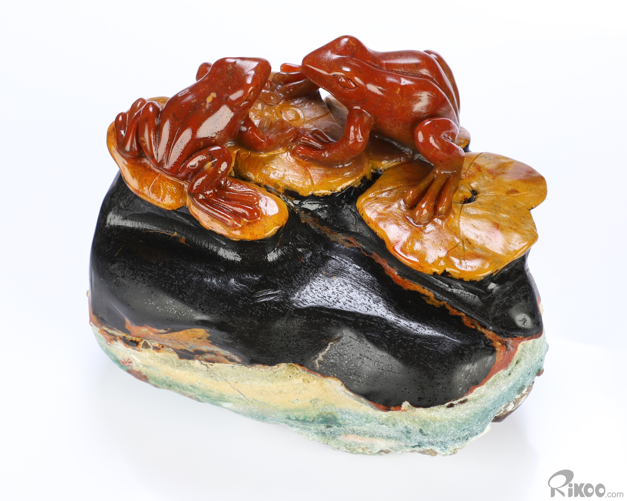 You are looking at an Indian Agate Frog sculpture. The sculpture is 4.9 inches long.
